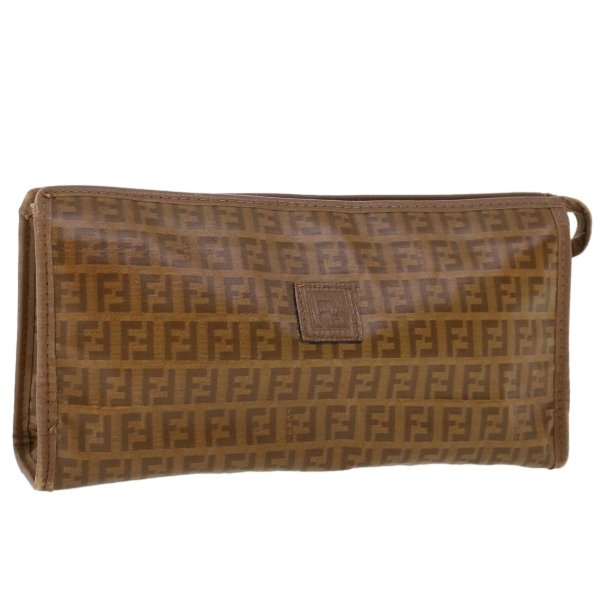FENDI Zucchino Canvas Clutch Bag Brown ep1106
