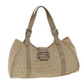 FENDI Zucchino Canvas Mamma Baguette Hand Bag Leather Beige Auth 45281