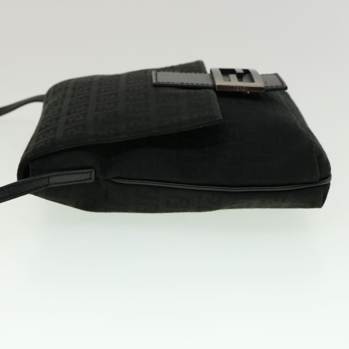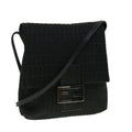 FENDI Zucchino Canvas Mamma Baguette Shoulder Bag Black Auth rd2219