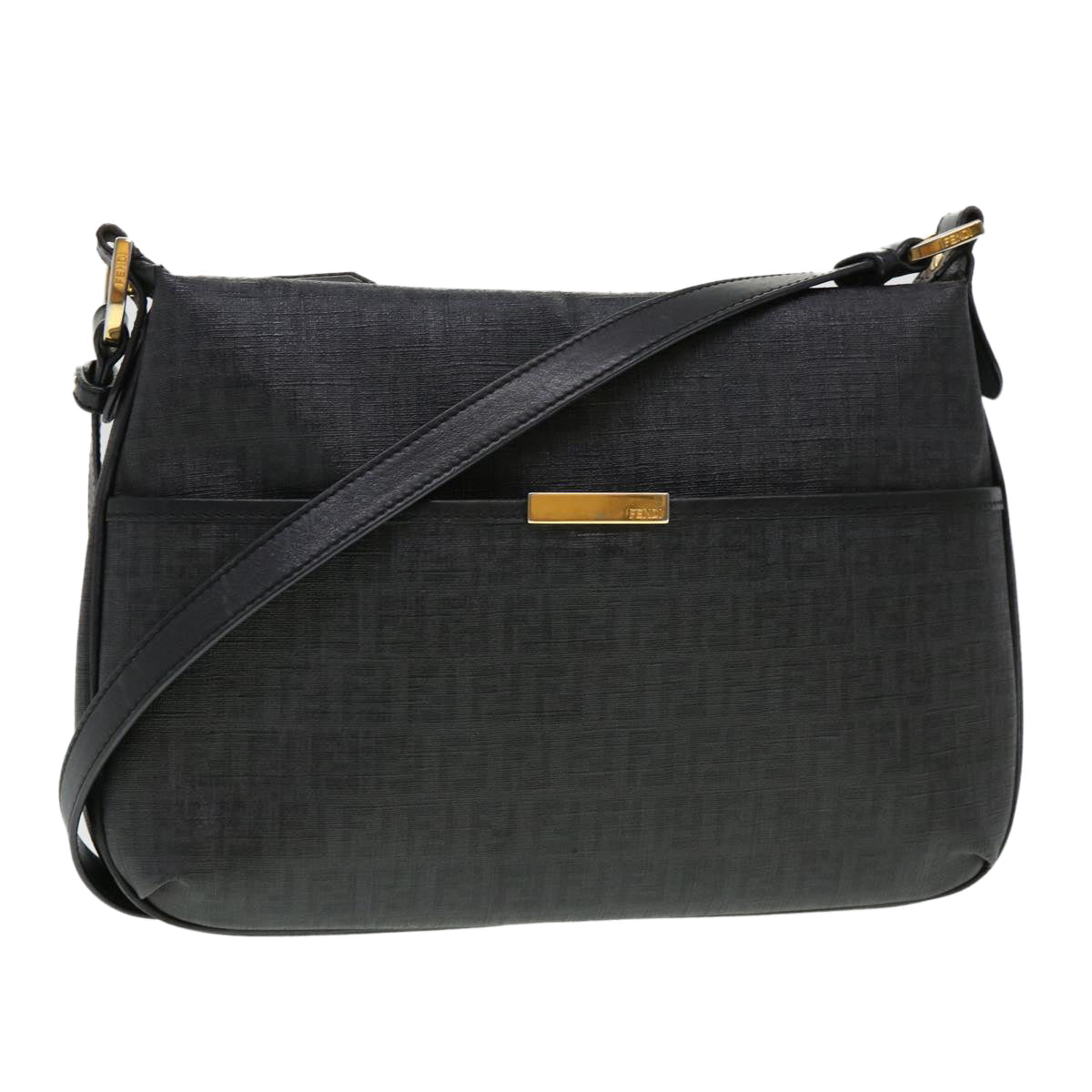 FENDI Zucchino Canvas Shoulder Bag Black 8BT206-FB5 129-2580 Auth bs4435