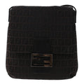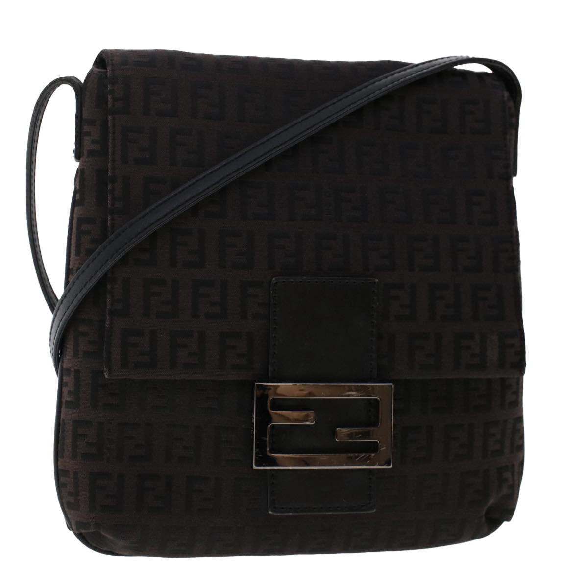 FENDI Zucchino Canvas Shoulder Bag Dark Brown Auth fm2601