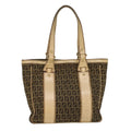 FENDI Zucchino Canvas Shoulder Bag Leather Brown Auth ac2009