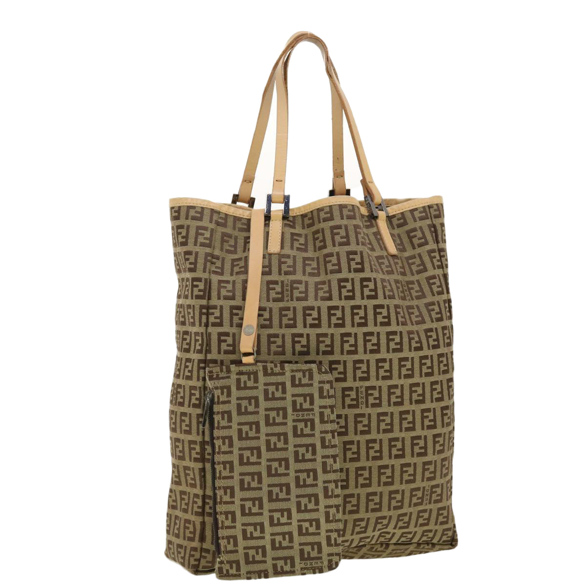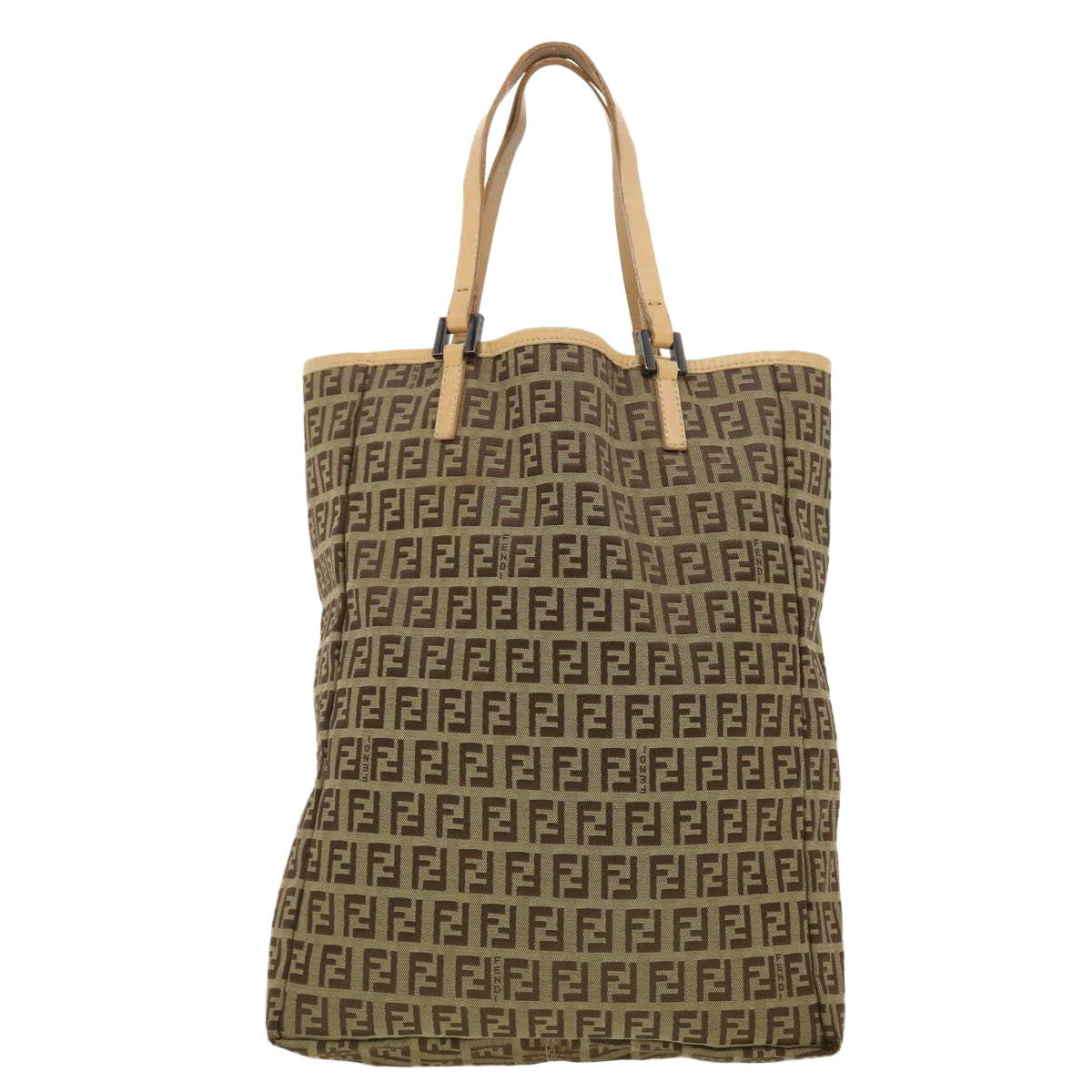 FENDI Zucchino Canvas Tote Bag Beige 3677/8BH006028 Auth rd4733