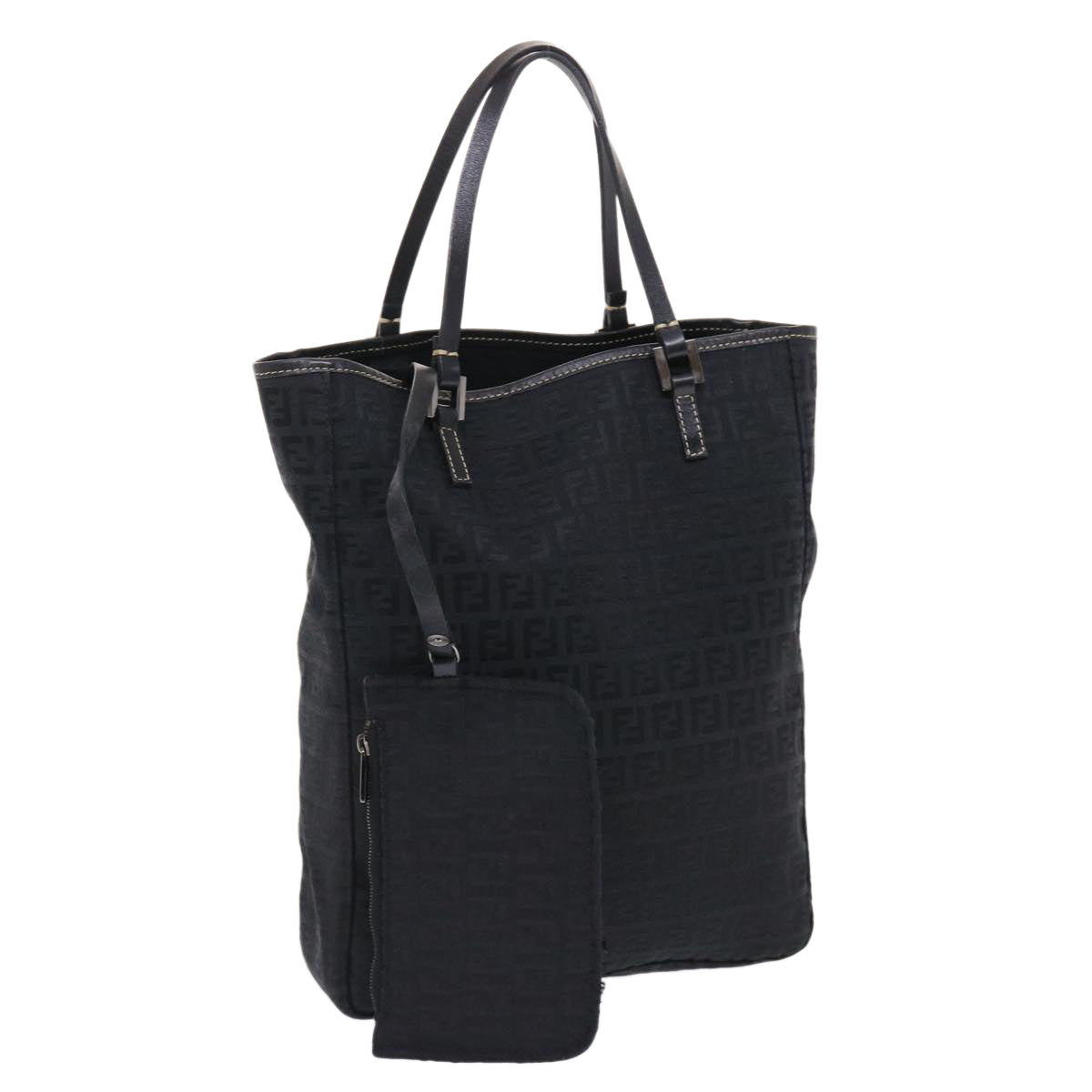 FENDI Zucchino Canvas Tote Bag Black Auth ar9954