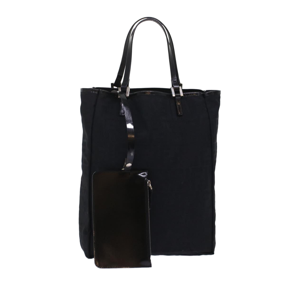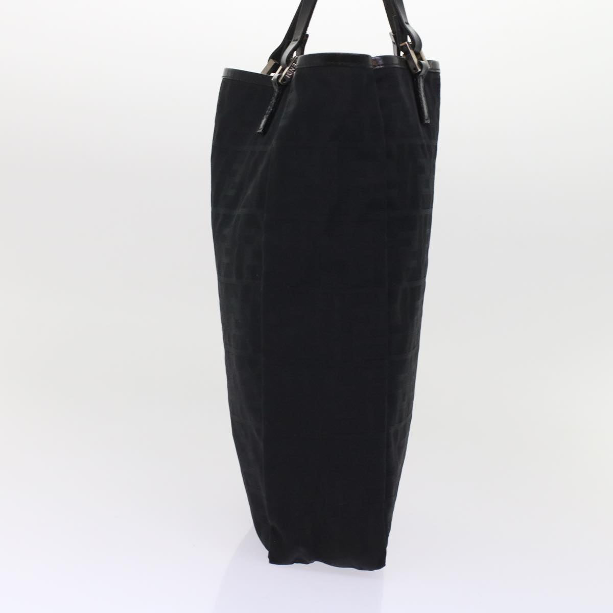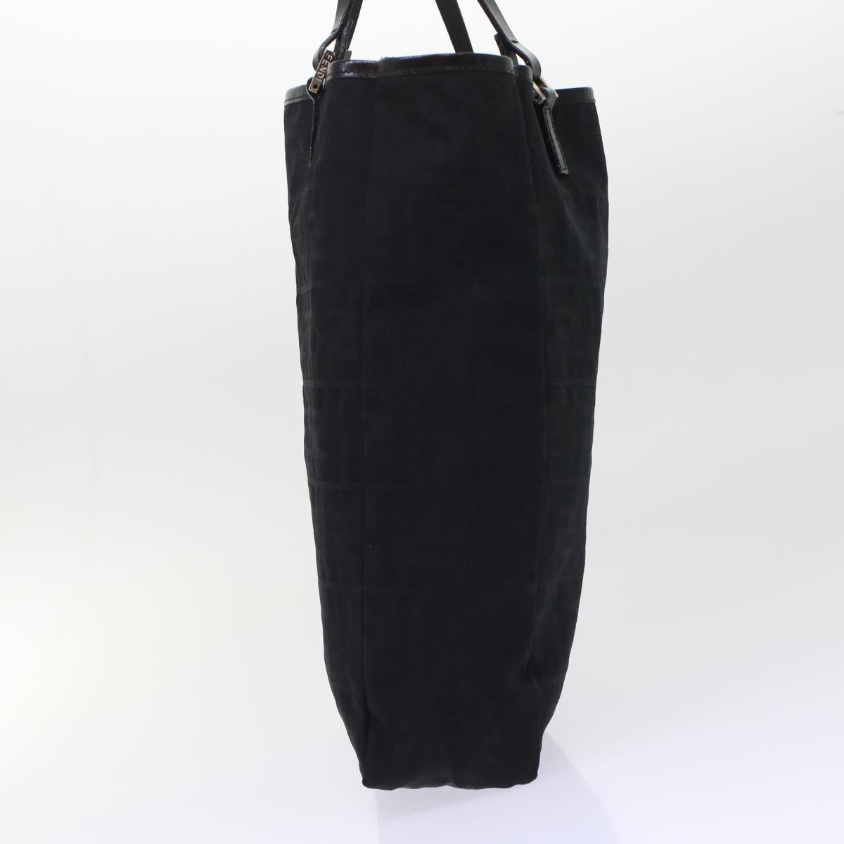 FENDI Zucchino Canvas Tote Bag Nylon Leather Black Auth 49283