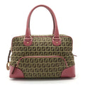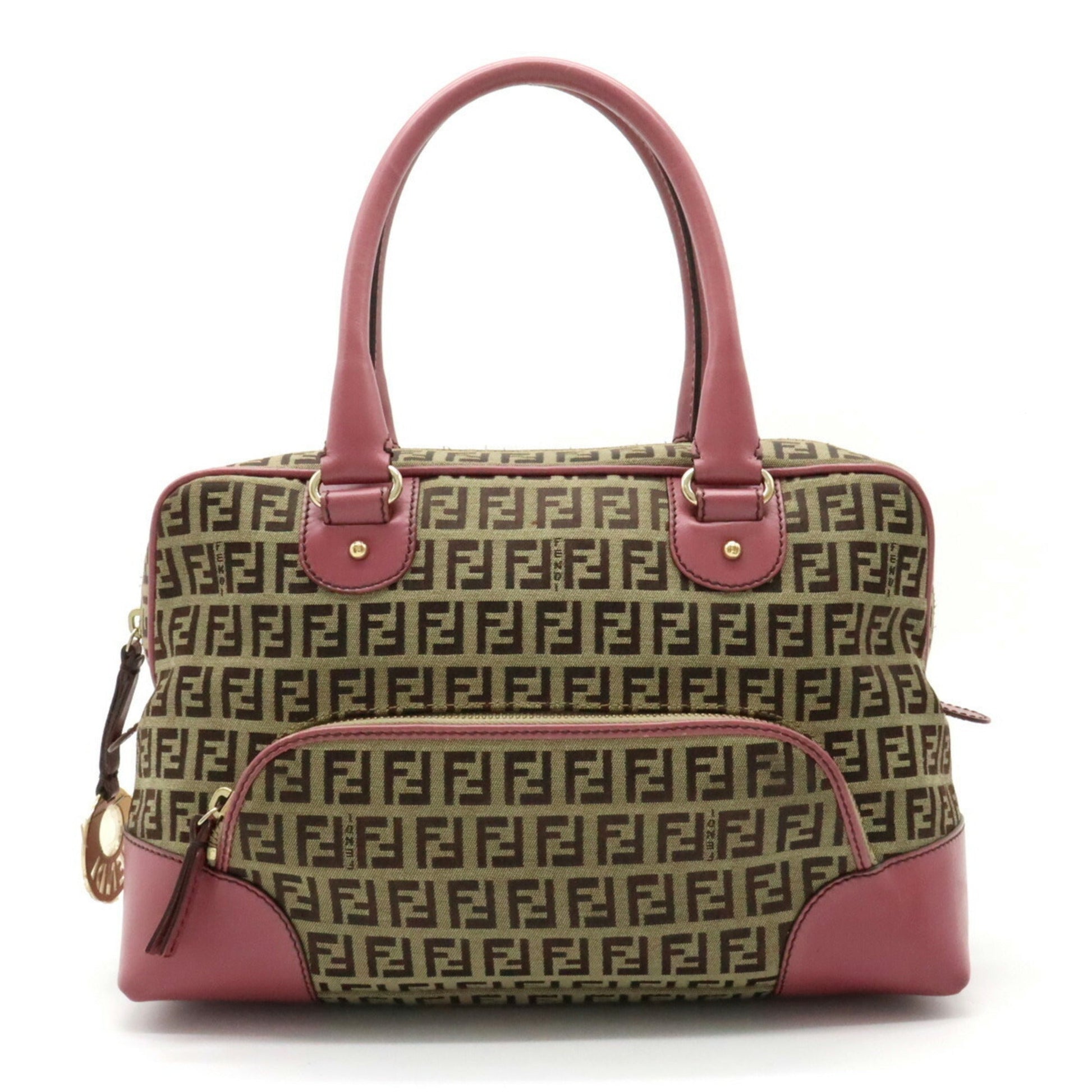 FENDI Zucchino Zucca Pattern Tote Bag Handbag Canvas Leather Khaki Beige Rose Pink 8BL076