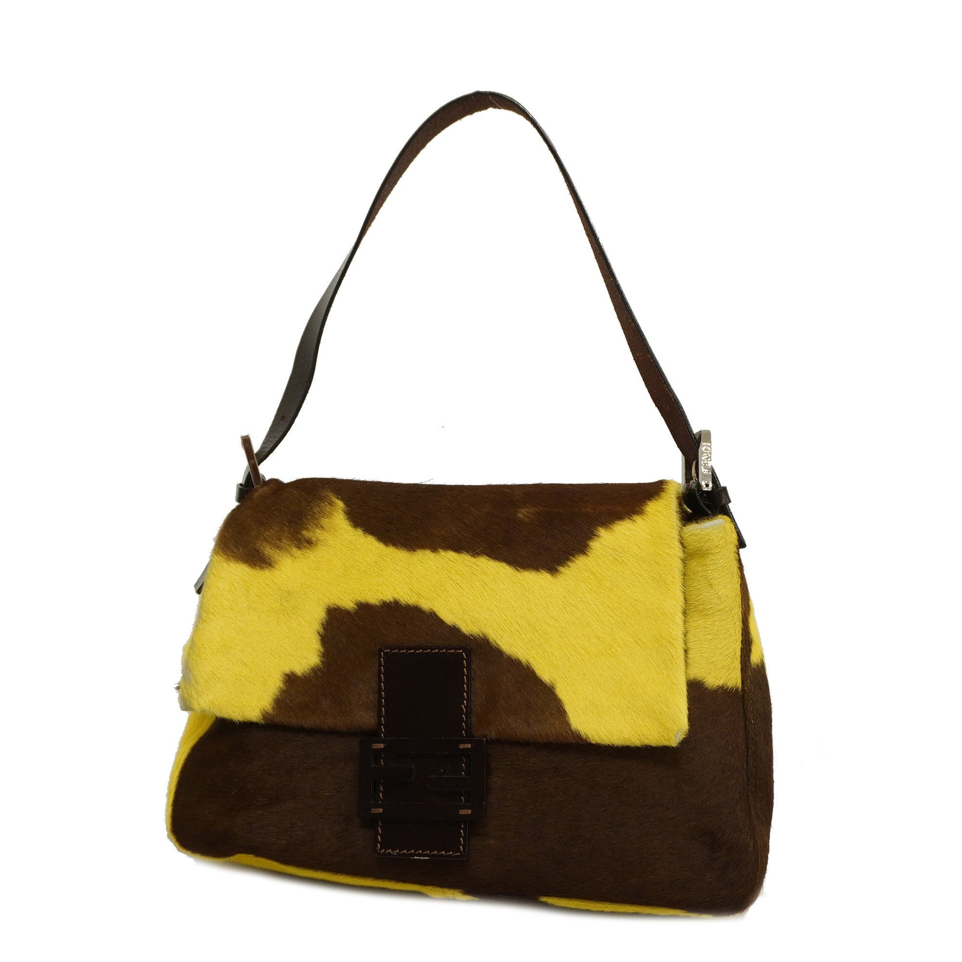 Auth Fendi Mamma Bucket Harako Women's Leather Handbag Brown,Yellow