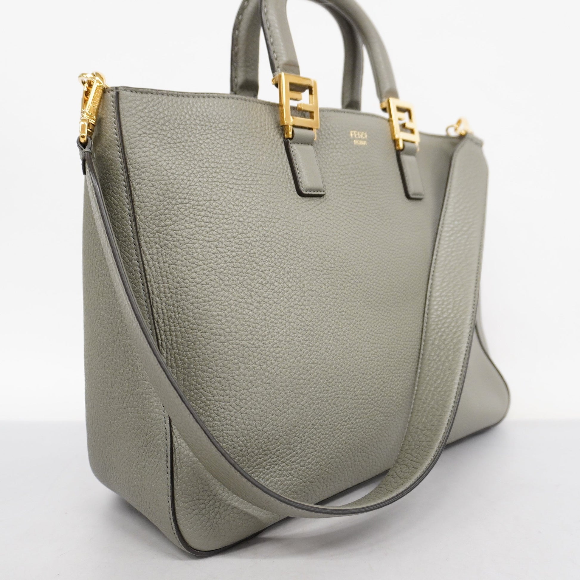 Auth Fendi Selleria 2way Bag Peekaboo Women's Leather Handbag,Shoulder Bag Gray