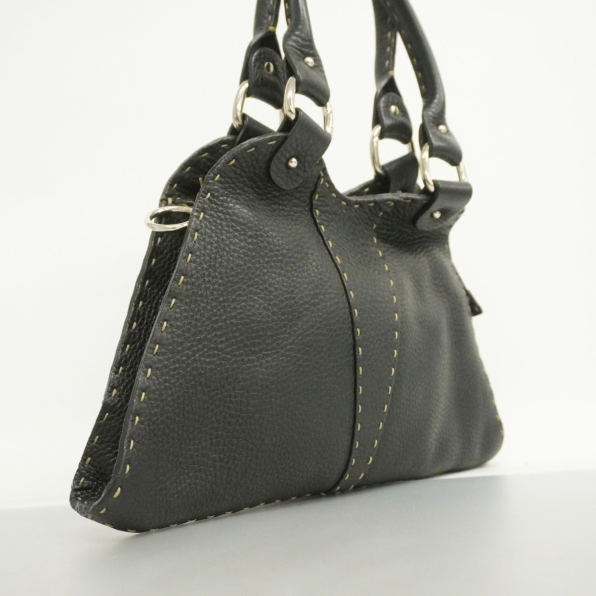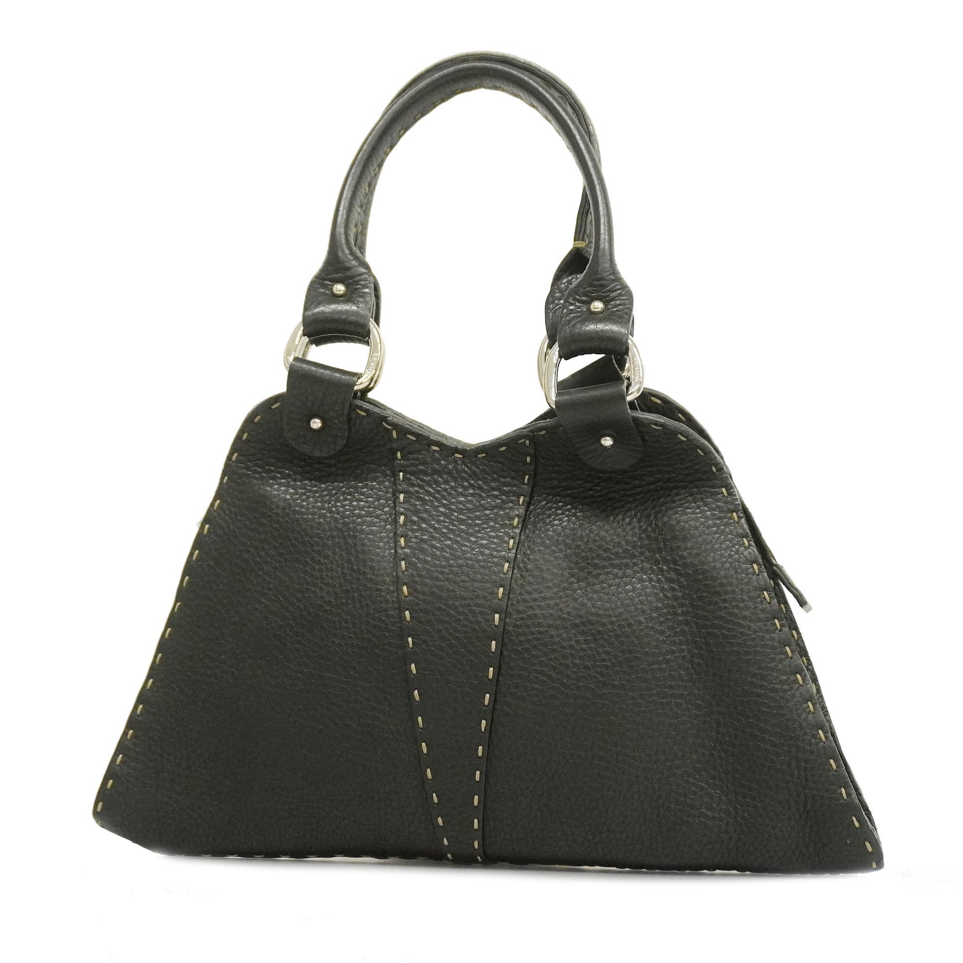 FENDIAuth Selleria Handbag Women's Leather Handbag Black