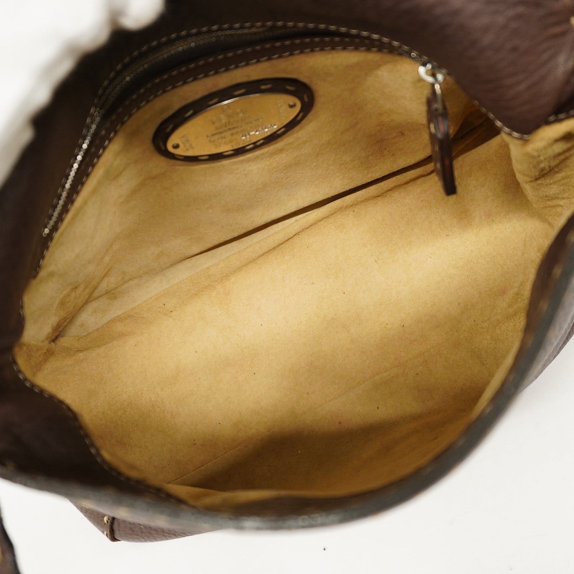 Auth Fendi Selleria Mamma Bucket Women's Leather Handbag Brown
