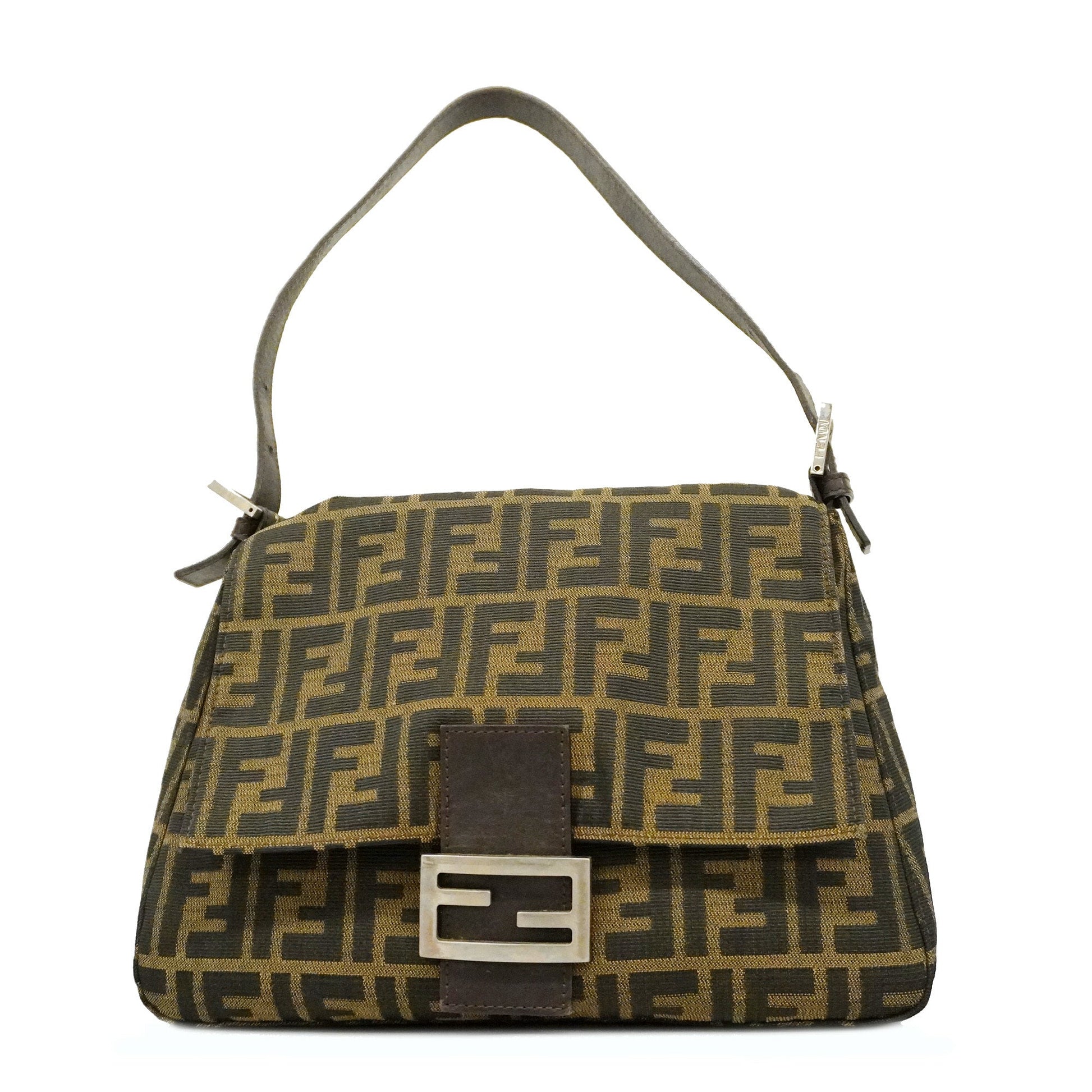 FENDIAuth Zucca Handbag Women's Nylon Canvas Handbag Brown