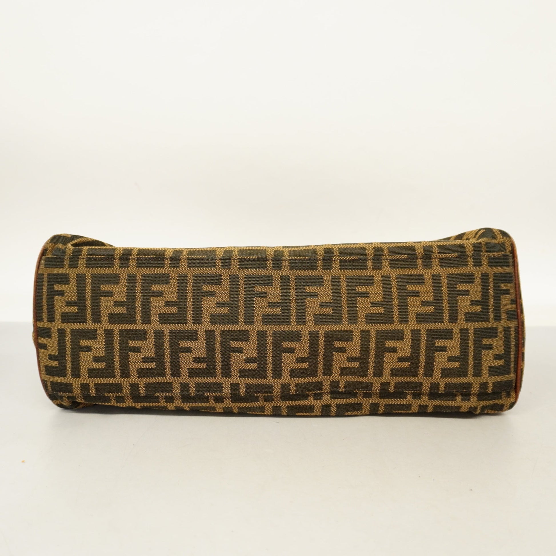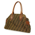 Auth Fendi Zucca Tote Bag Women's Nylon Canvas,Leather Tote Bag Brown