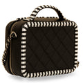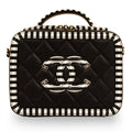 - Black and White Striped Lambskin Detailing on trimming, CC logo and top handle