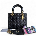 *Flap, Grained Calfskin* Dior Lady Medium - Calfskin Cannage Black Gold Hardware