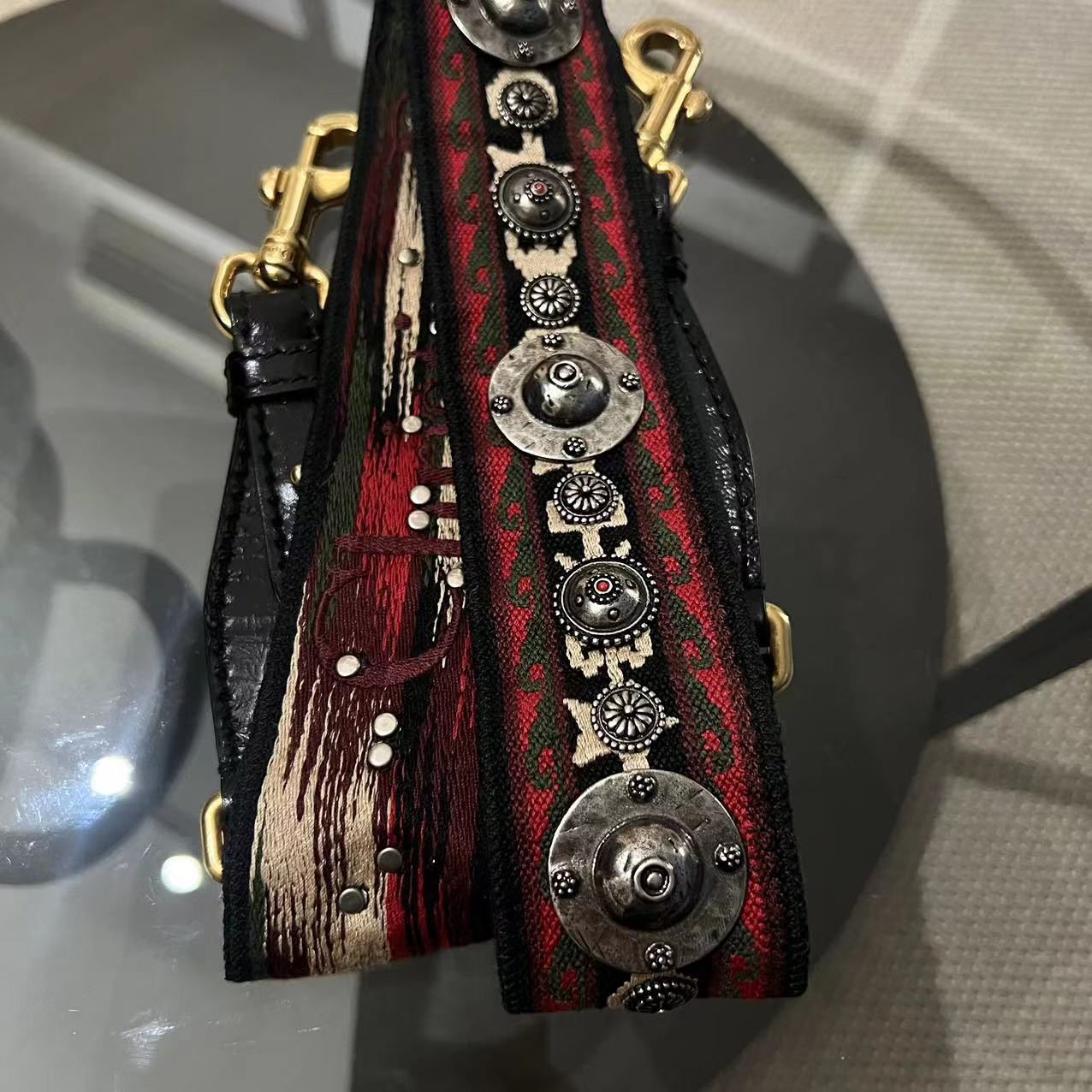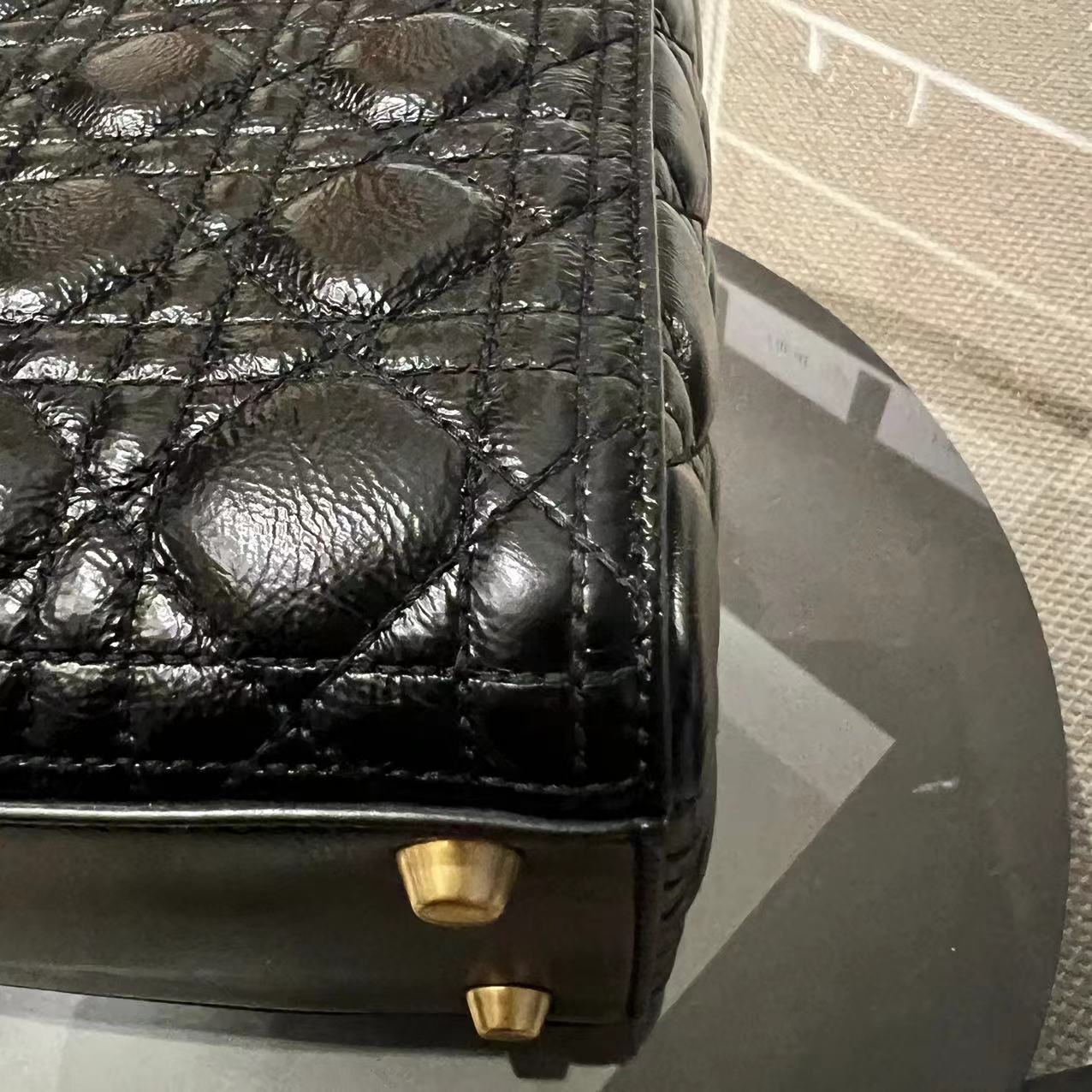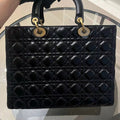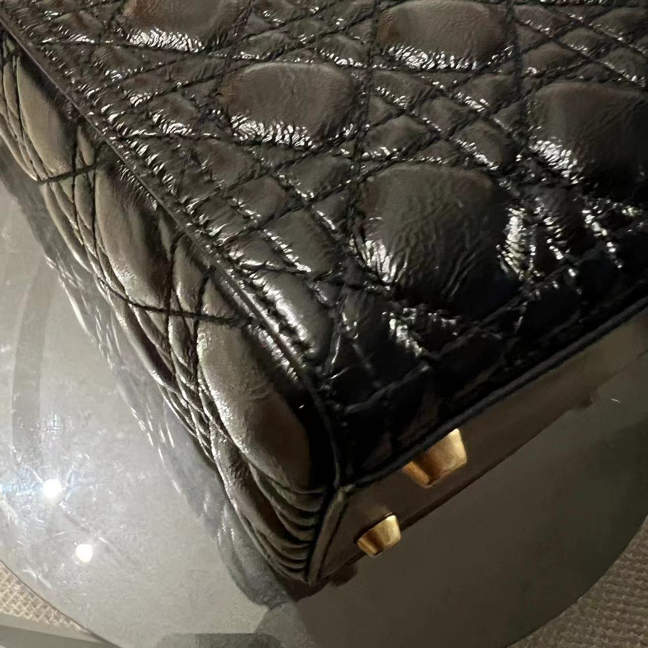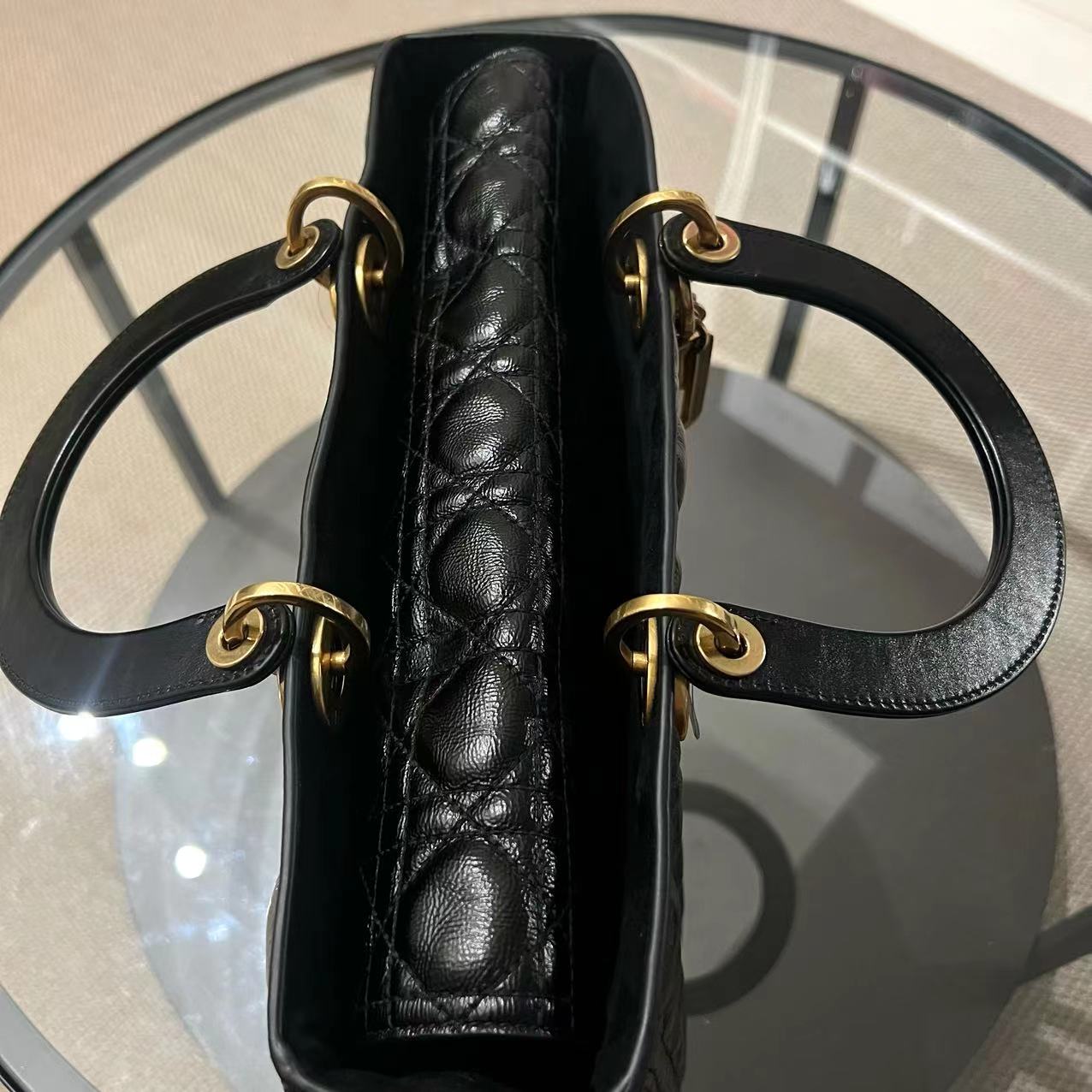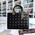 *Flap Version* Lady Large Glazed Calfskin Black Golden Hardware With Strap