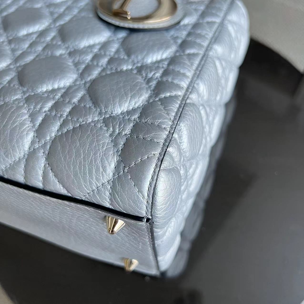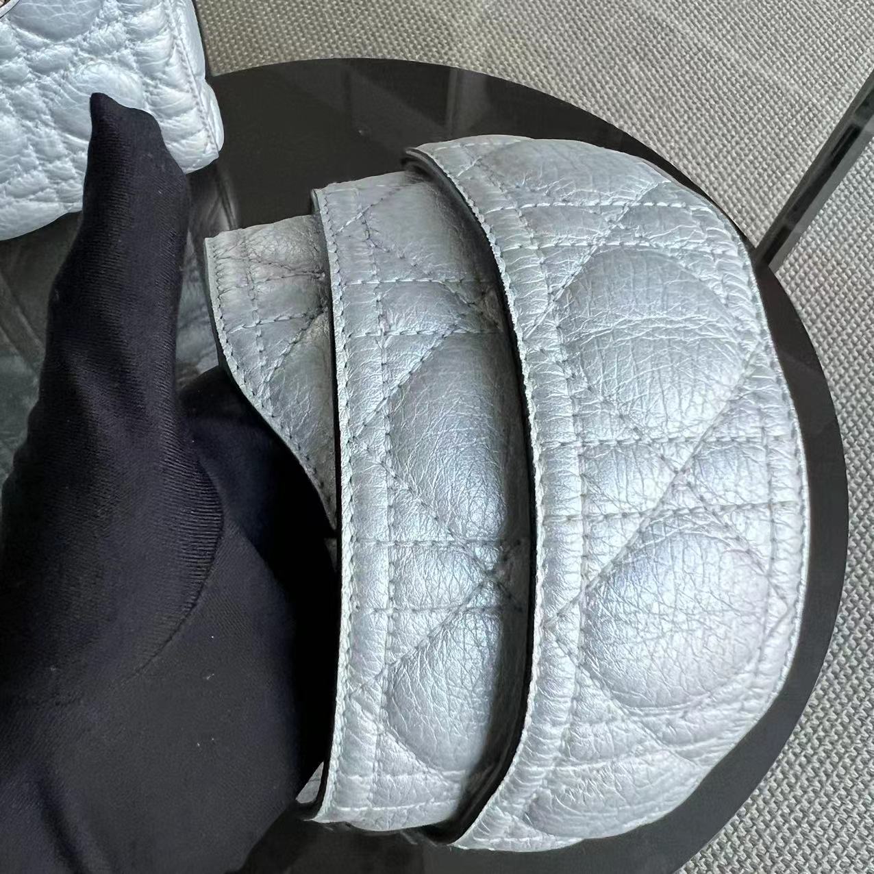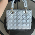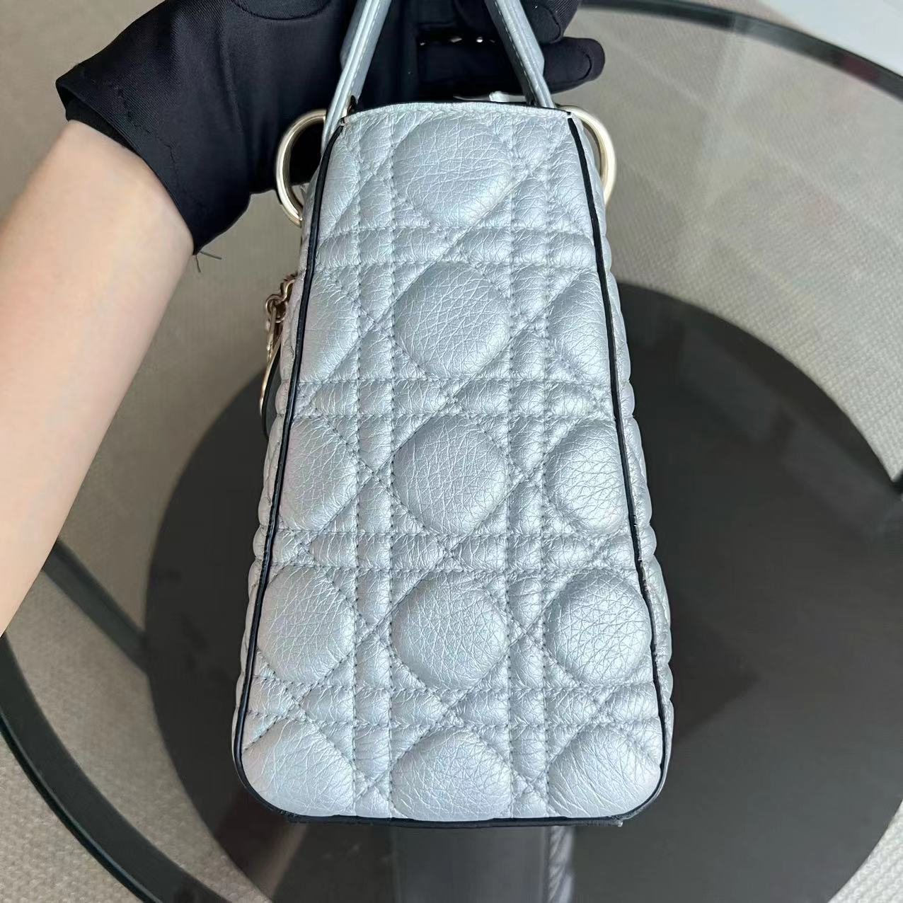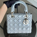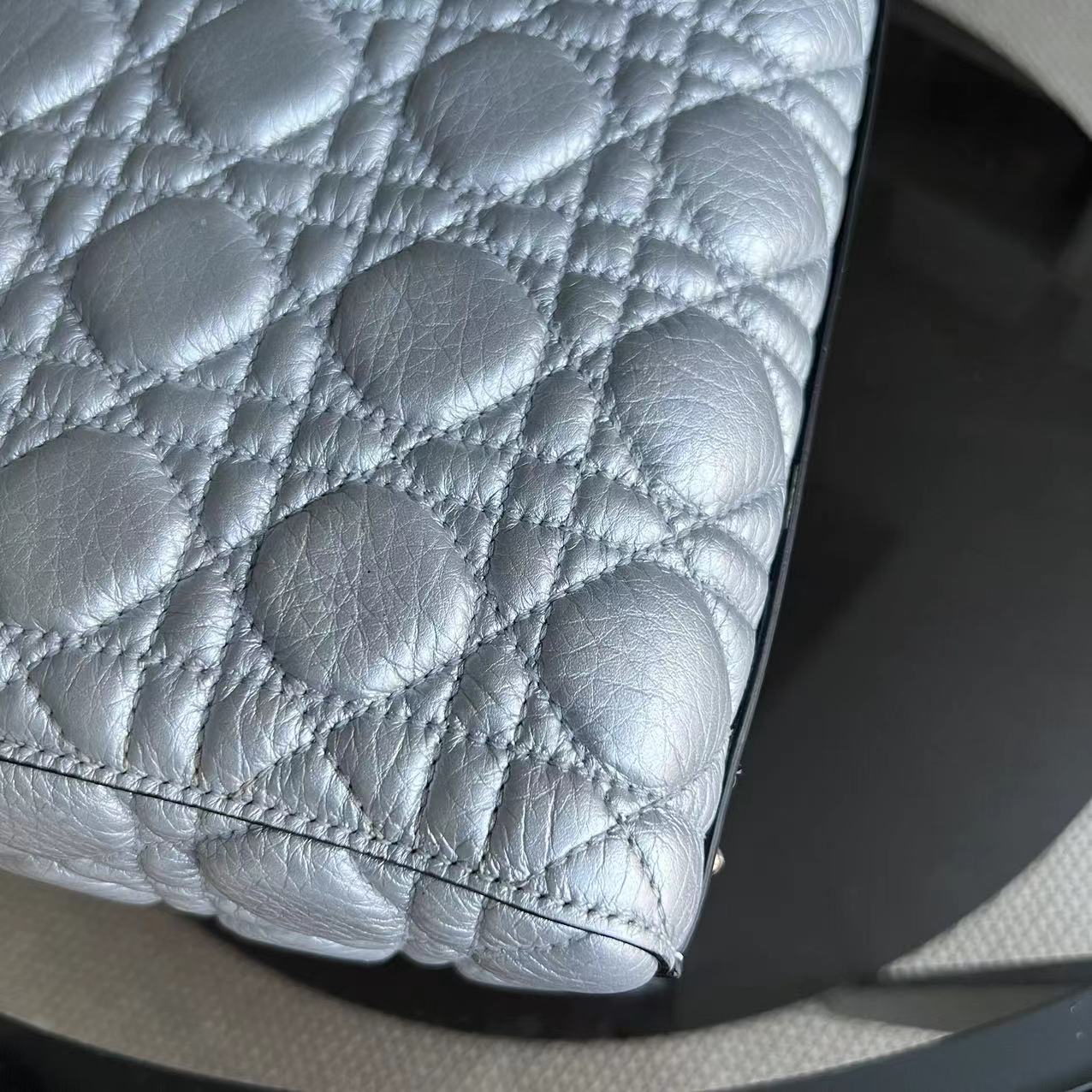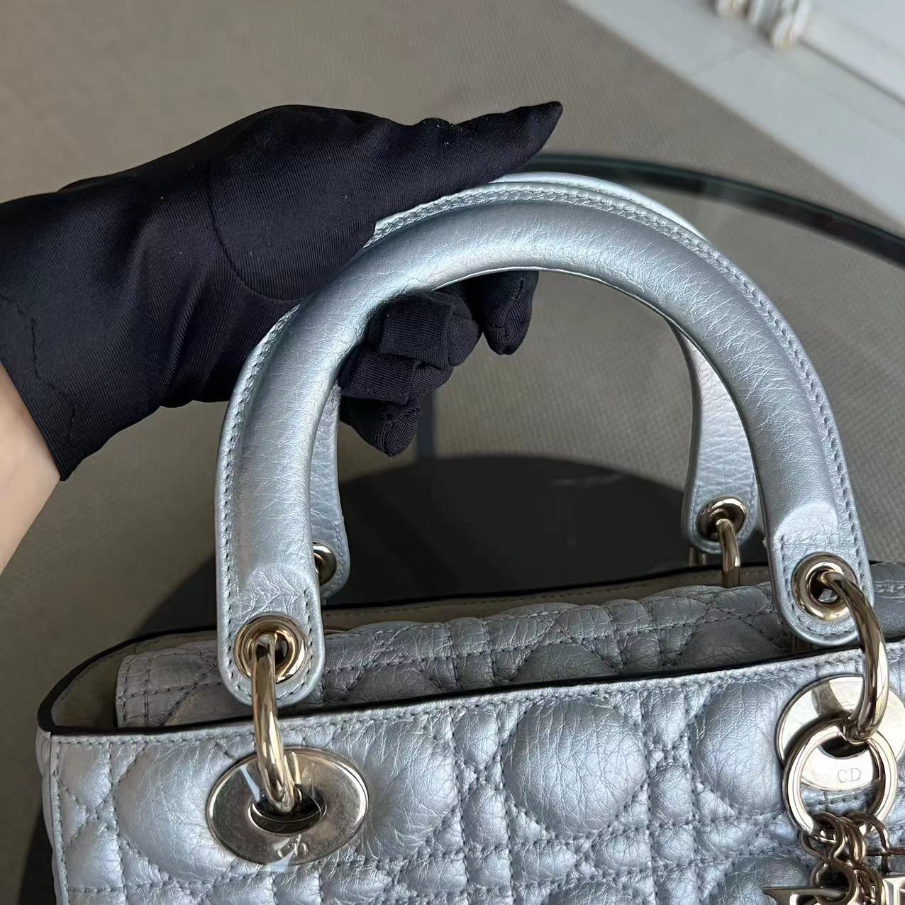 *Flap Version* Lady Medium Cannage Metallic Aged Calfskin Silver Golden Hardware