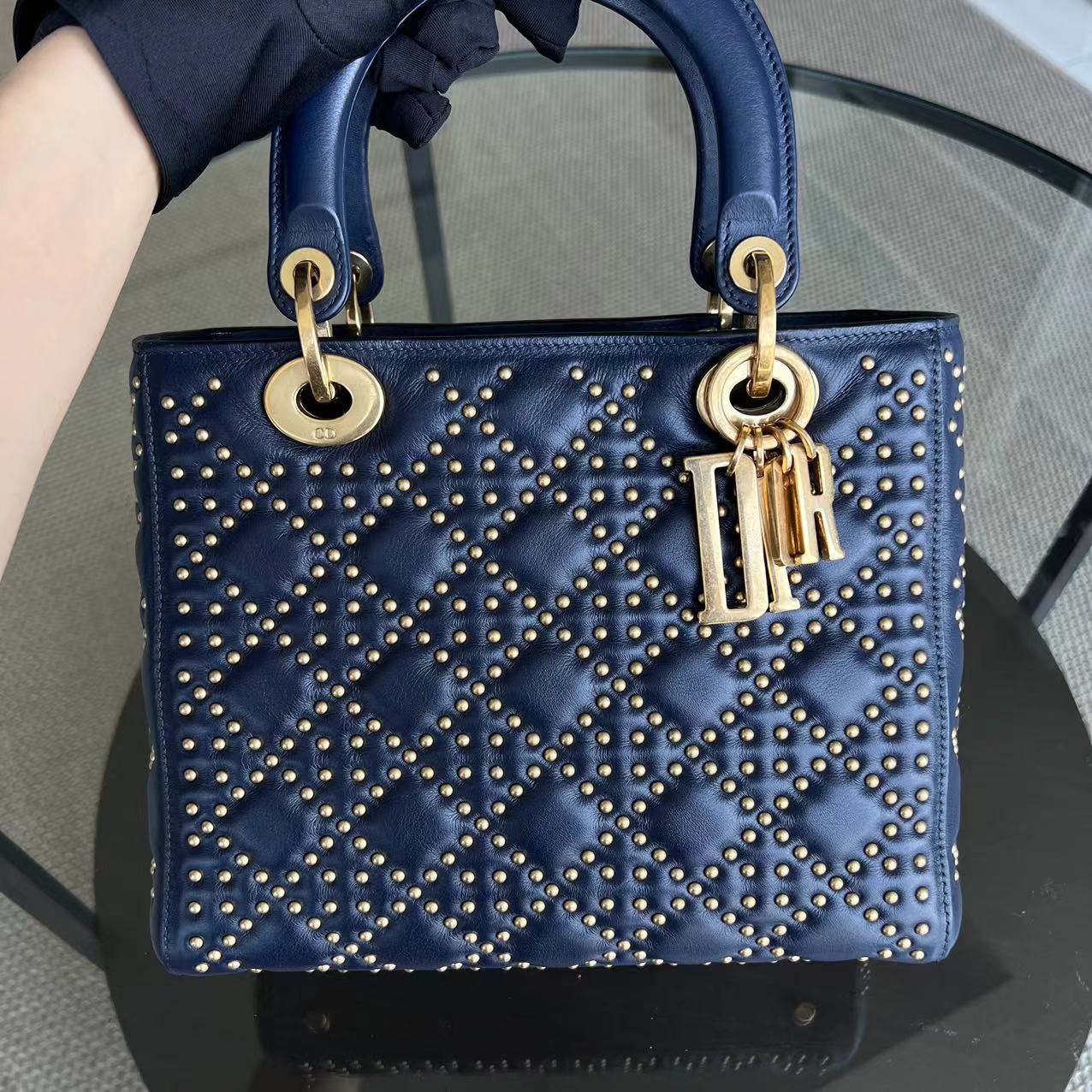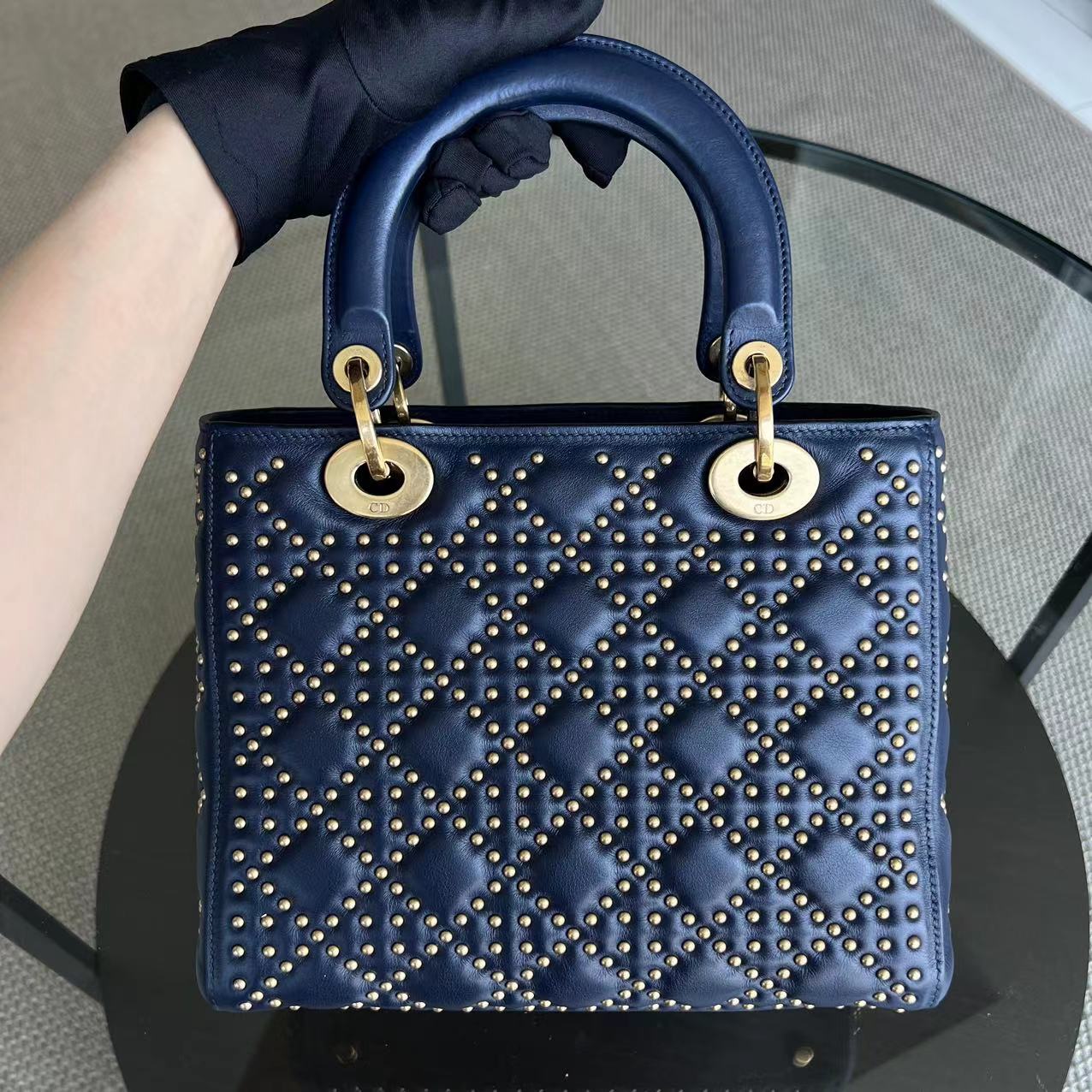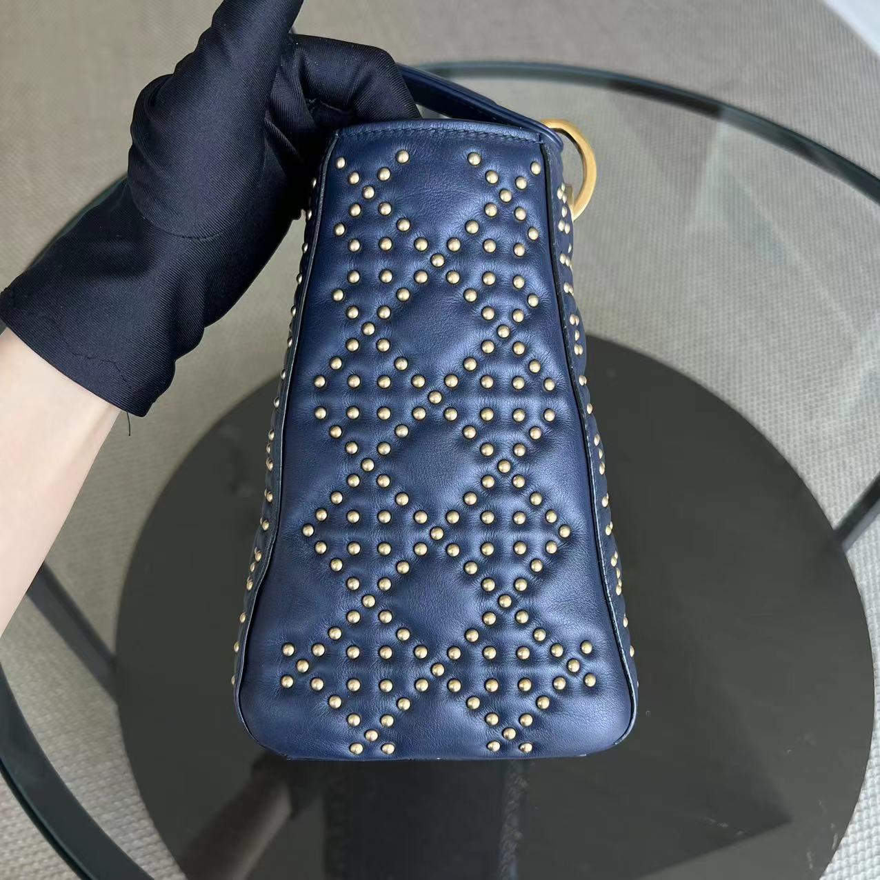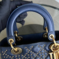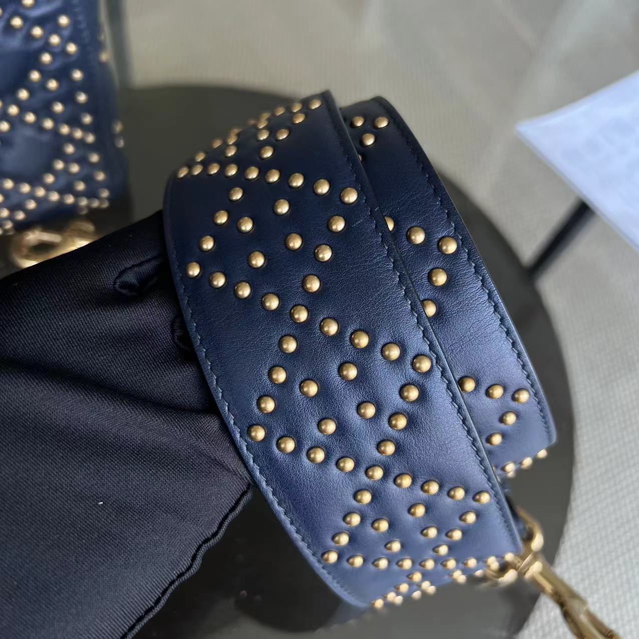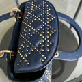 *Flap Version* Lady Medium Studded Calfskin Dark Blue Golden Hardware