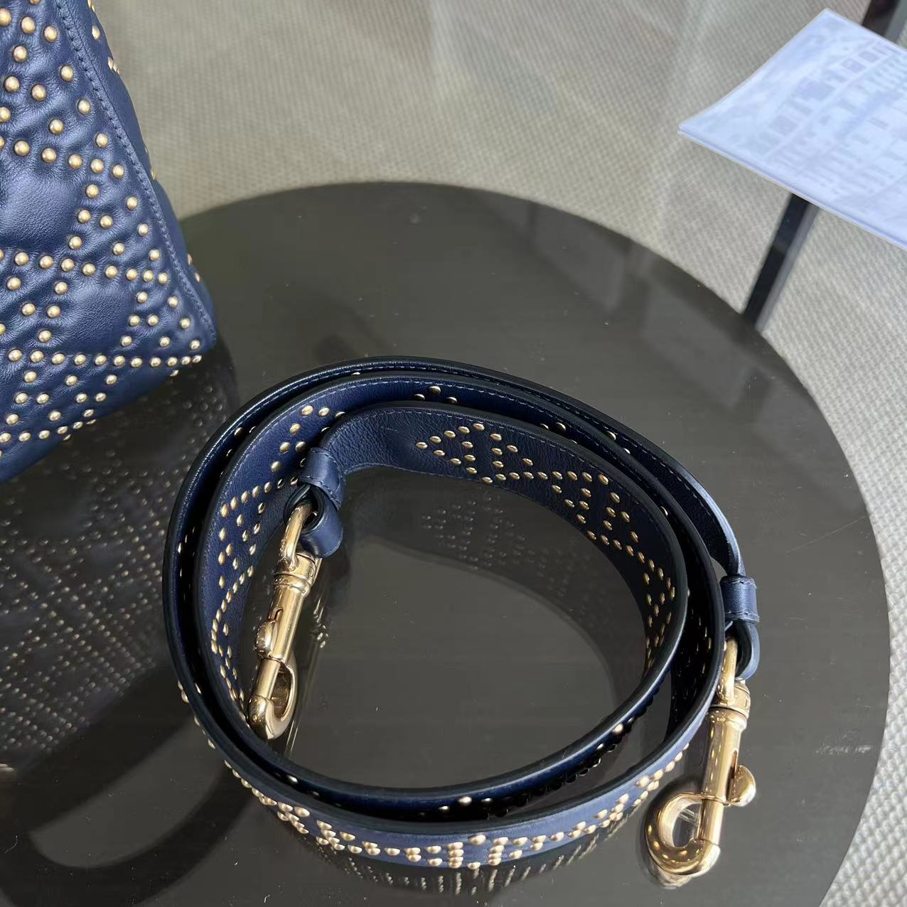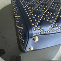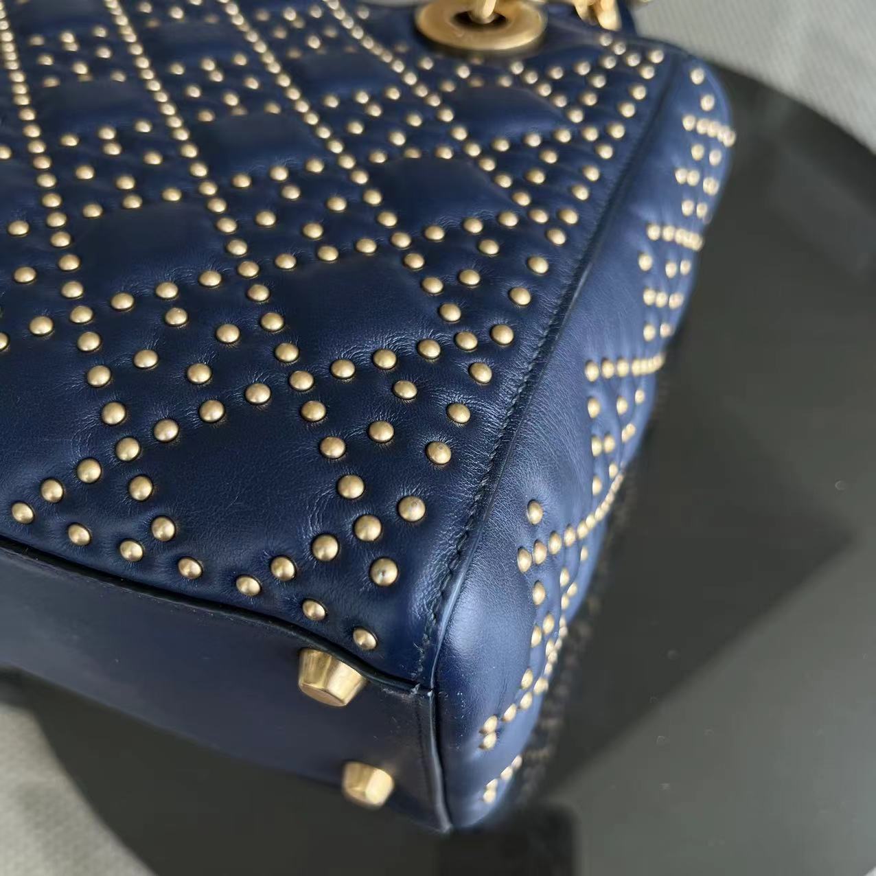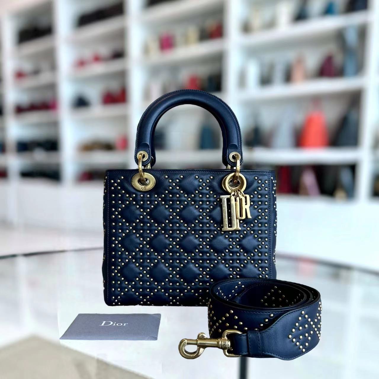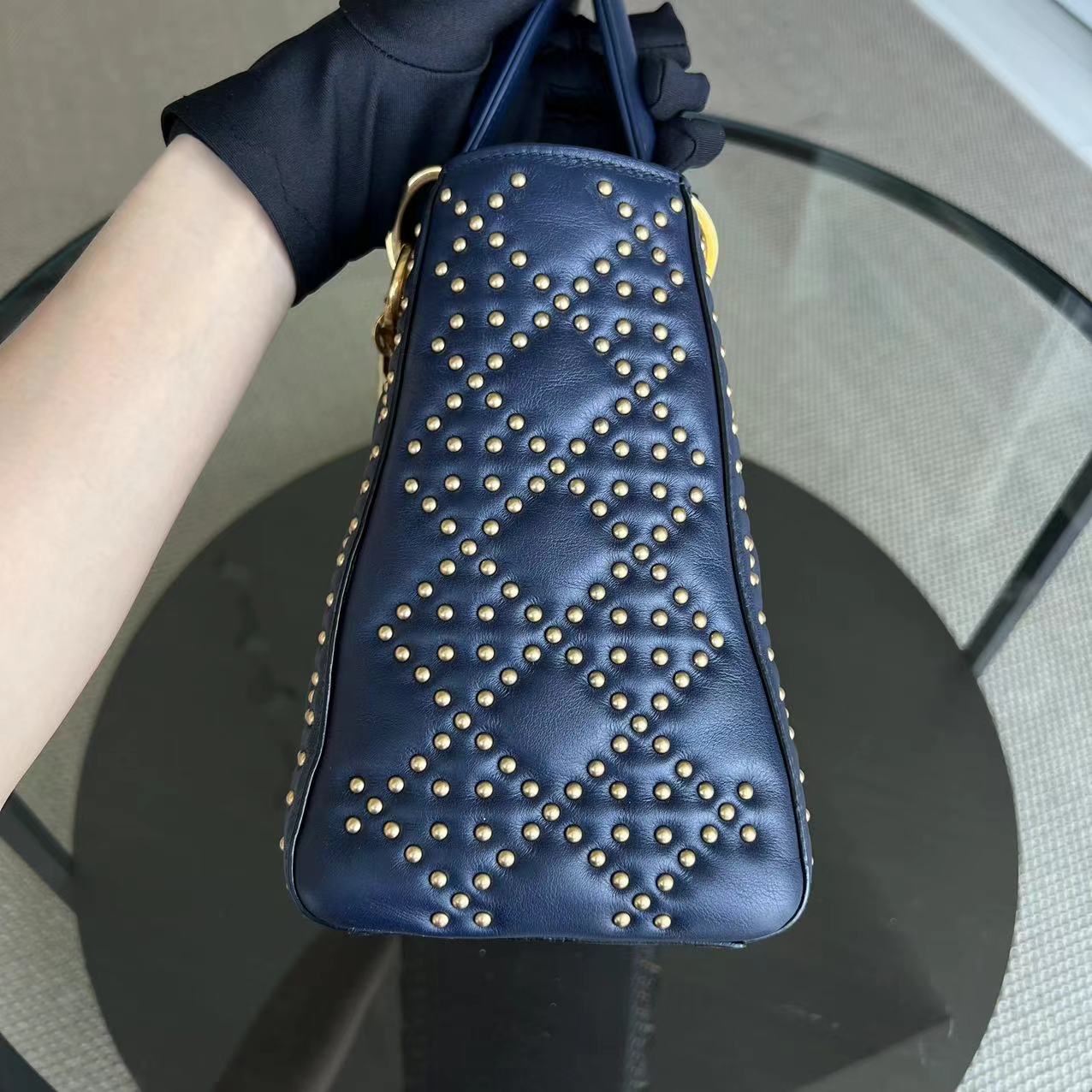 *Flap Version* Lady Medium Studded Calfskin Dark Blue Golden Hardware