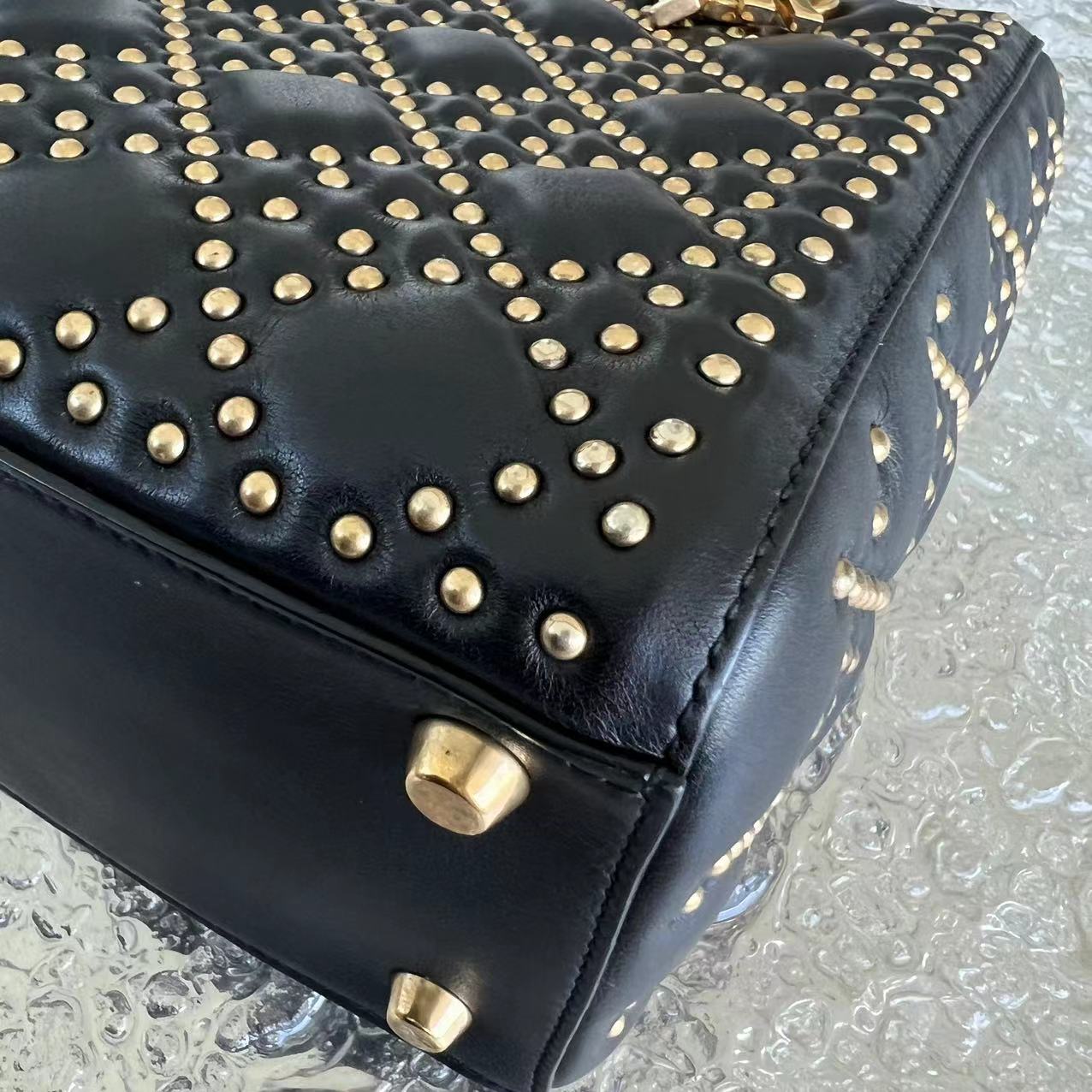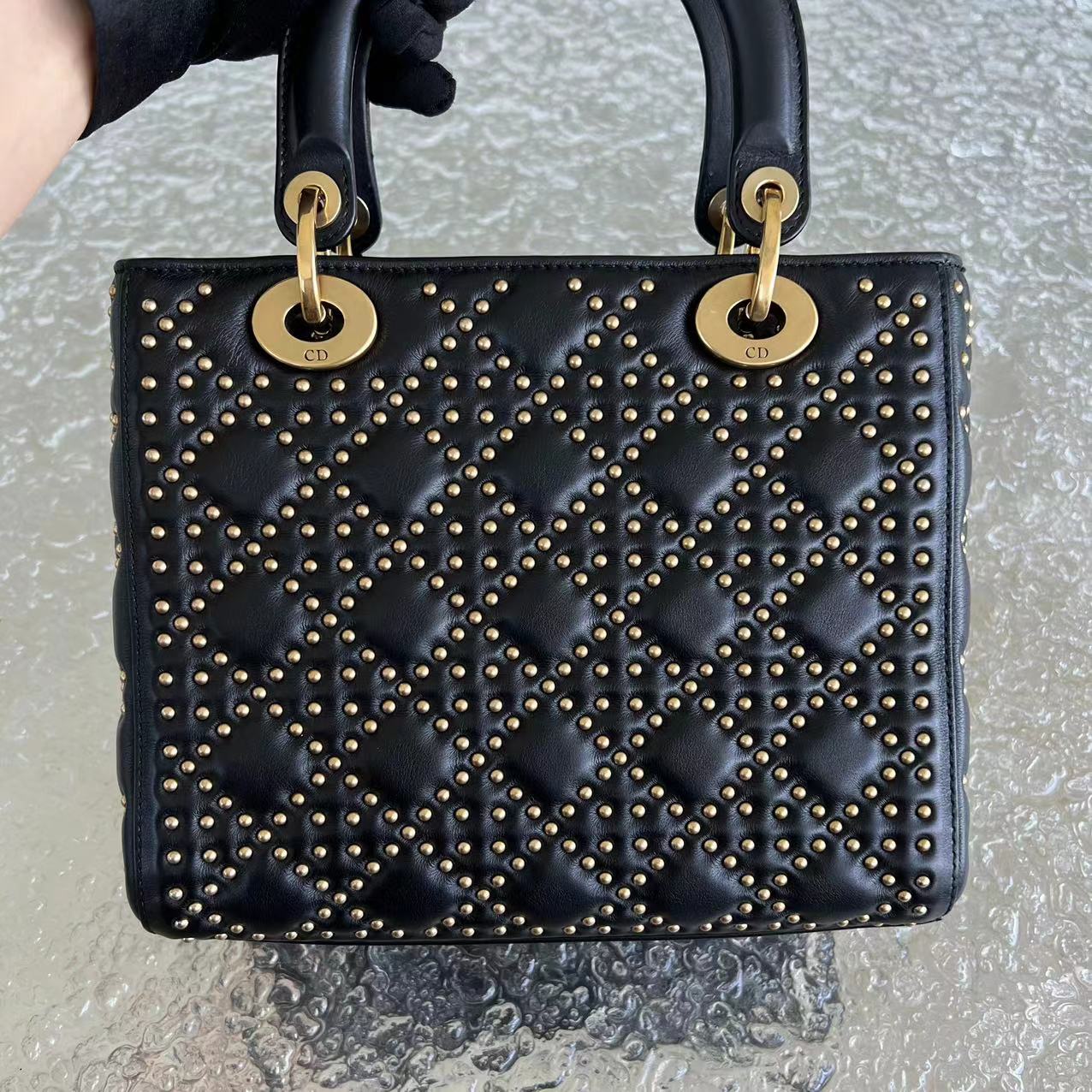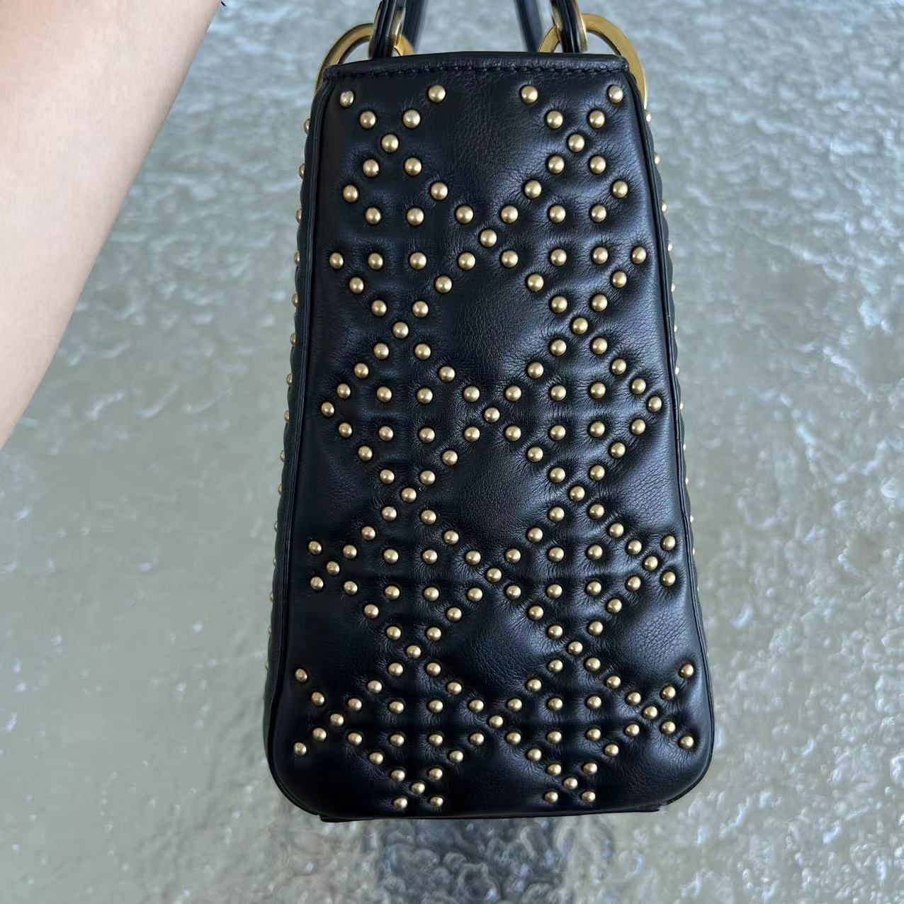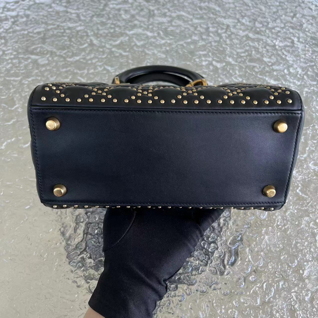 *Flap Version* Lady Medium Studded Cannage Lambskin Black Golden Hardware