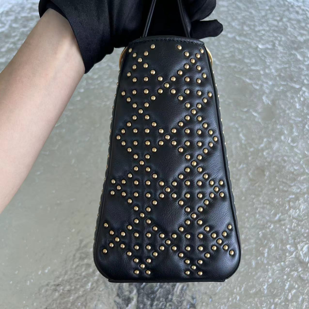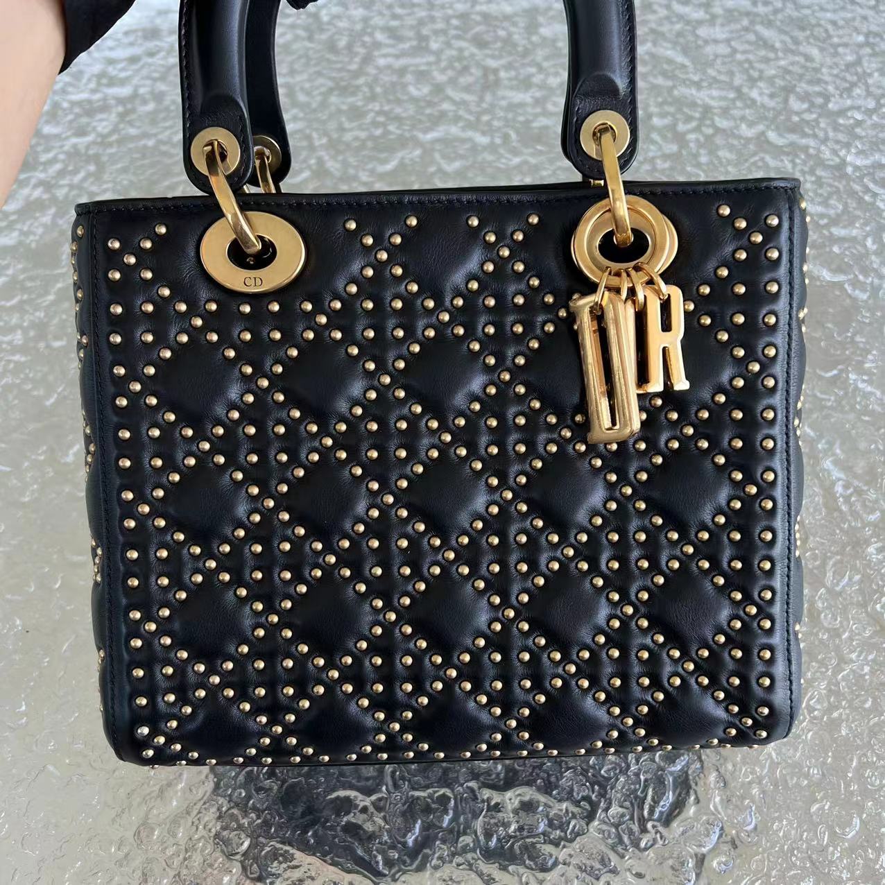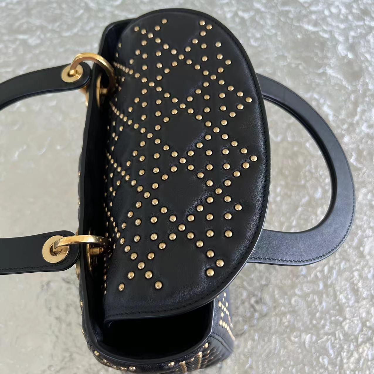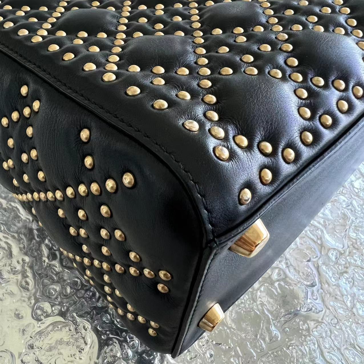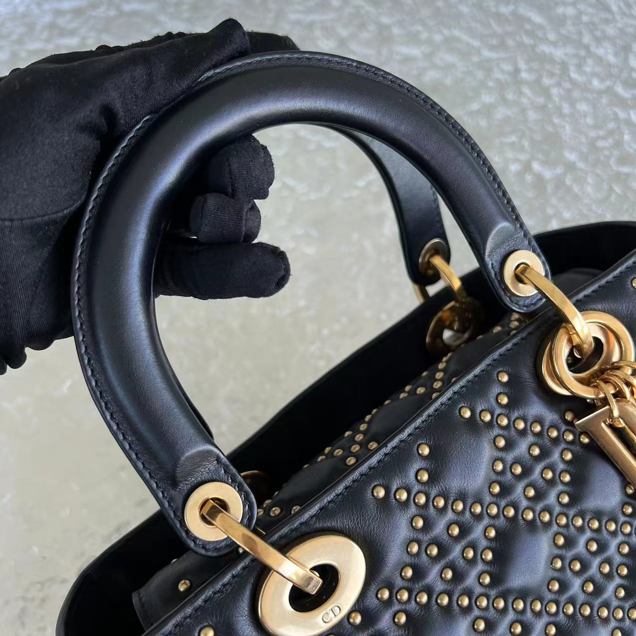 *Flap Version* Lady Medium Studded Cannage Lambskin Black Golden Hardware