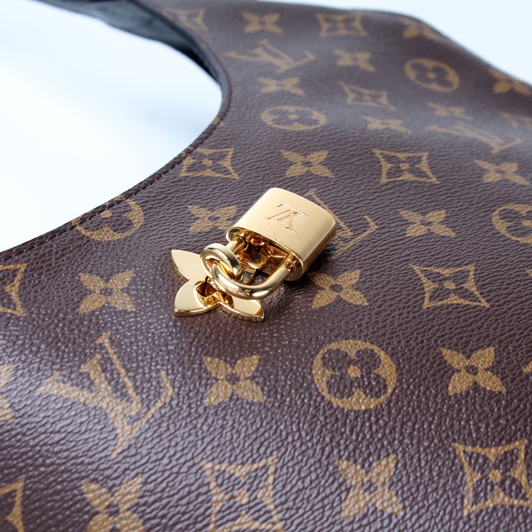 This Louis Vuitton Flower Hobois eye catching bag. The exterior is in the classic Louis Vuitton Monogram coated canvas.