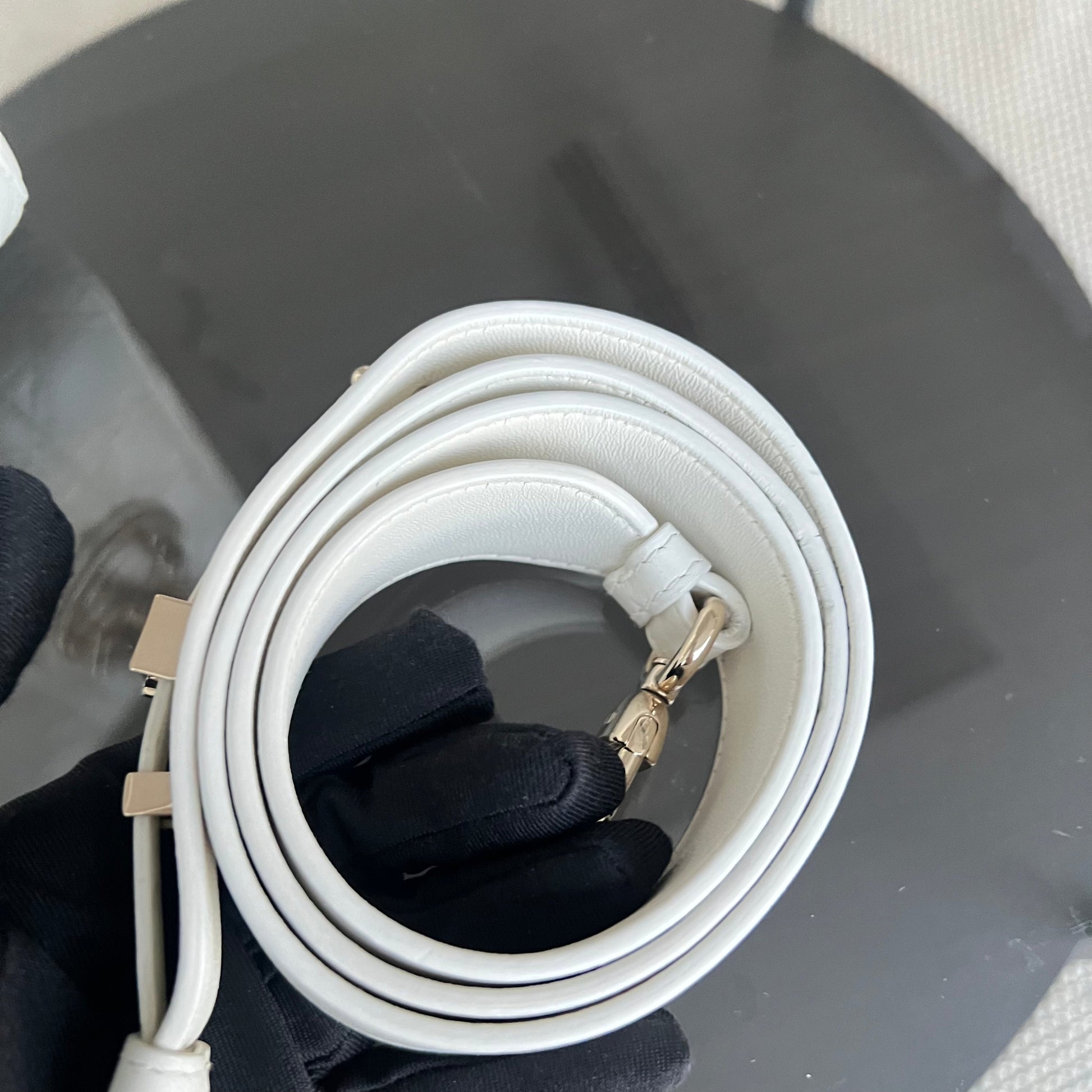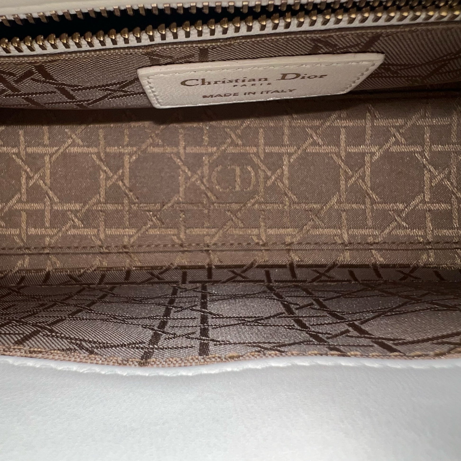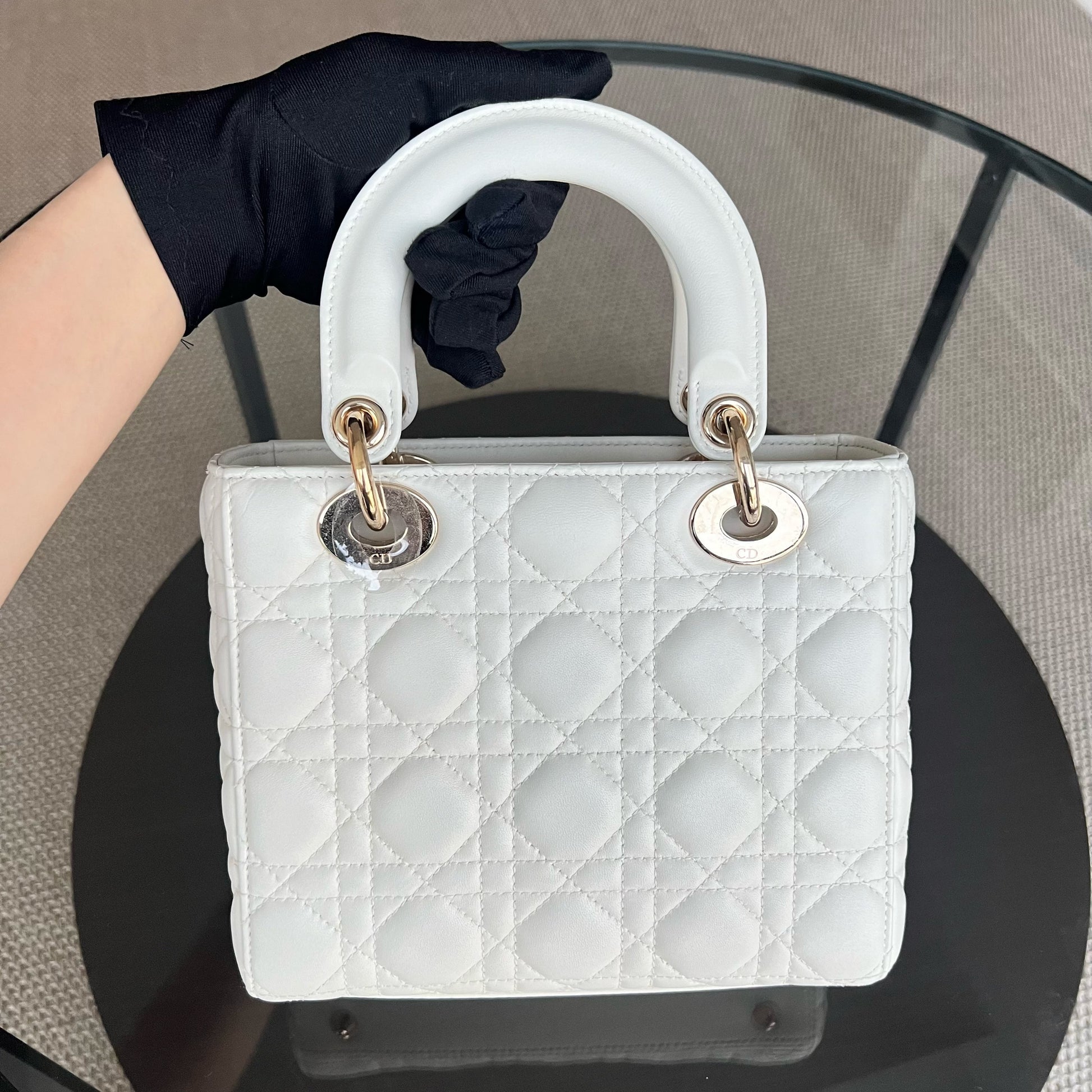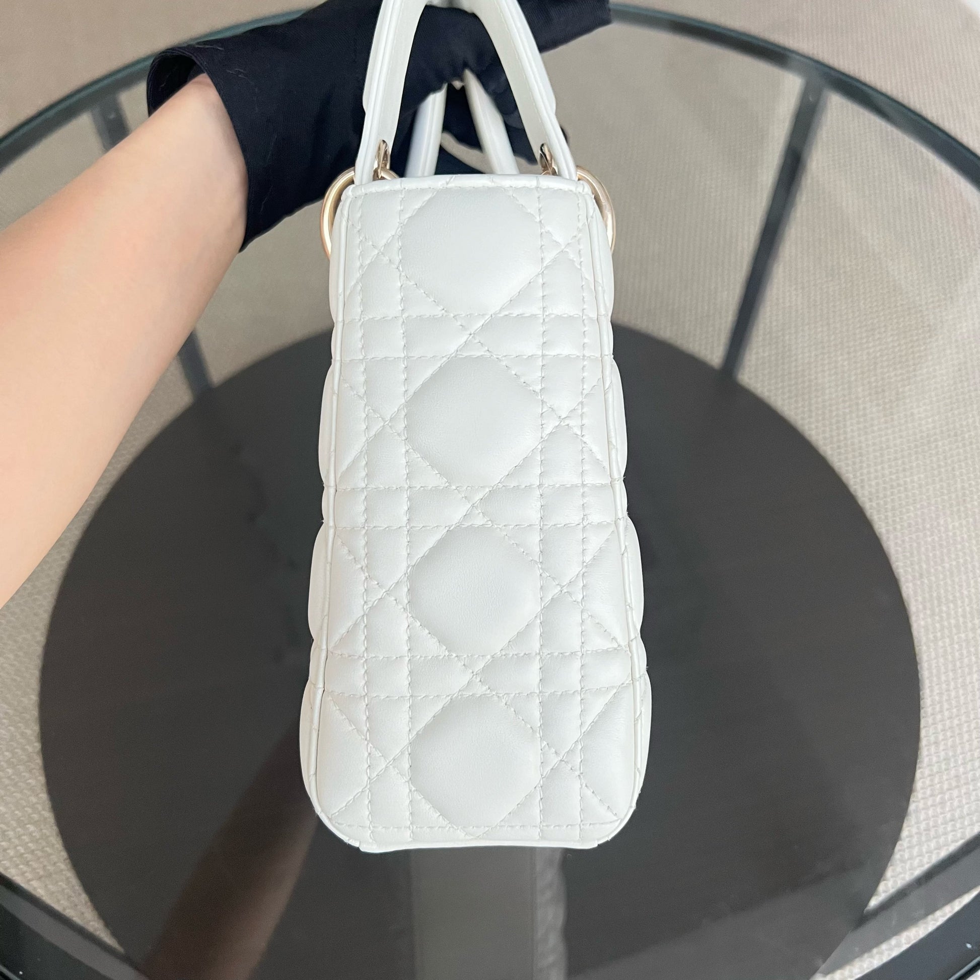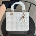 *Full Set, Receipt, ABC Strap* Lady Small Cannage Lambskin Cream White Light Golden Hardware ABC Strap MyABC