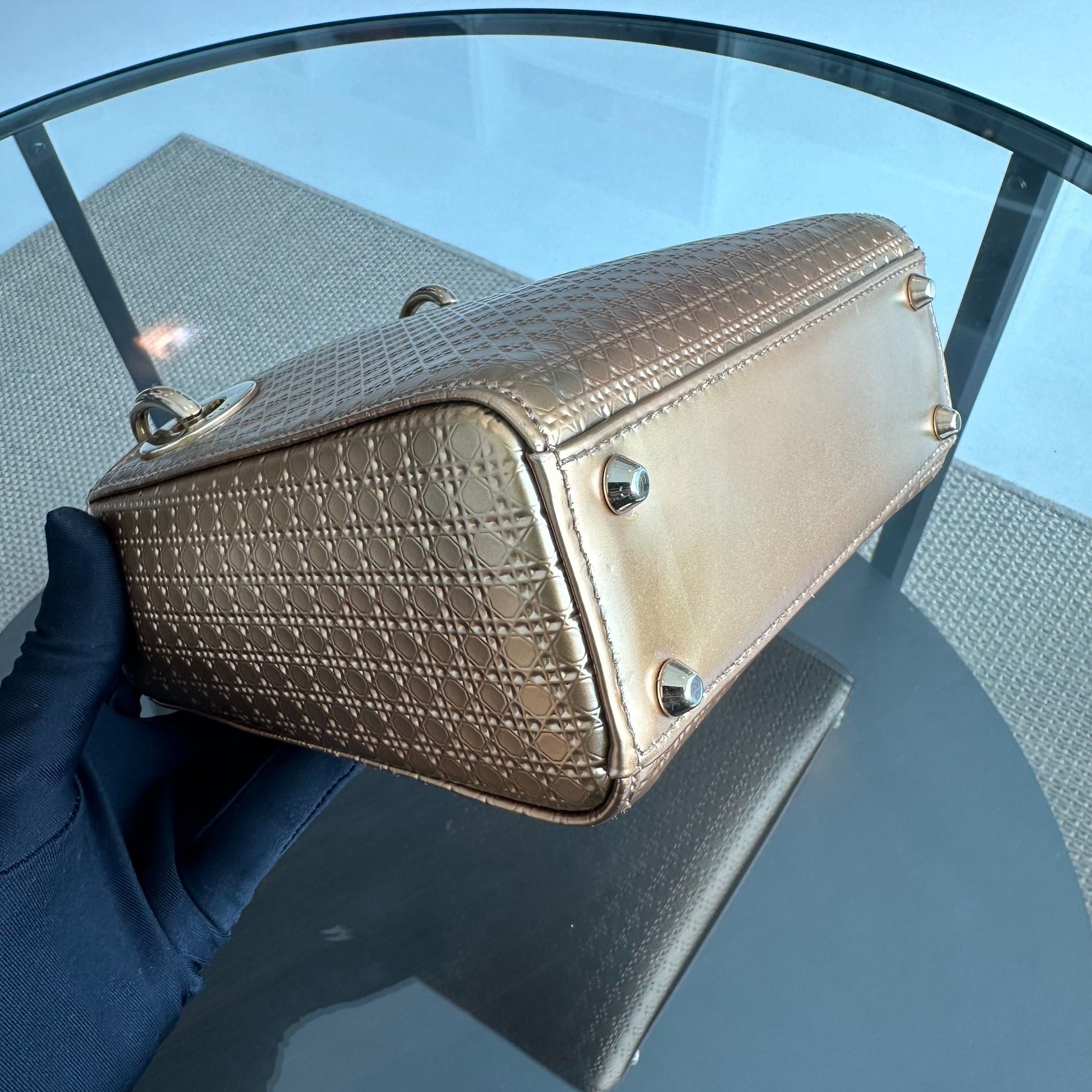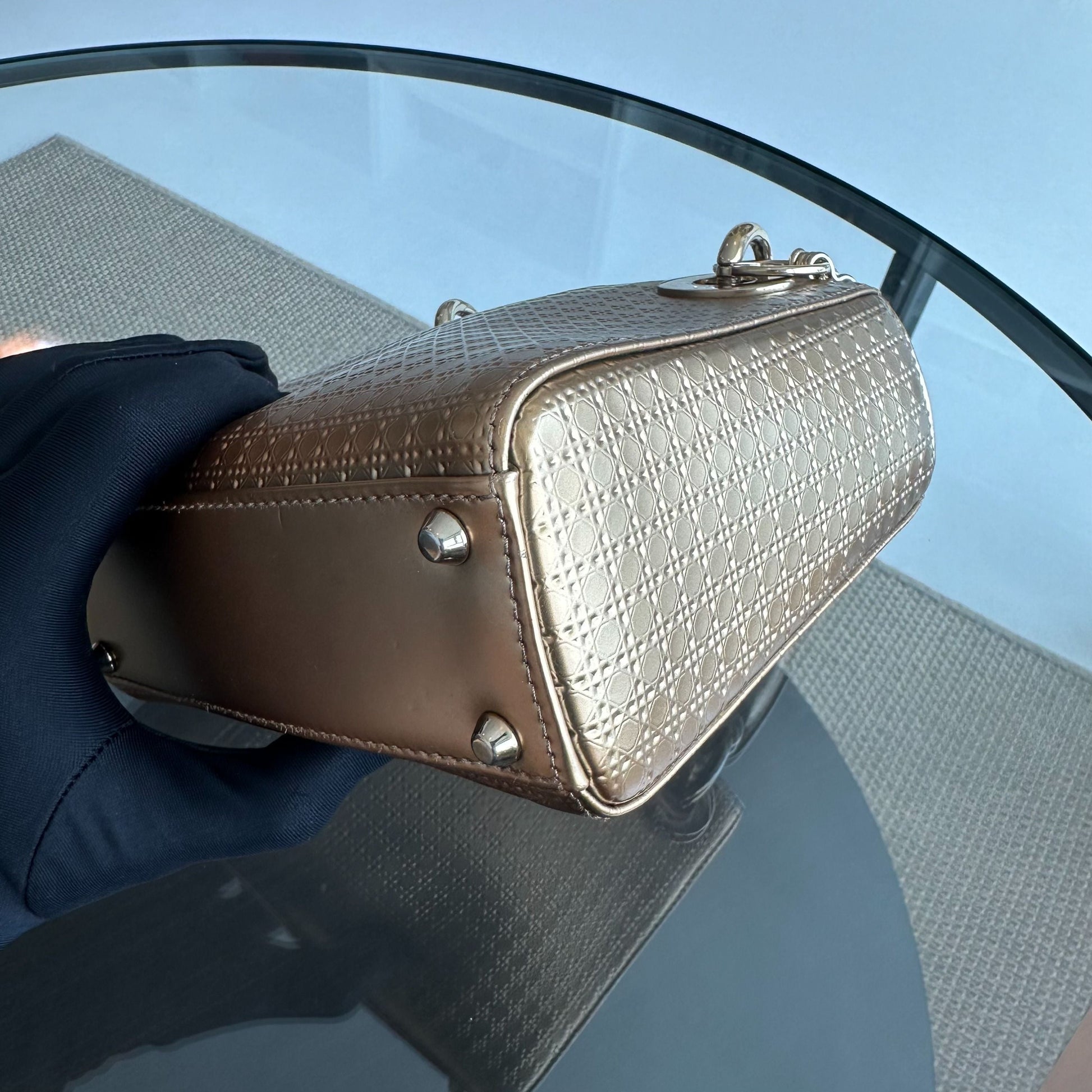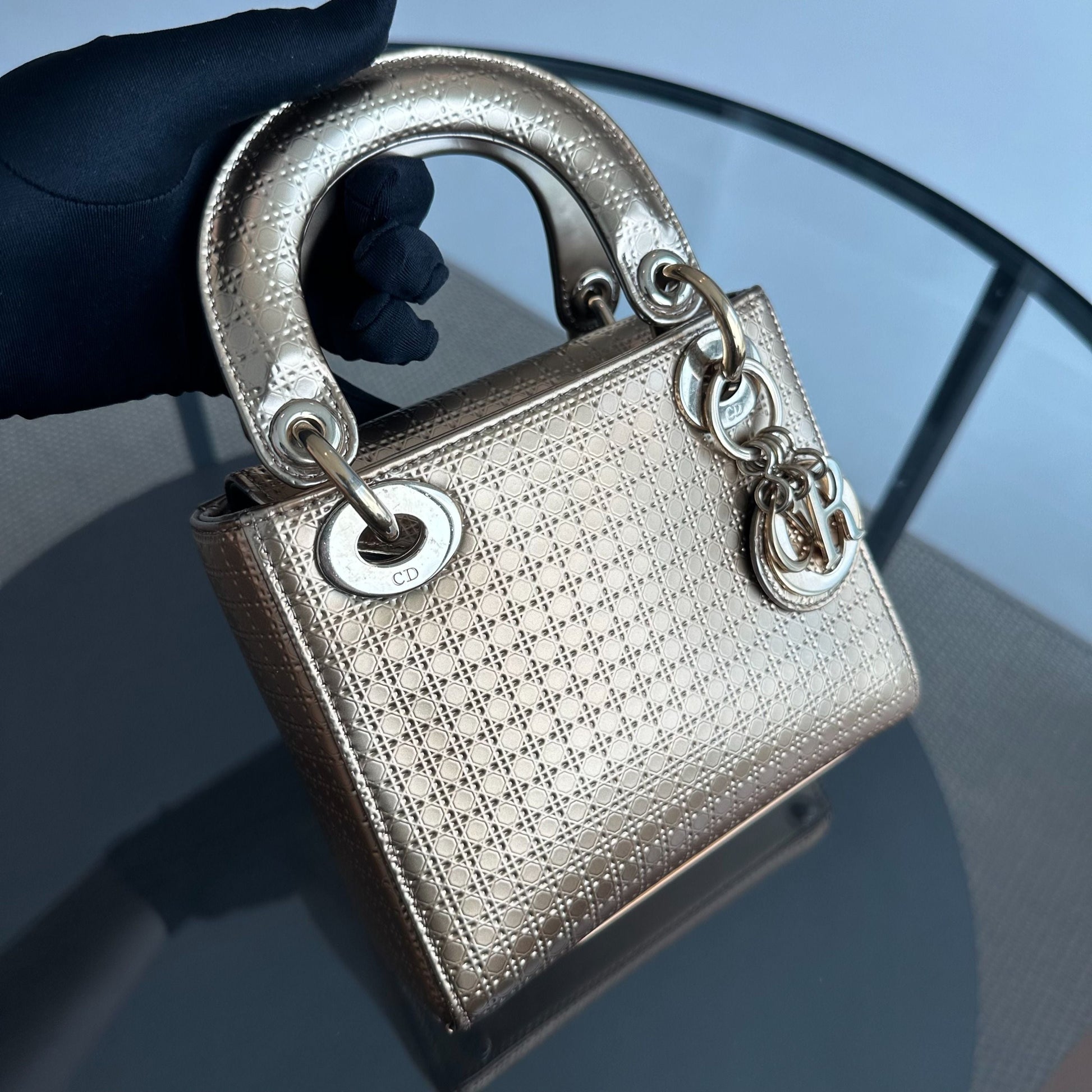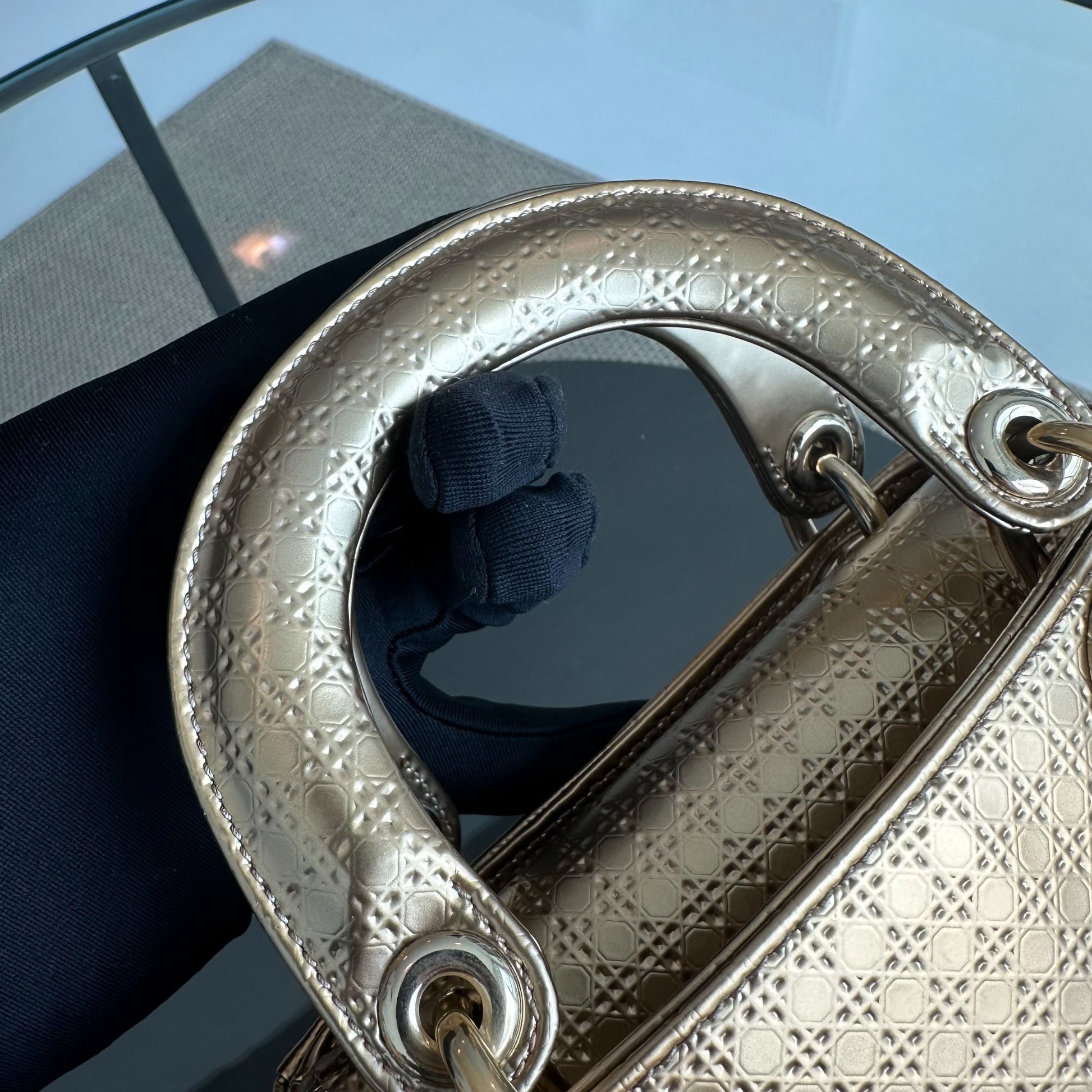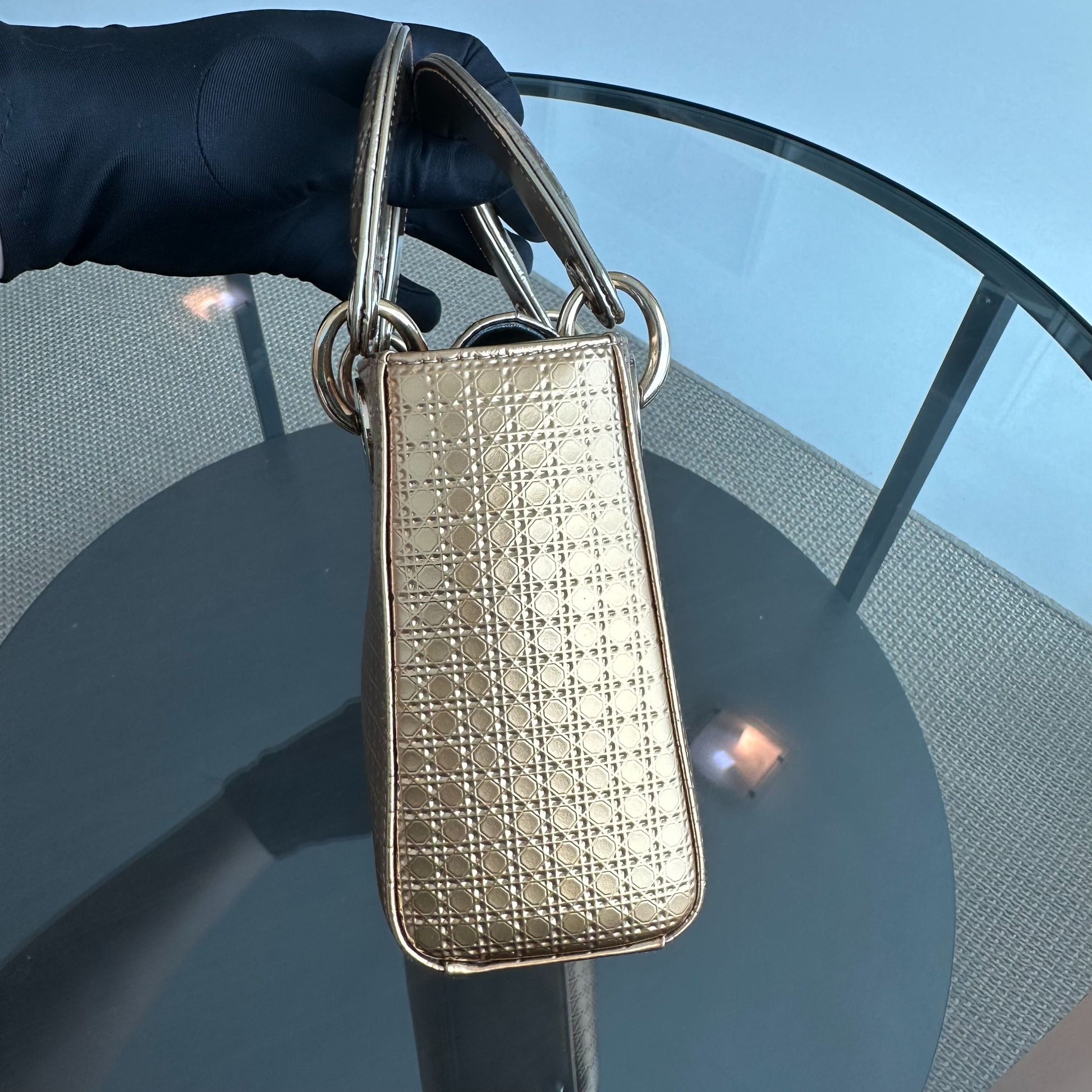 *Full Set Receipt, Chain Strap* Lady Mini Metallic Micro-Cannage Gold GHW