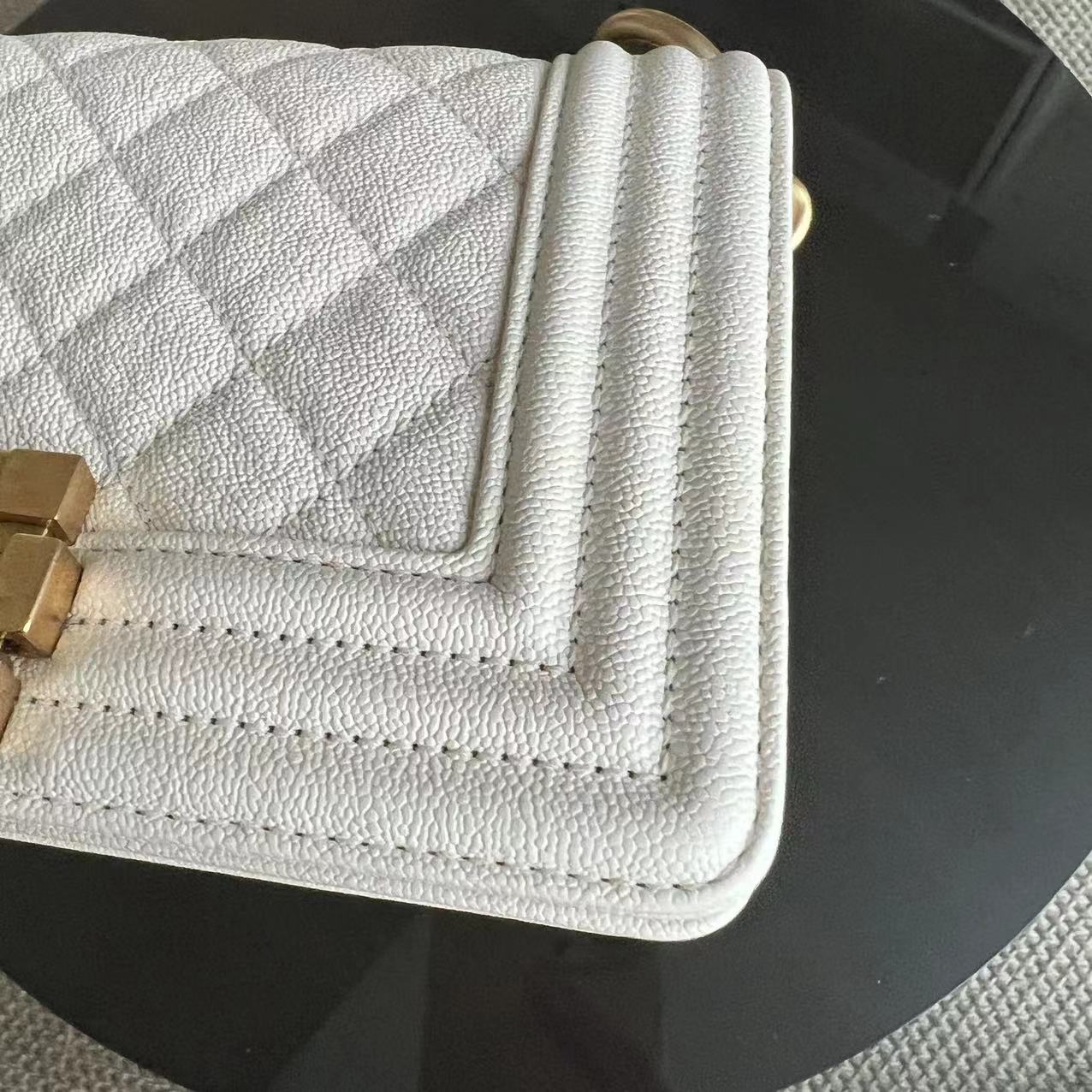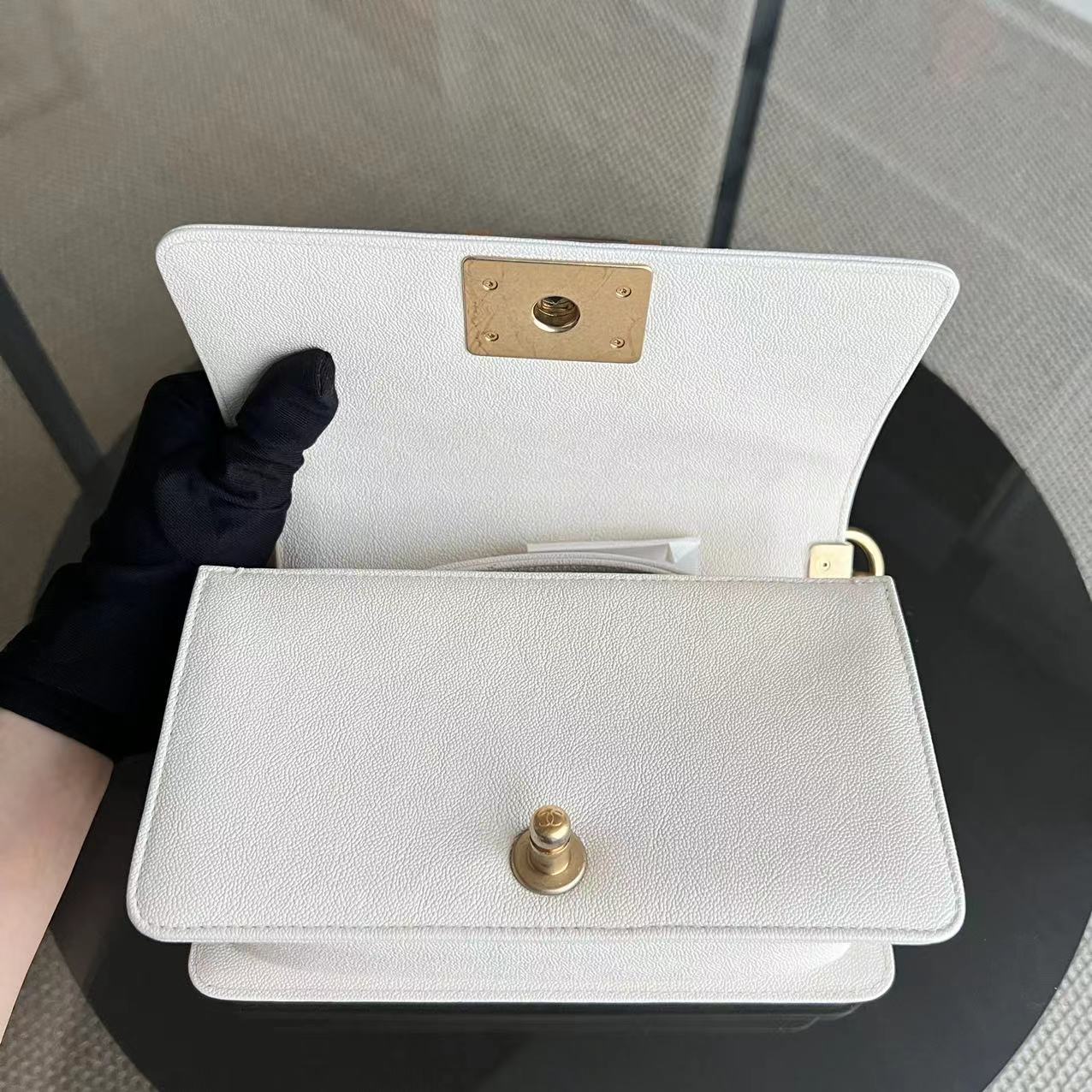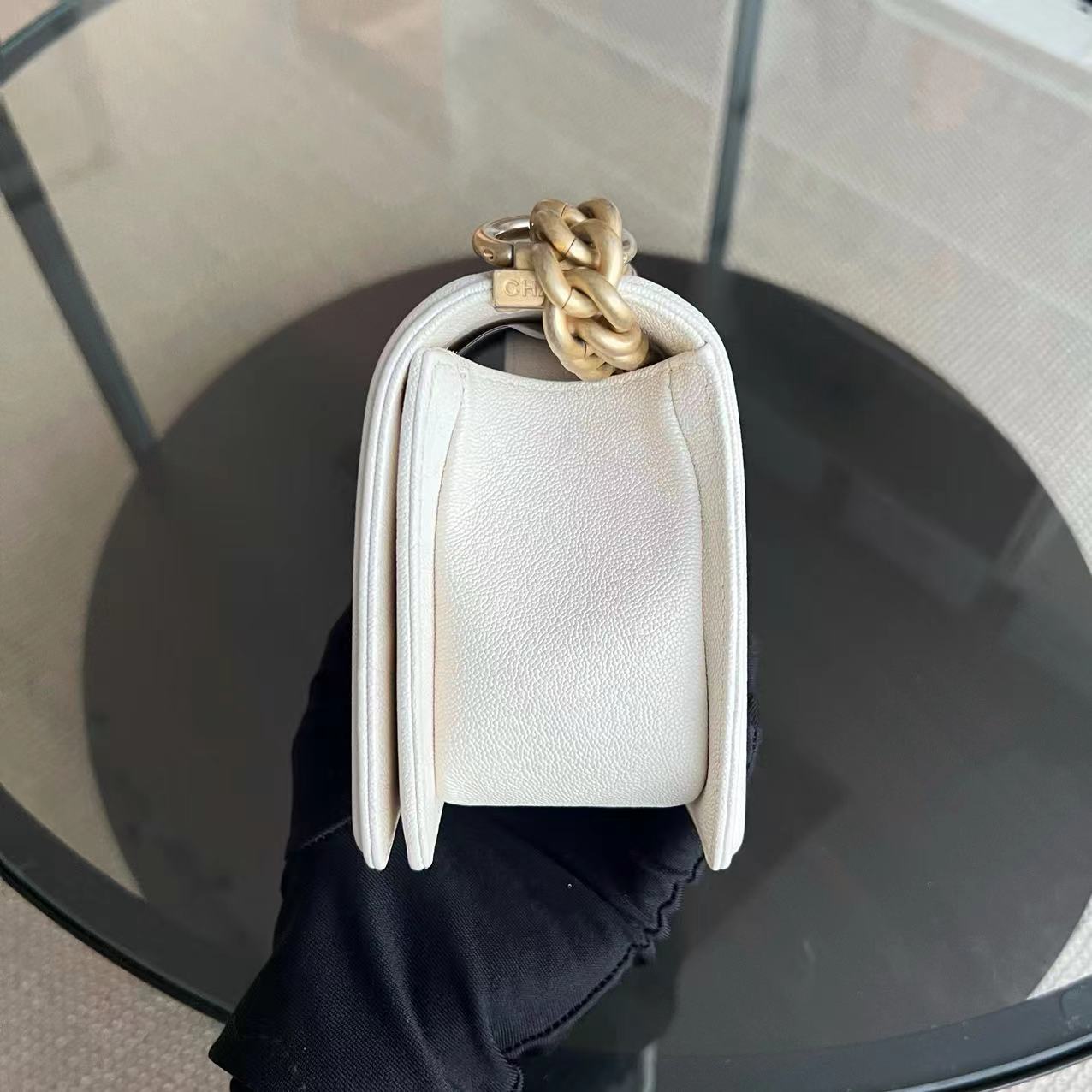 *Full Set, Receipt* Caviar Le Boy Small Quilted Cream White Golden Hardware Series 27