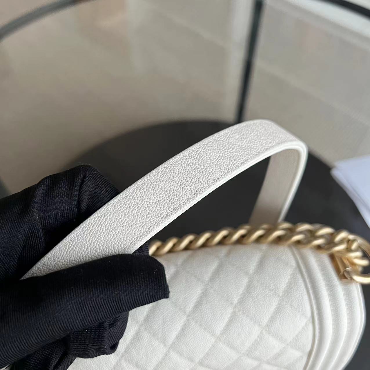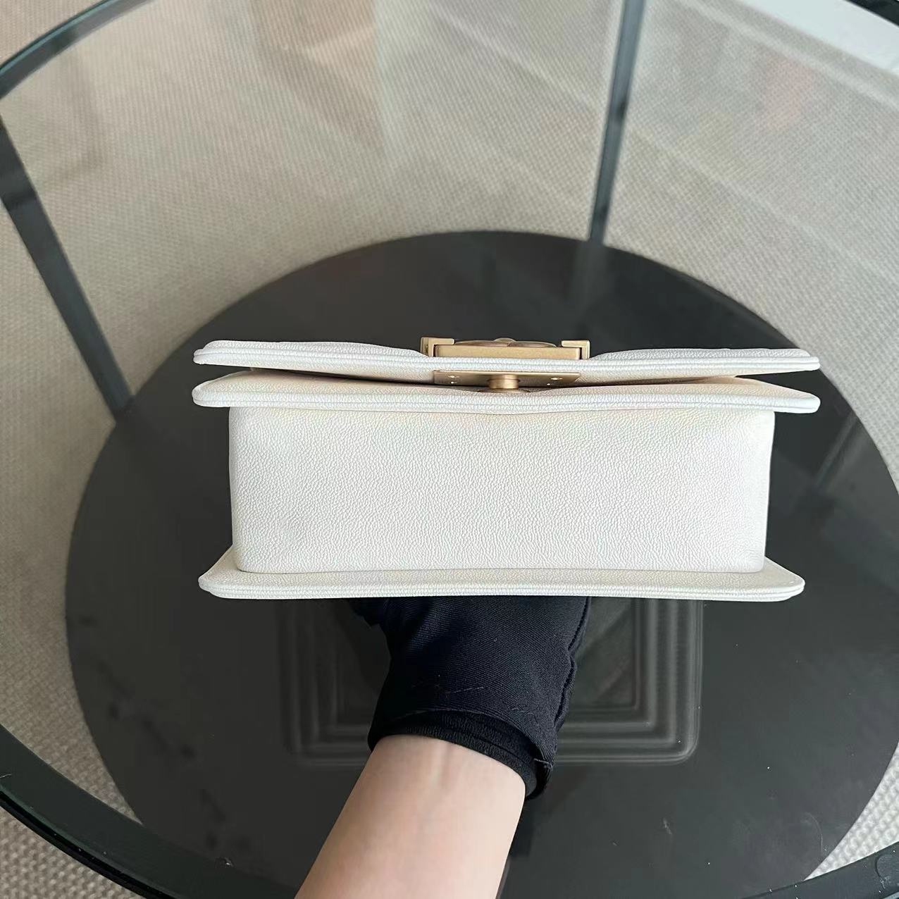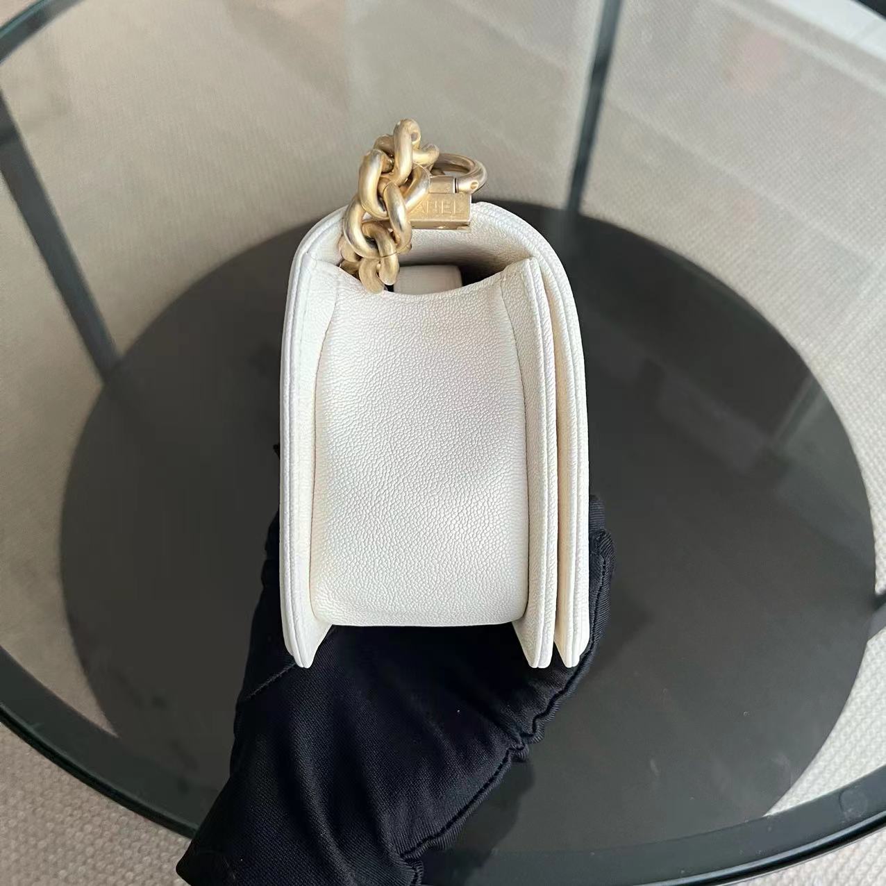 *Full Set, Receipt* Caviar Le Boy Small Quilted Cream White Golden Hardware Series 27
