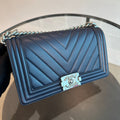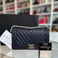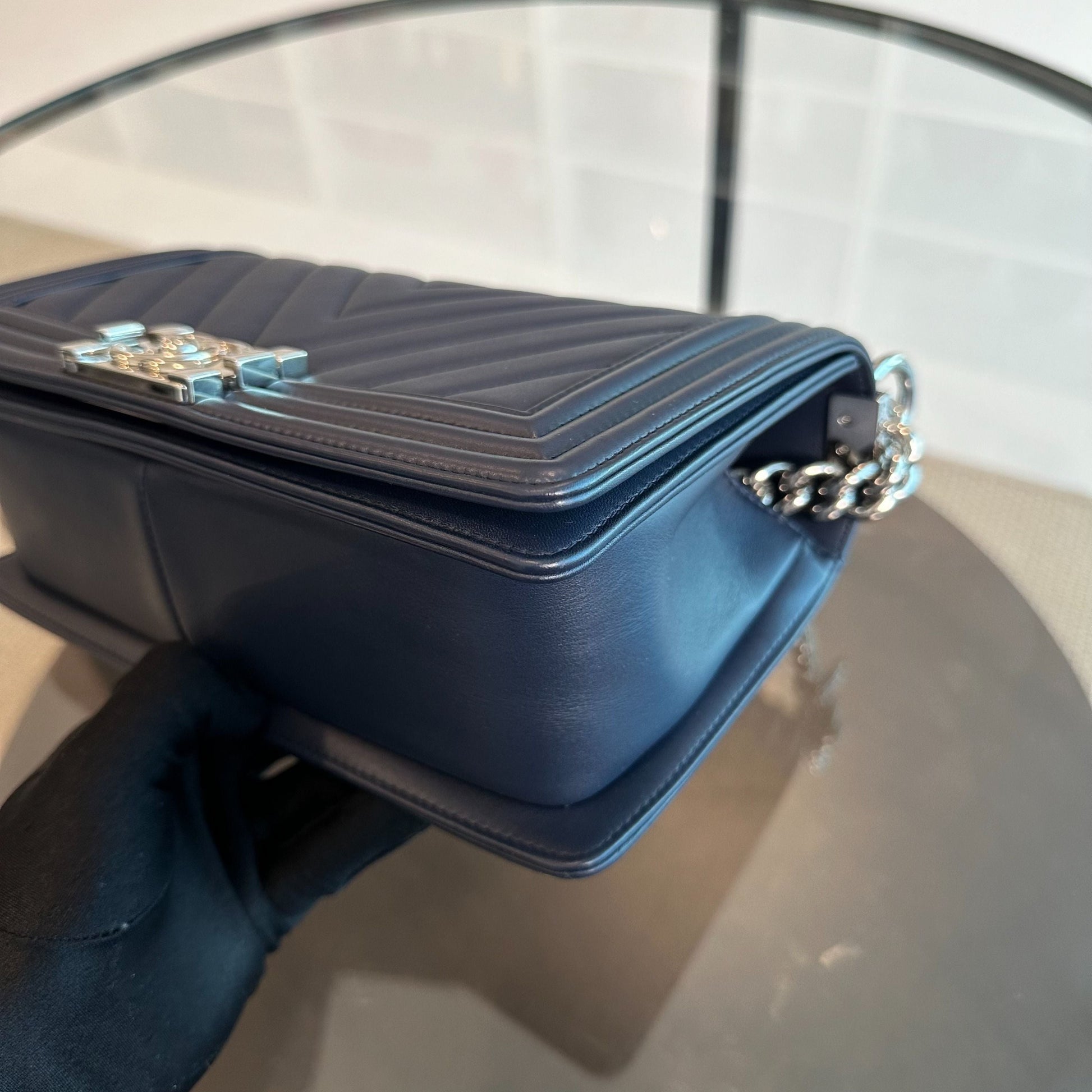 *Full Set Receipt* Boy Lambskin Old Medium 25CM Chevron Dark Blue SHW No 22