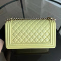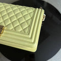 *Full Set Receipt* Boy Old Medium 25CM Quilted Calfskin Yellow Golden Hardware Series 22