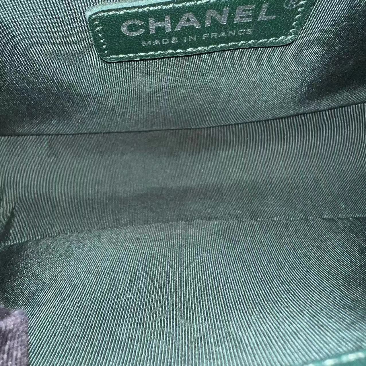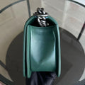 *Full Set, Receipt* Boy Old Medium 25CM Quilted Lambskin Dark Green Leboy Silver Hardware Series 21