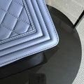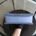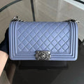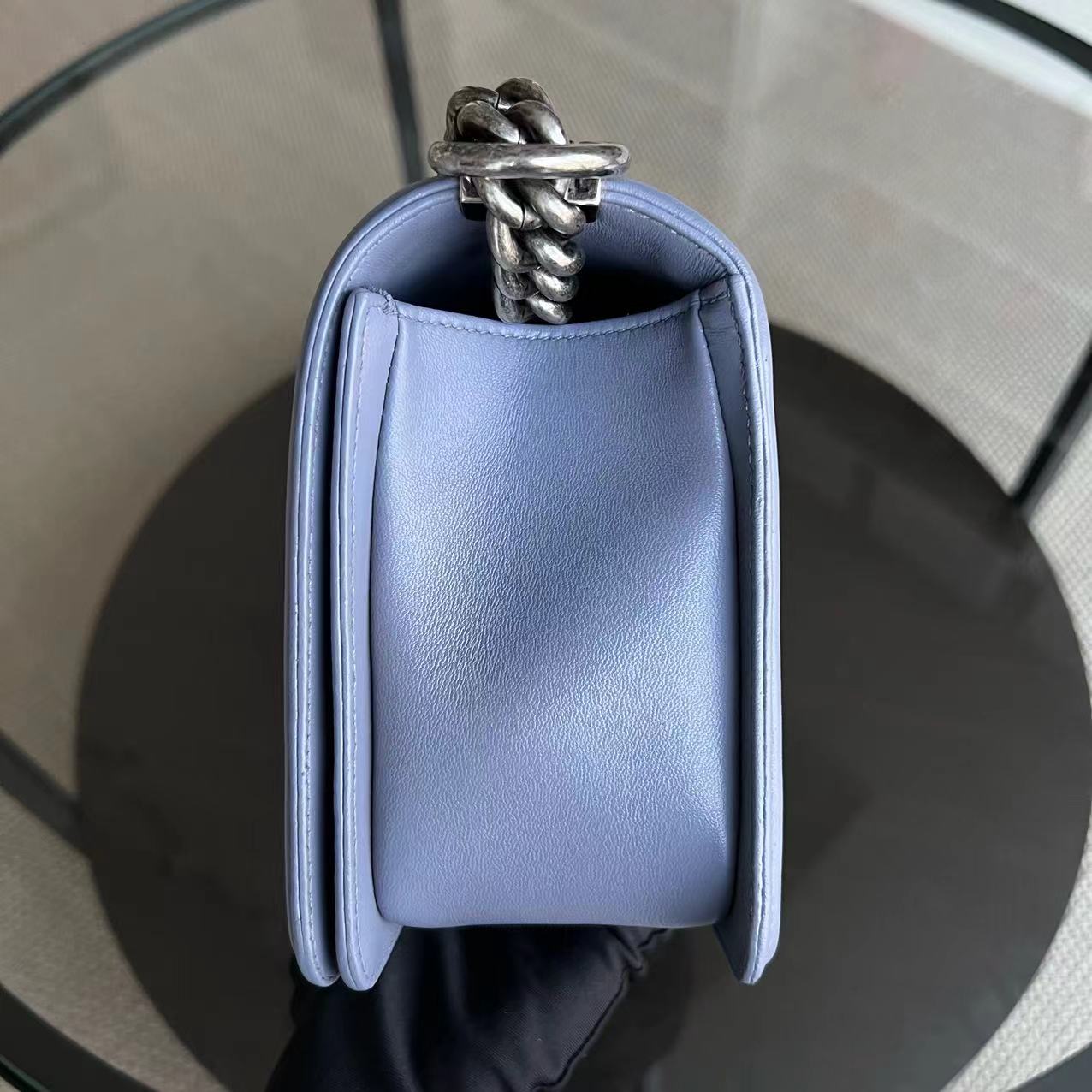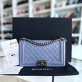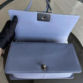 *Full Set, Receipt* Boy Old Medium 25CM Quilted Lambskin Lavender Light Purple Silver Hardware Series 15