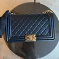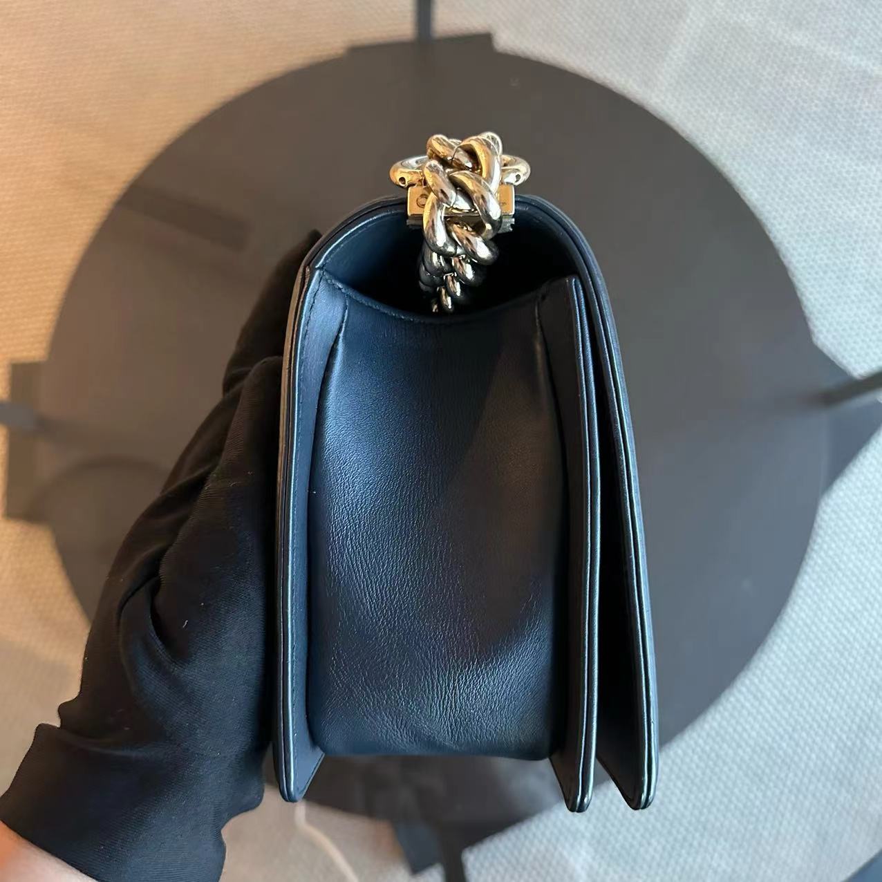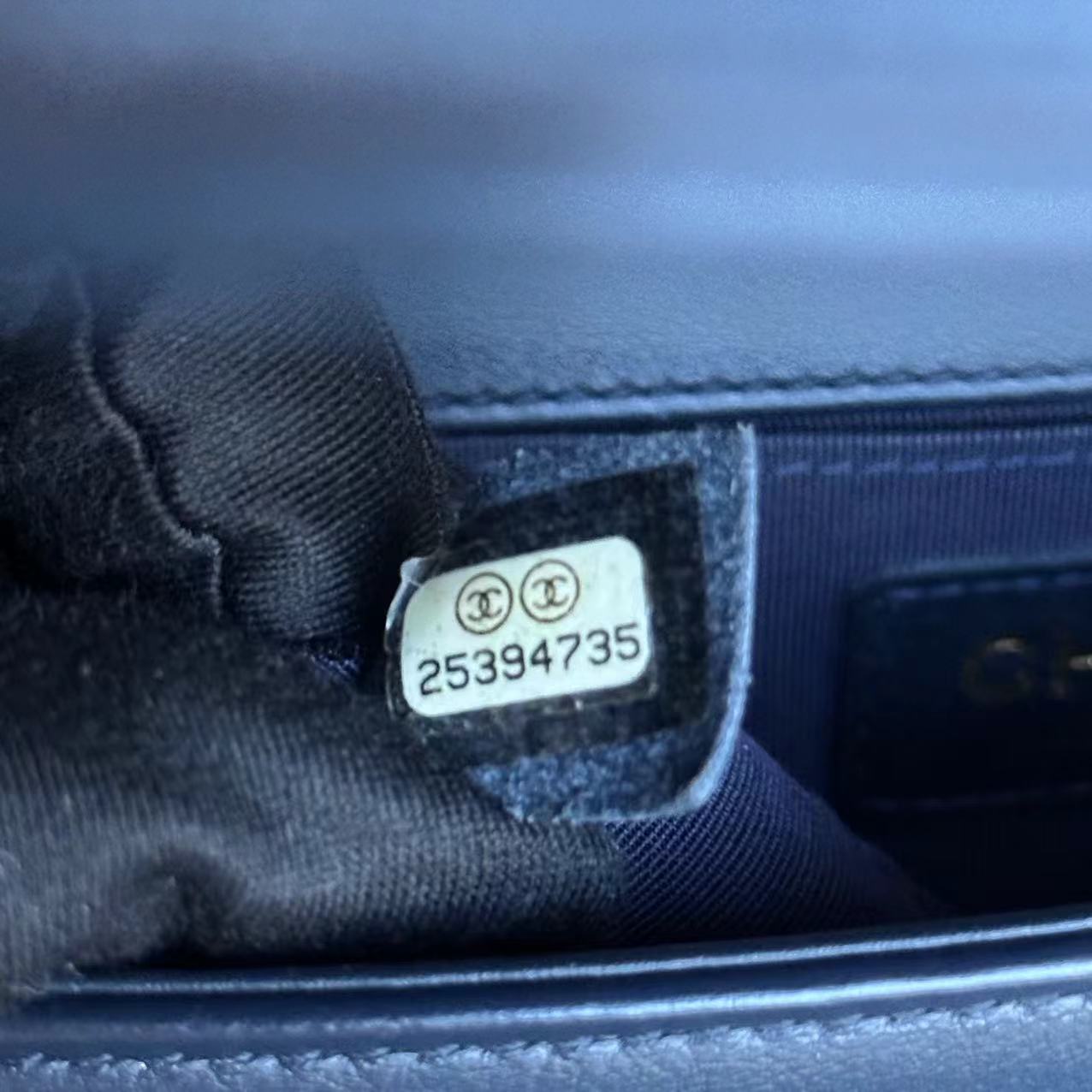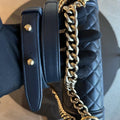 *Full Set Receipt* Boy Old Medium Quilted Calfskin Leboy 25CM Dark Blue GHW No 25