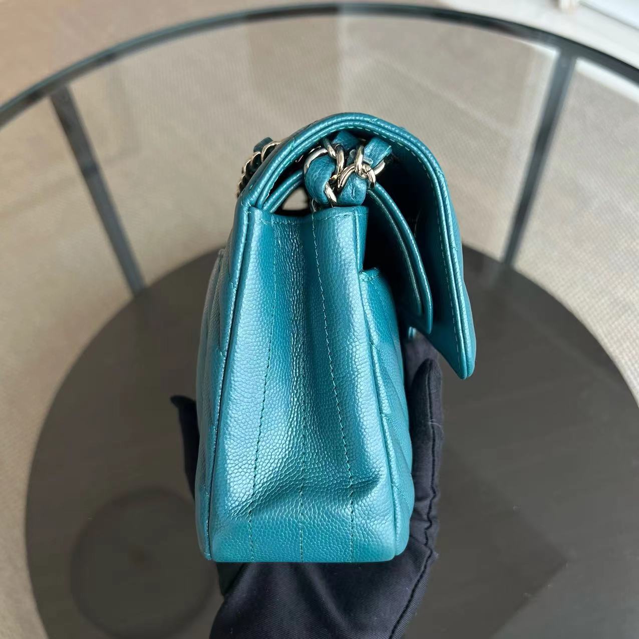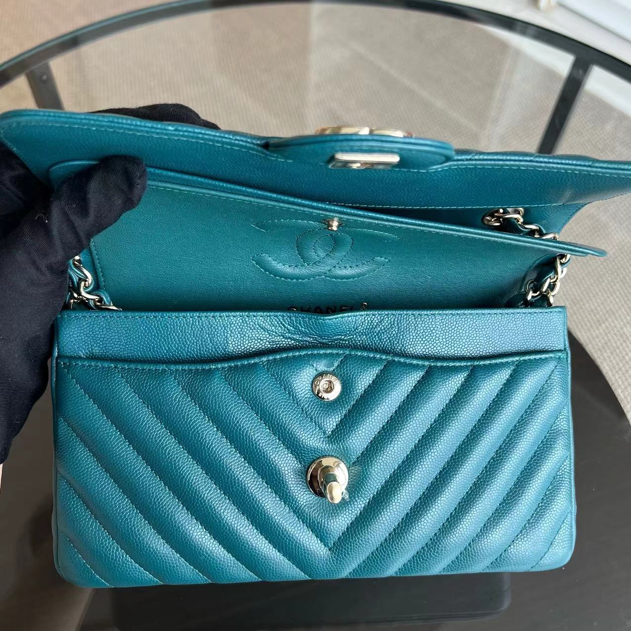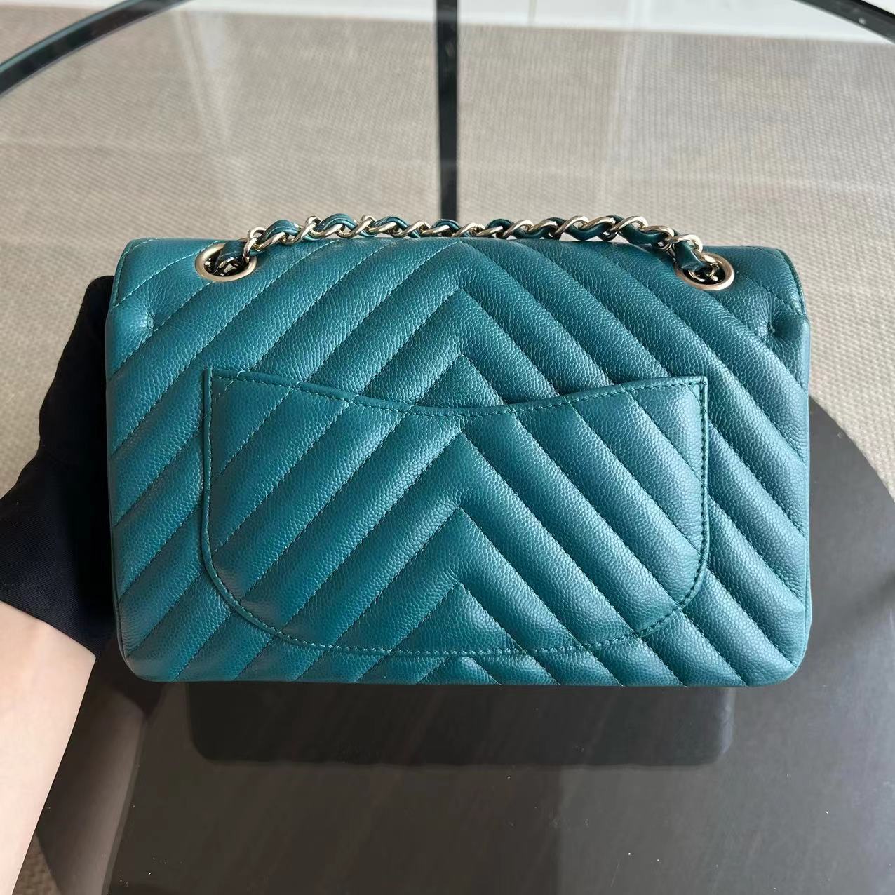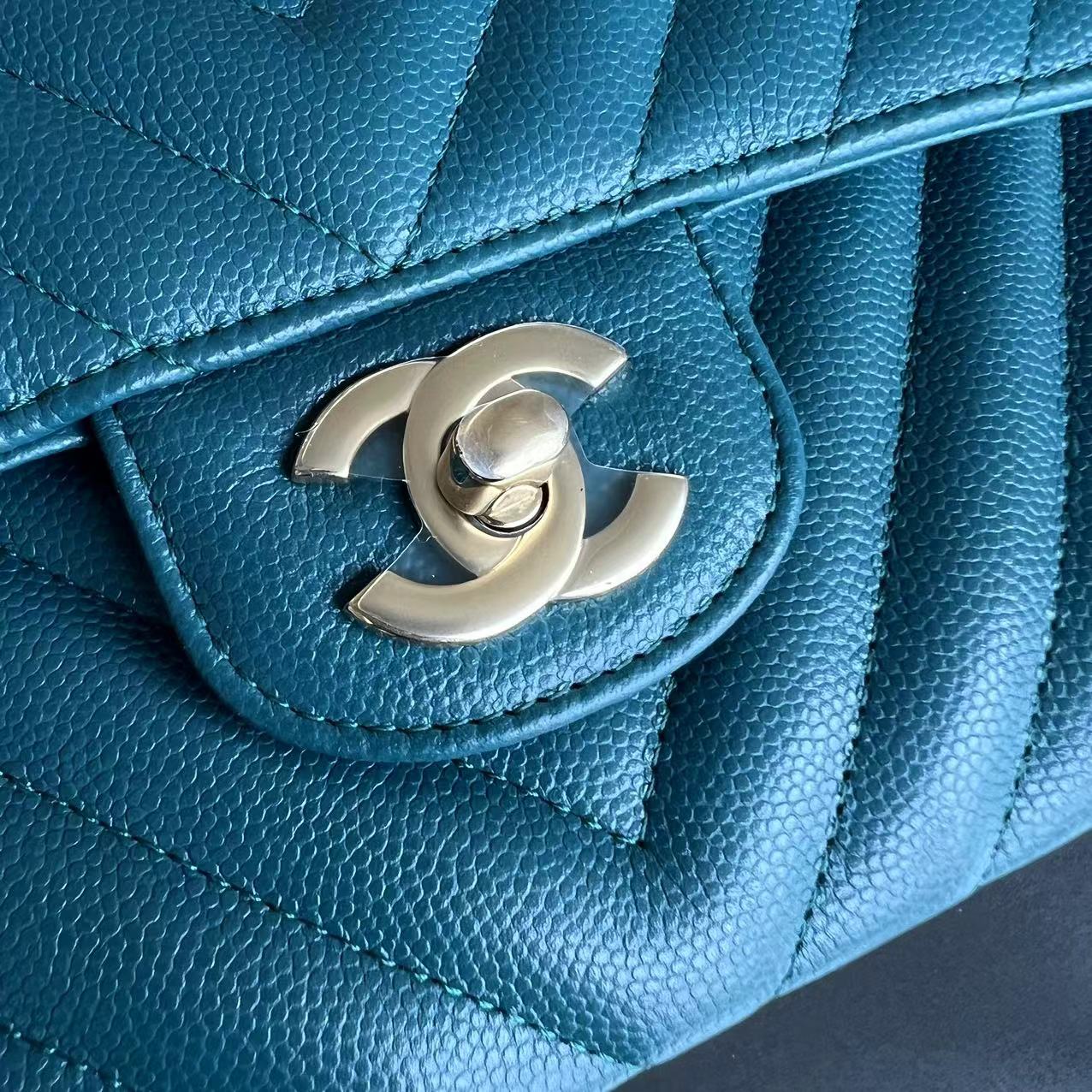 *Full Set Receipt* Caviar Small 23CM Chevron Calfskin Jade Green Blue GHW No 26