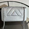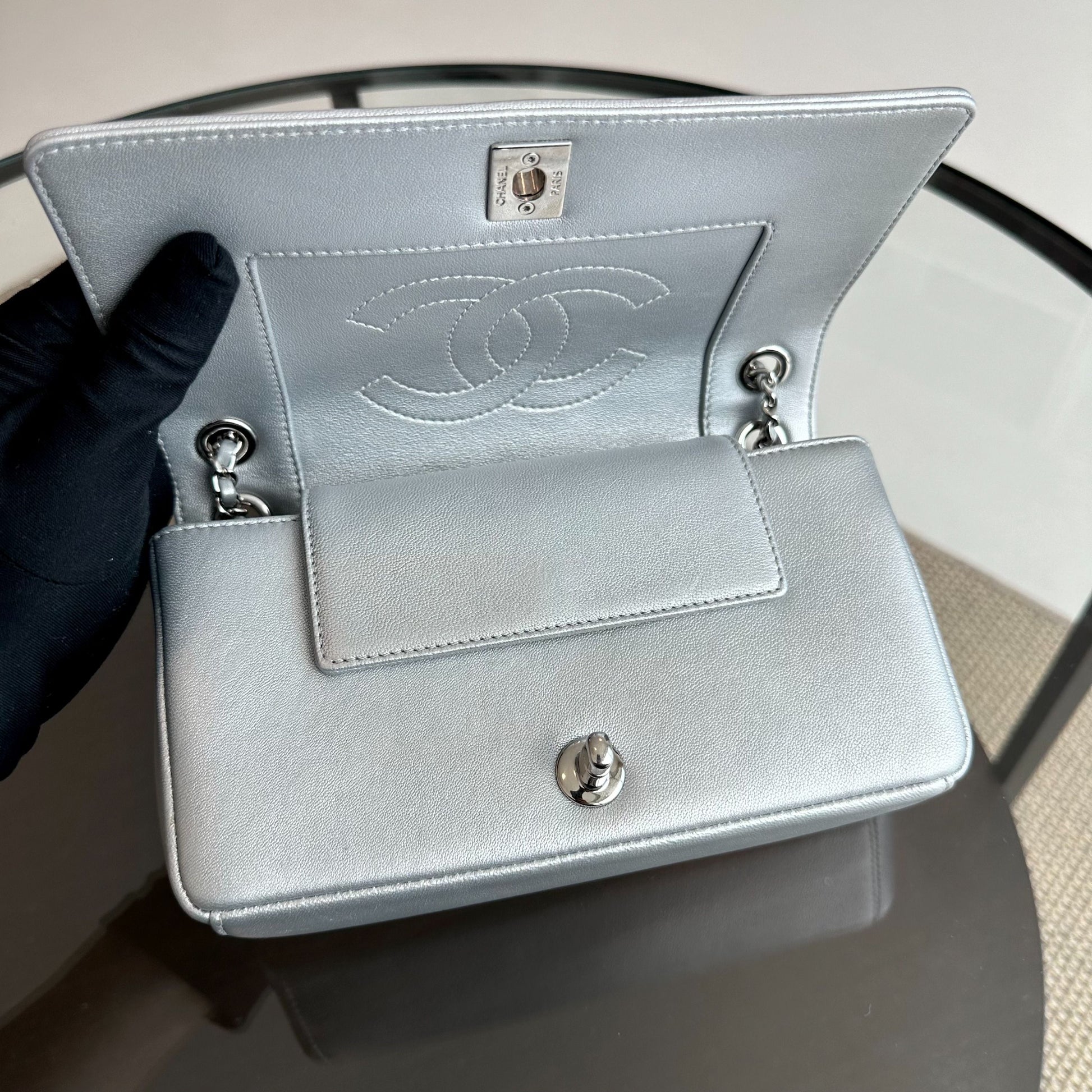 *Full Set, Receipt* Mademoiselle Small Seasonal Double Flap Calfskin Quilted Silver No 24