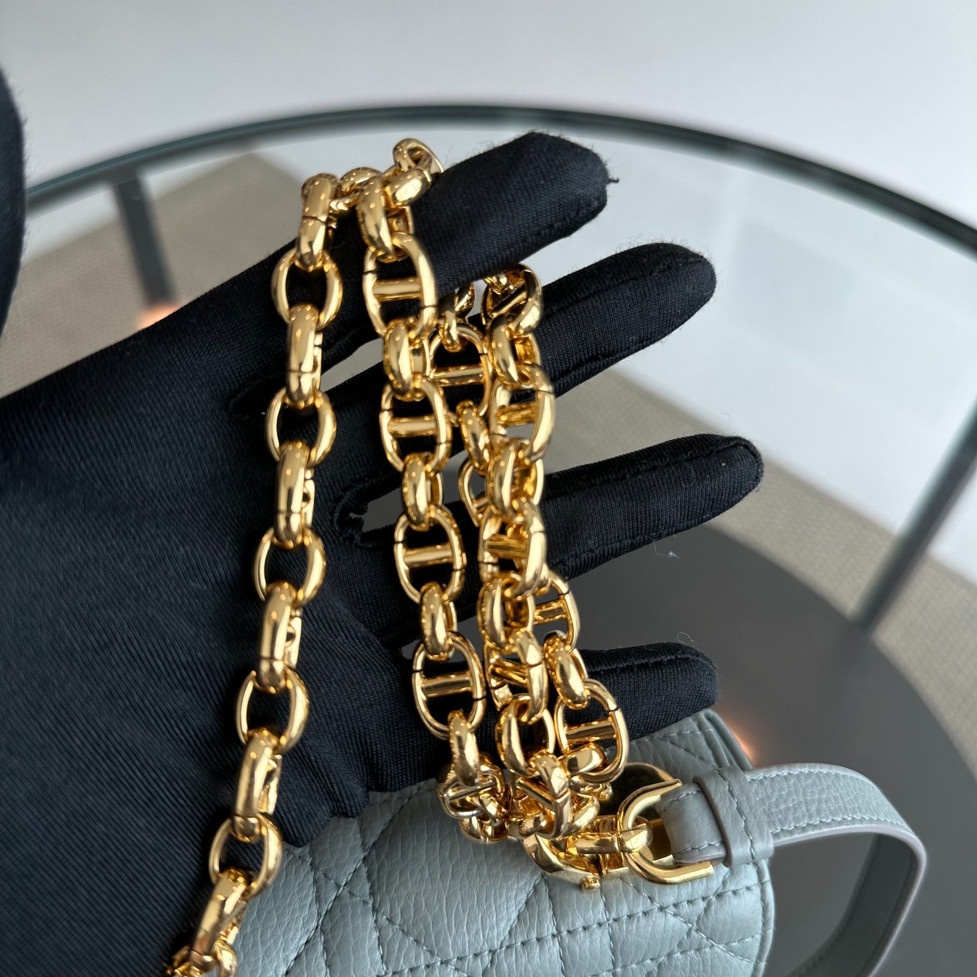 *Full Set, Receipt* Caro Small Cannage Flap Bag Grey GHW