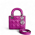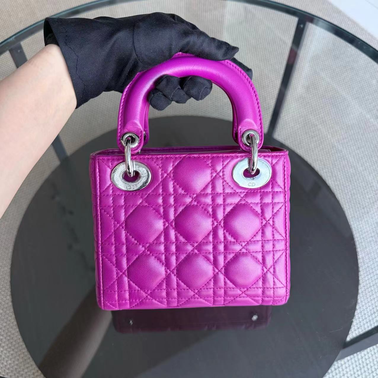 *Full Set Receipt* Dior Lady Mini Cannage Lambskin Purple Violet Silver Hardware Adjustbale Strap