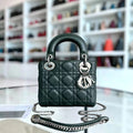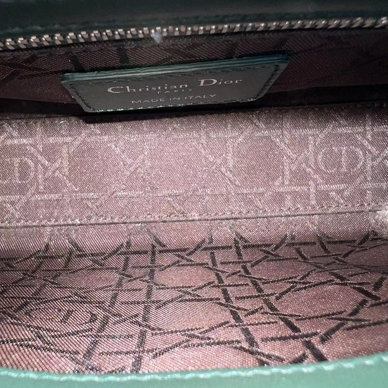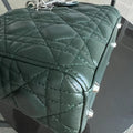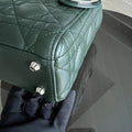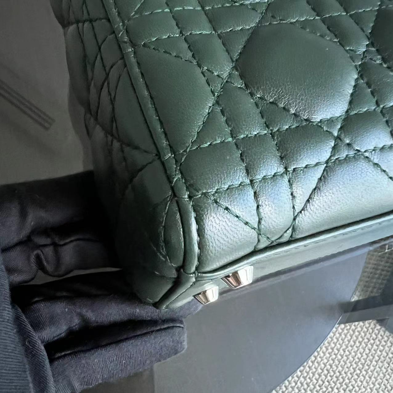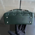 An absolute Dior dream! This ultra-rare Lady Dior Mini in dark green lambskin with stunning silver hardware is incredibly hard to find. Complete with a chic chain strap, this collectible gem is a must-have for any fashion aficionado.