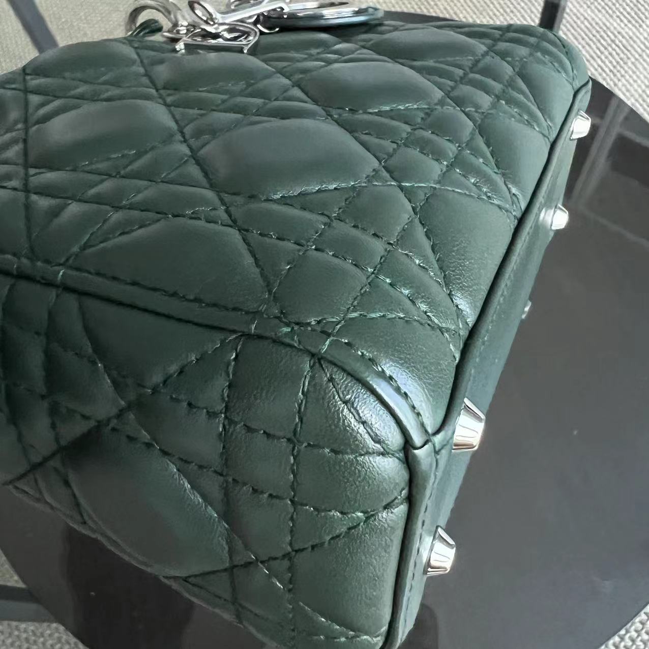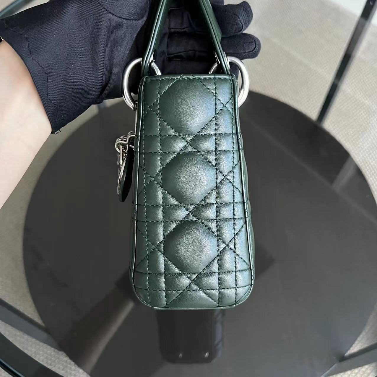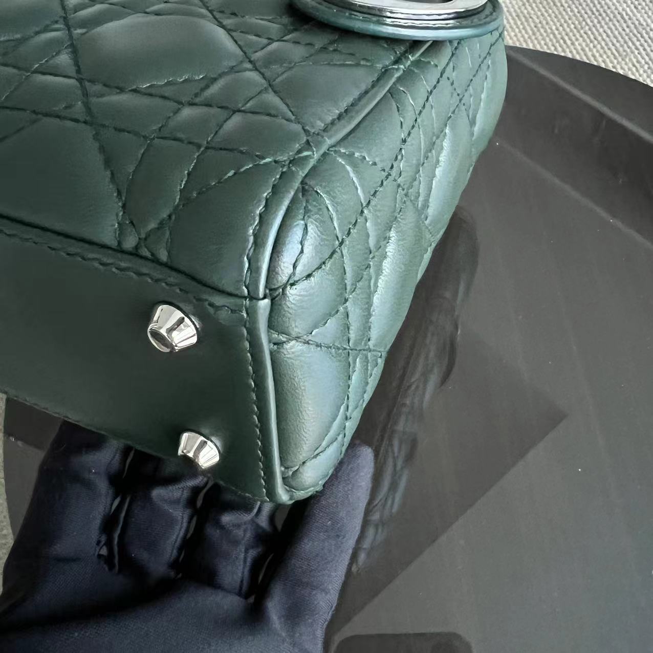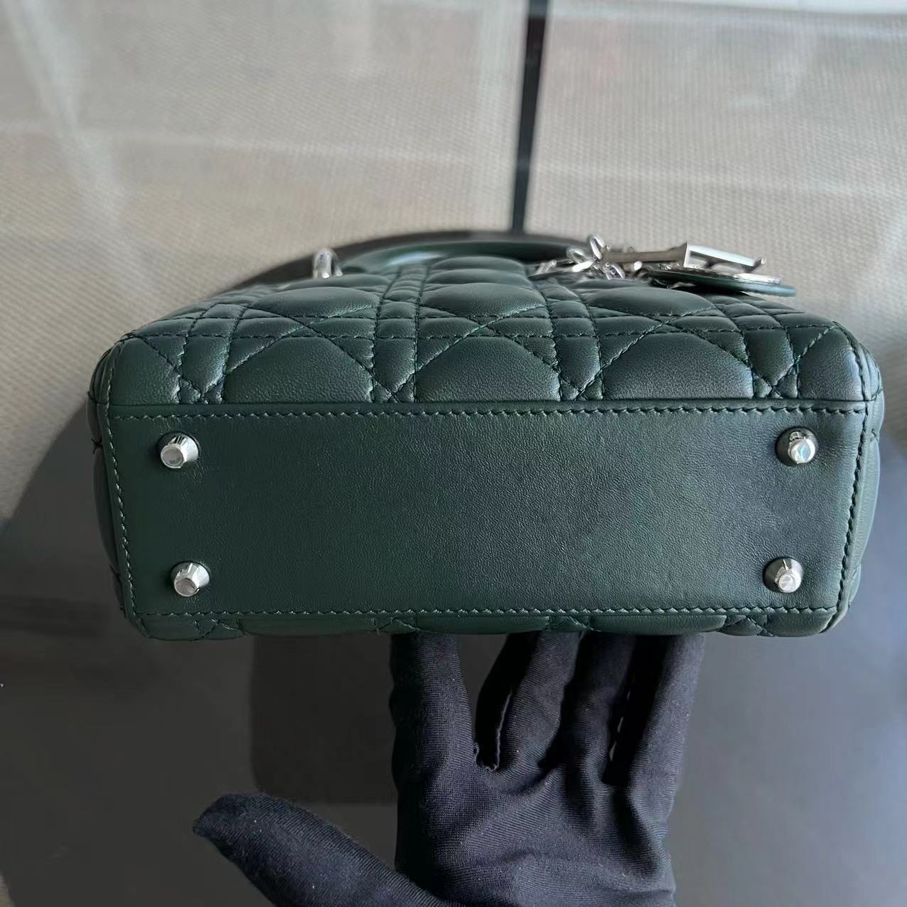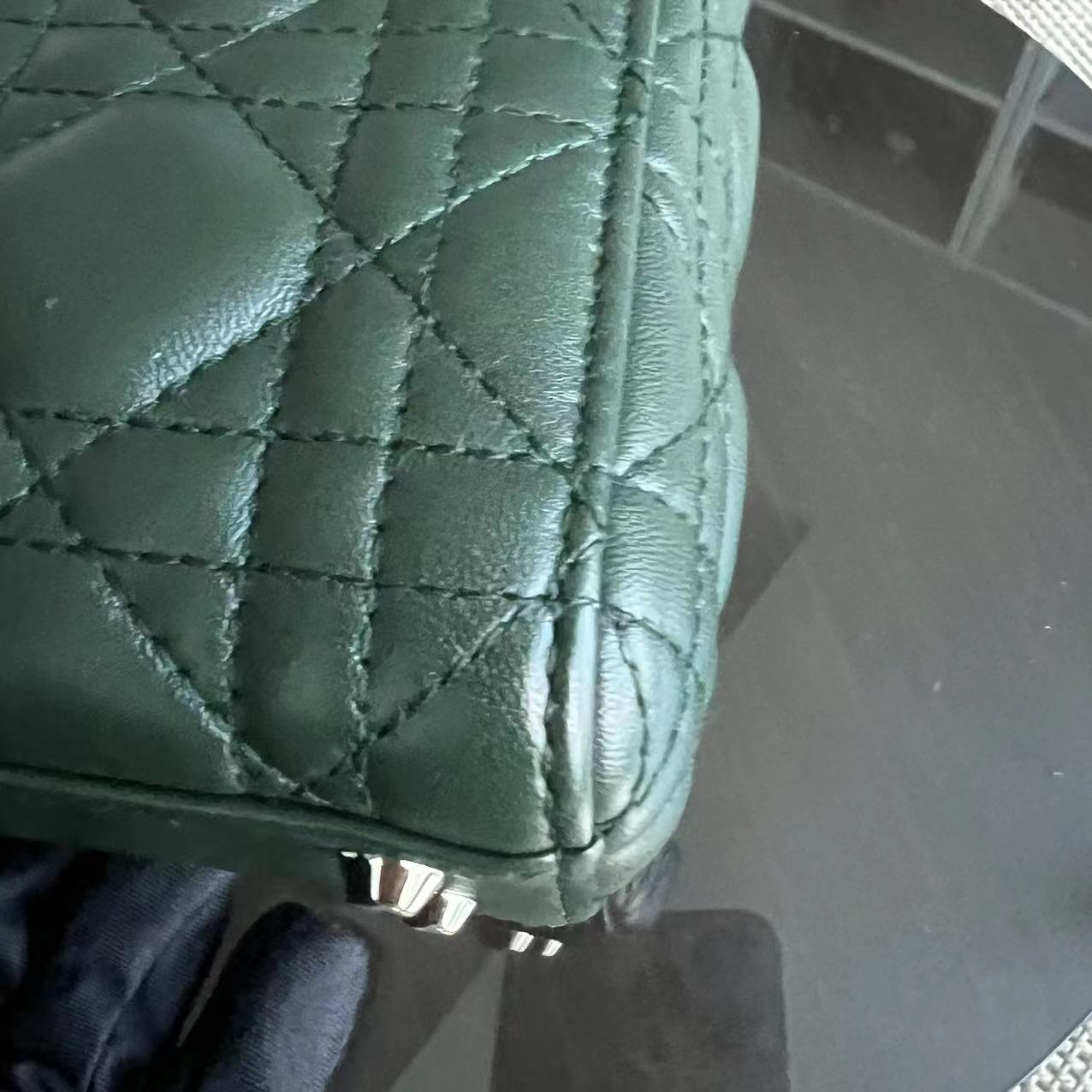 *Full set, Receipt* Lady Mini Lambskin Dark Green Silver Hardware Chain Strap