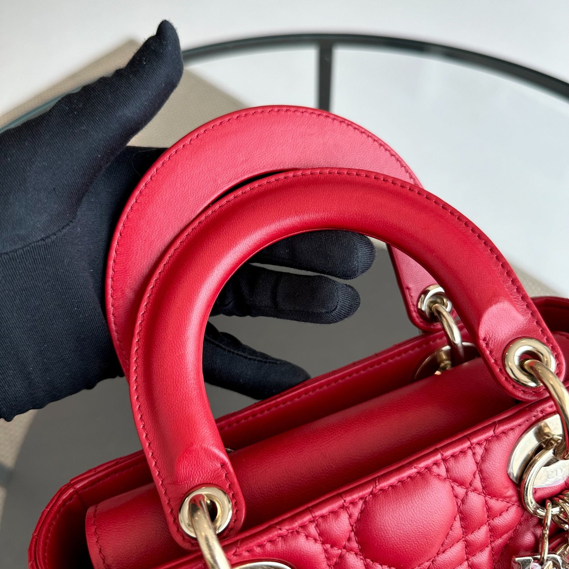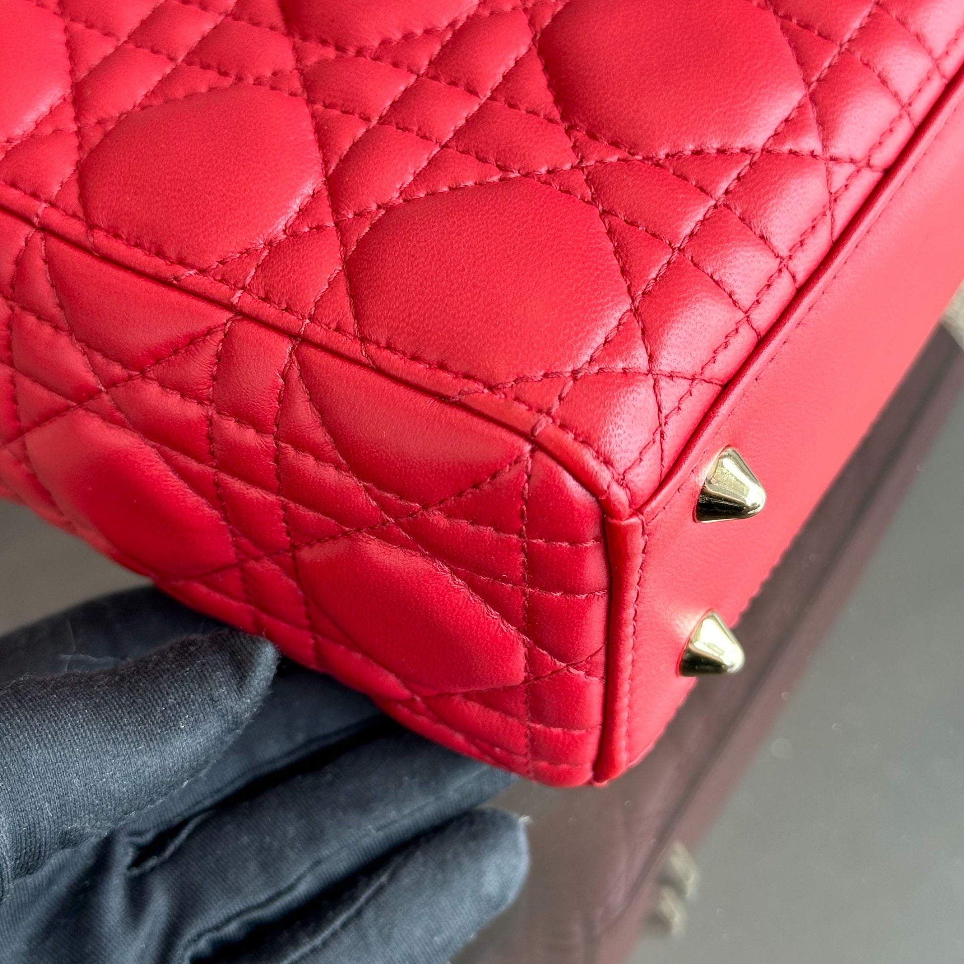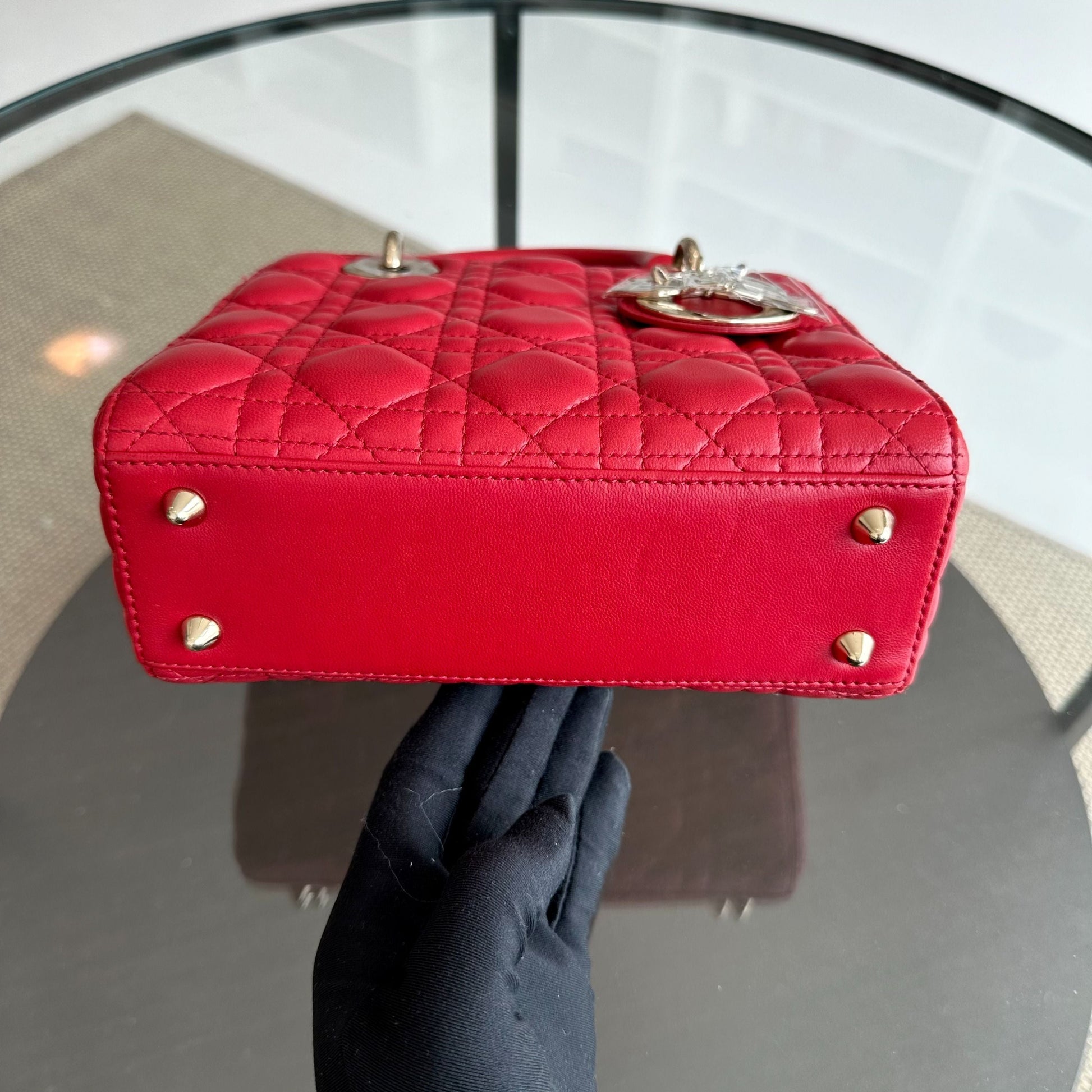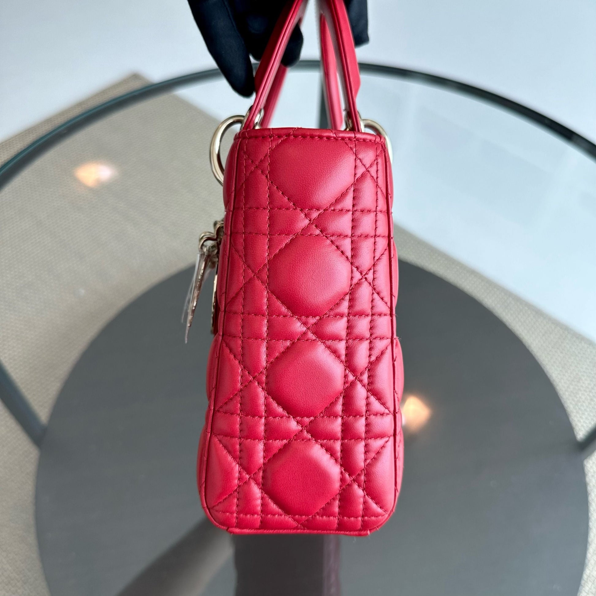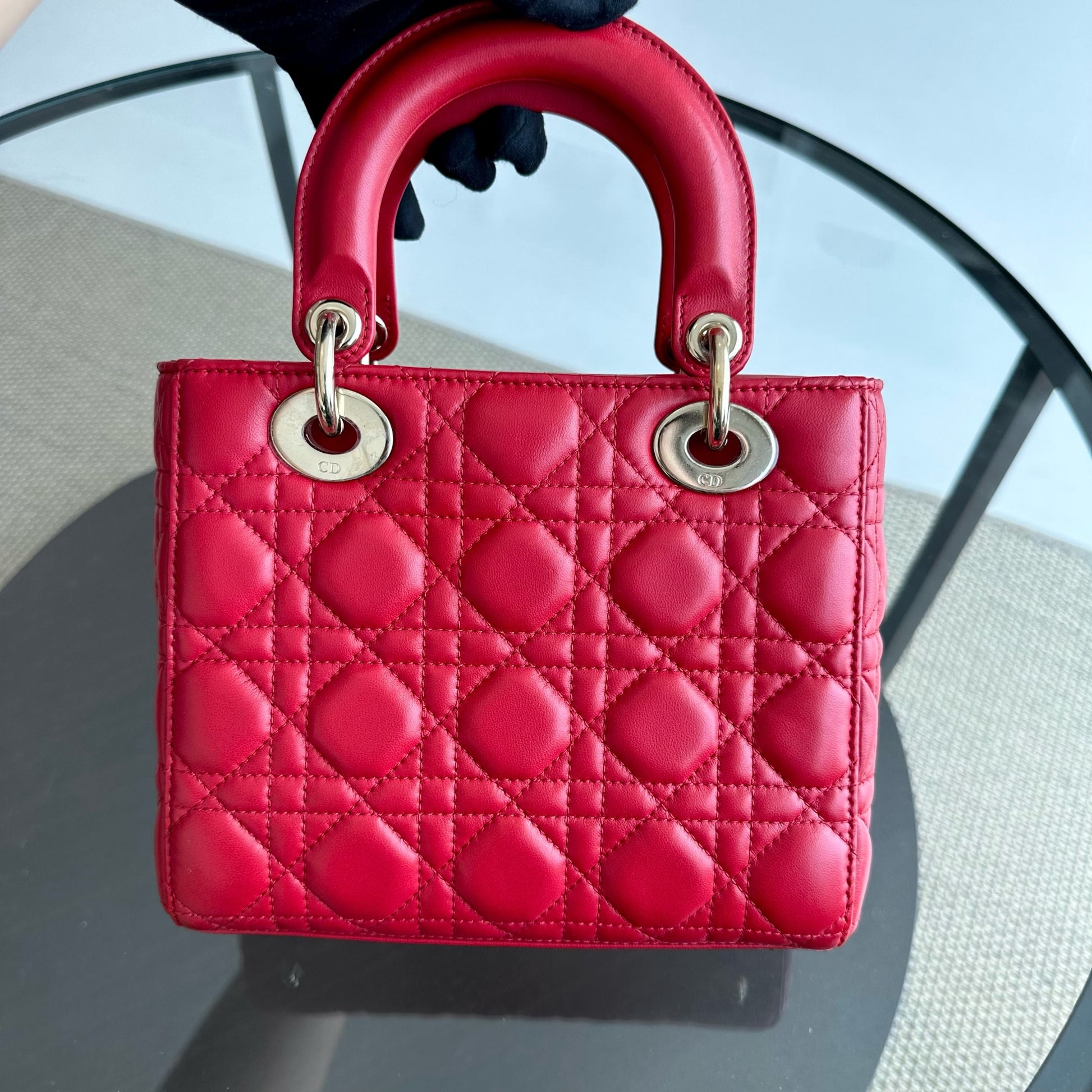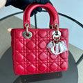 *Full Set, Receipt* Lady Small Lambskin Cannage Charm ABC Red GHW