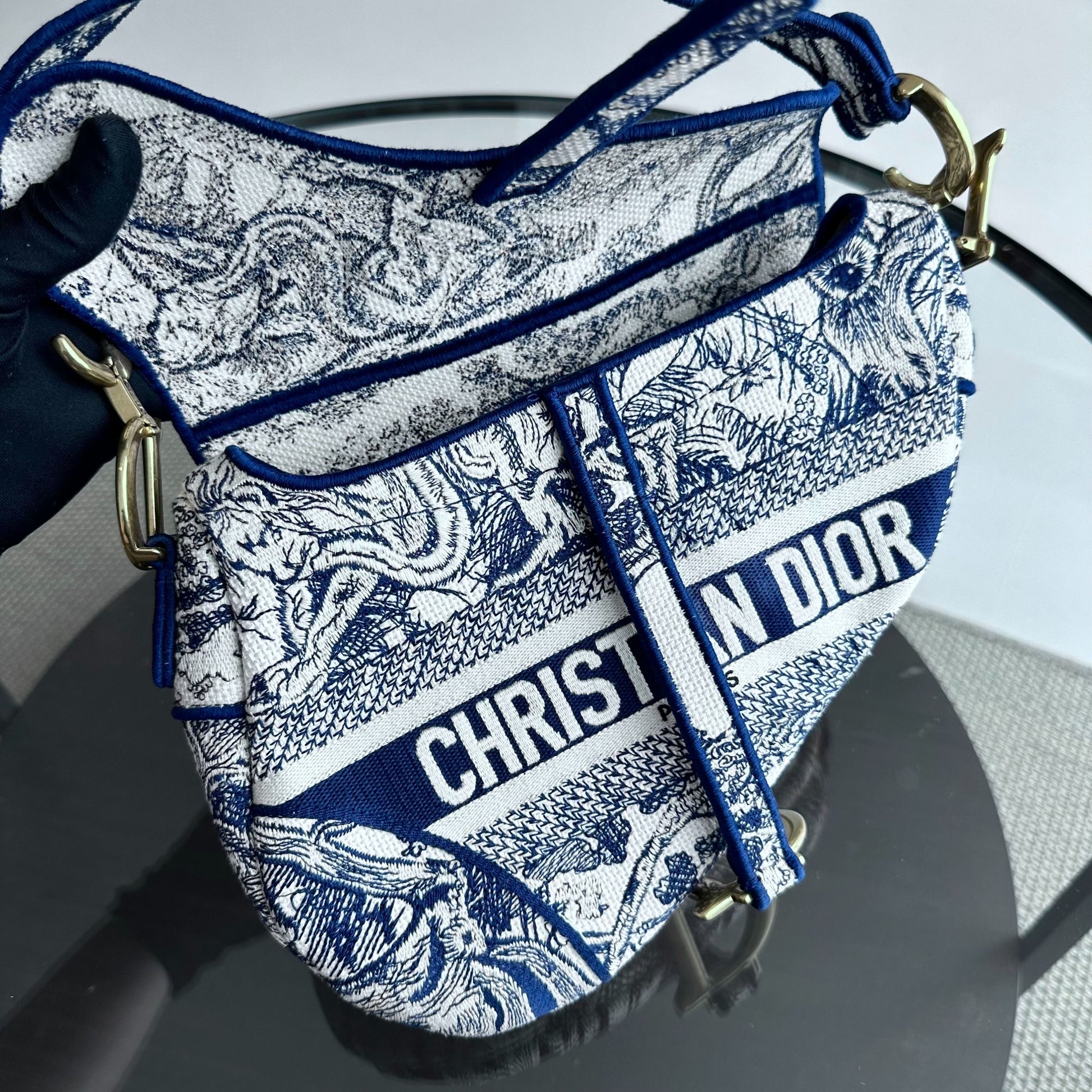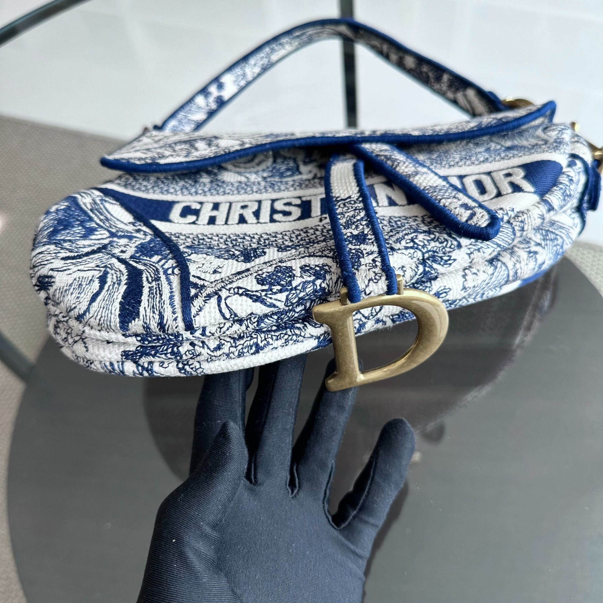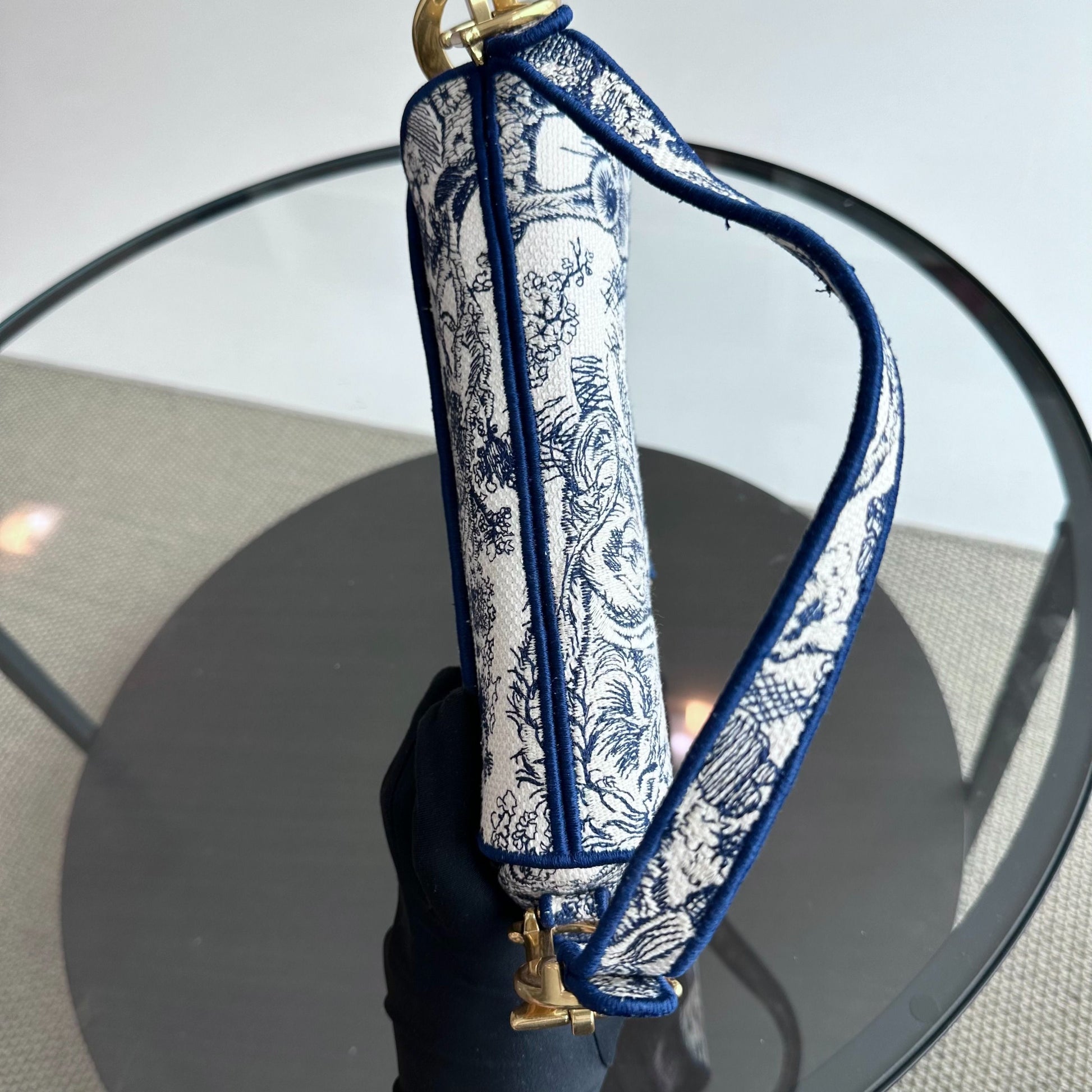 *Full Set, Receipt* Saddle Medium Blue Toile De Jouy Embroidery Canvas AGHW