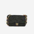 The Chanel Funky Town Flap in Black CC Embossed Denim is a chic and modern take on the classic flap bag. Crafted from premium denim, the bag features an embossed CC logo for a textured, subtle luxury. The Gold Hardware adds a rich contrast to the deep black fabric, giving the bag an elevated, timeless feel. Its versatile design and unique material make it perfect for both day-to-night wear.