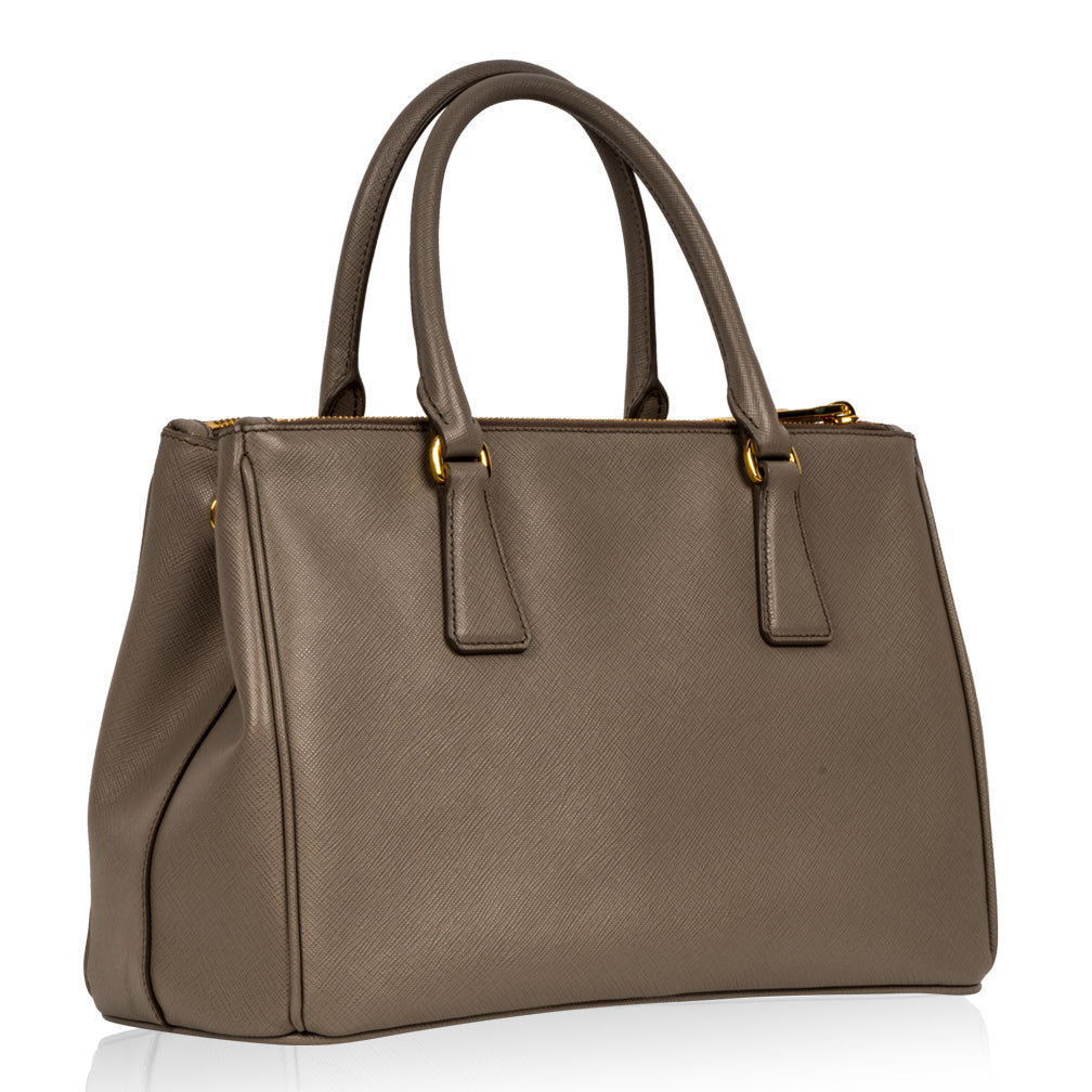 Immaculately crafted from the widely renowned saffiano leather, Prada presents the coveted Small Galleria Tote in Grey leather. The handbag’s Grey leather exterior is magnificently adorned with gold toned hardware, maintaining the perfect balance between sophisticated and contemporary. The bag is further punctuated with Prada’s coveted logo plaque and a hanging clochette. The bag also features an open top design, with two large zip compartments on the front and back of the bag. Its interior is lined with their quintessential dark logo textile. Ideal for work or quite simply lunches and dinners, the Prada Galleria Tote was made to last.