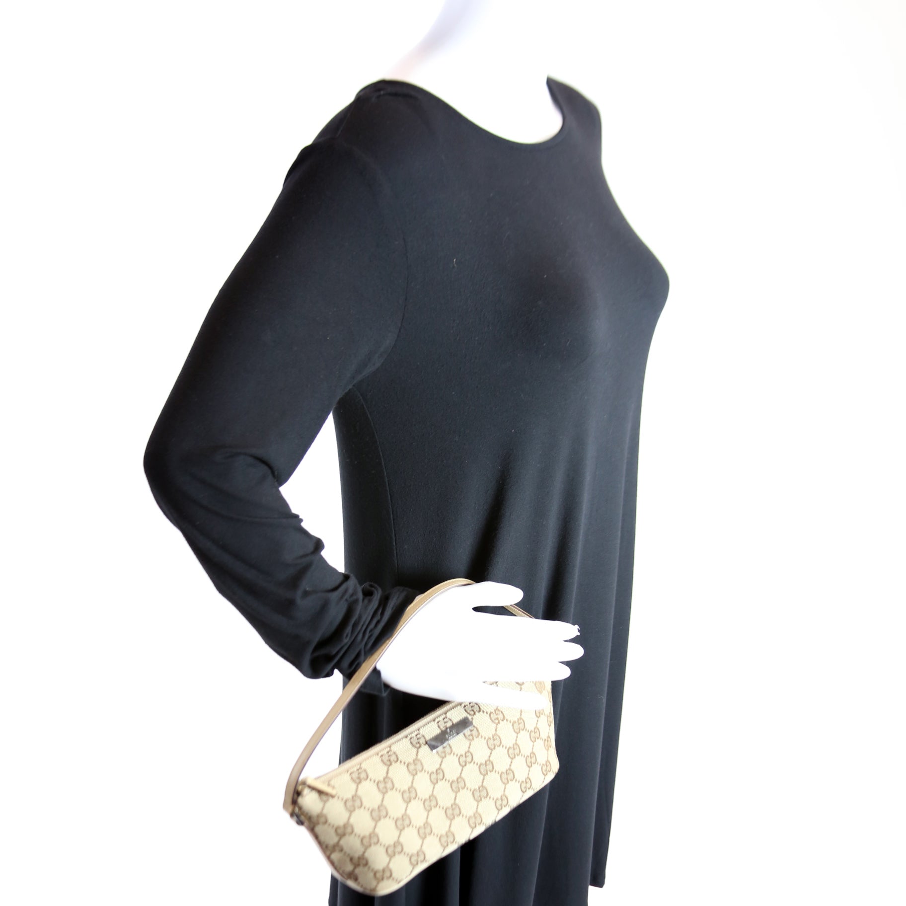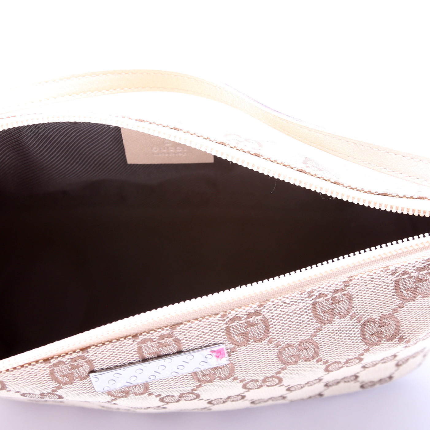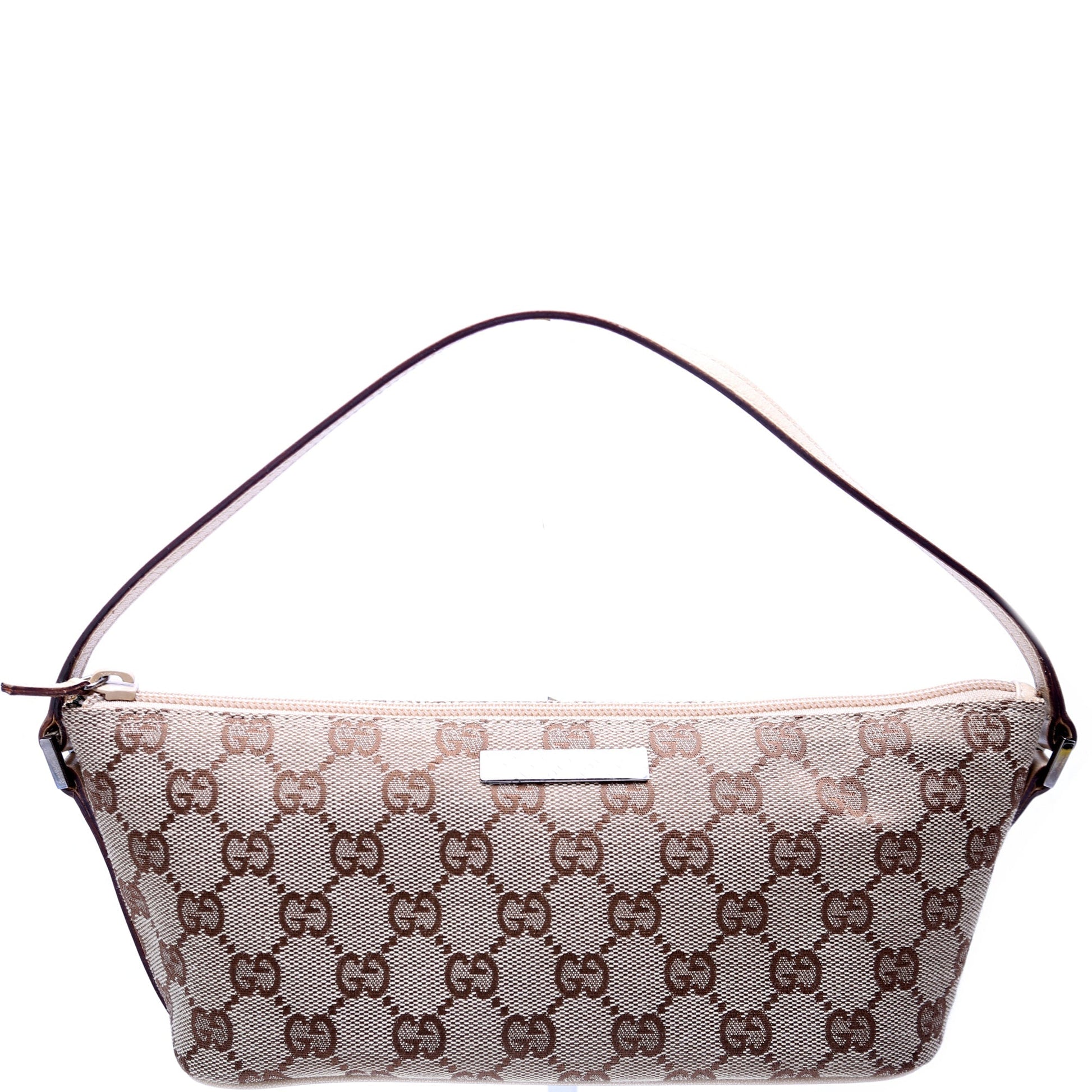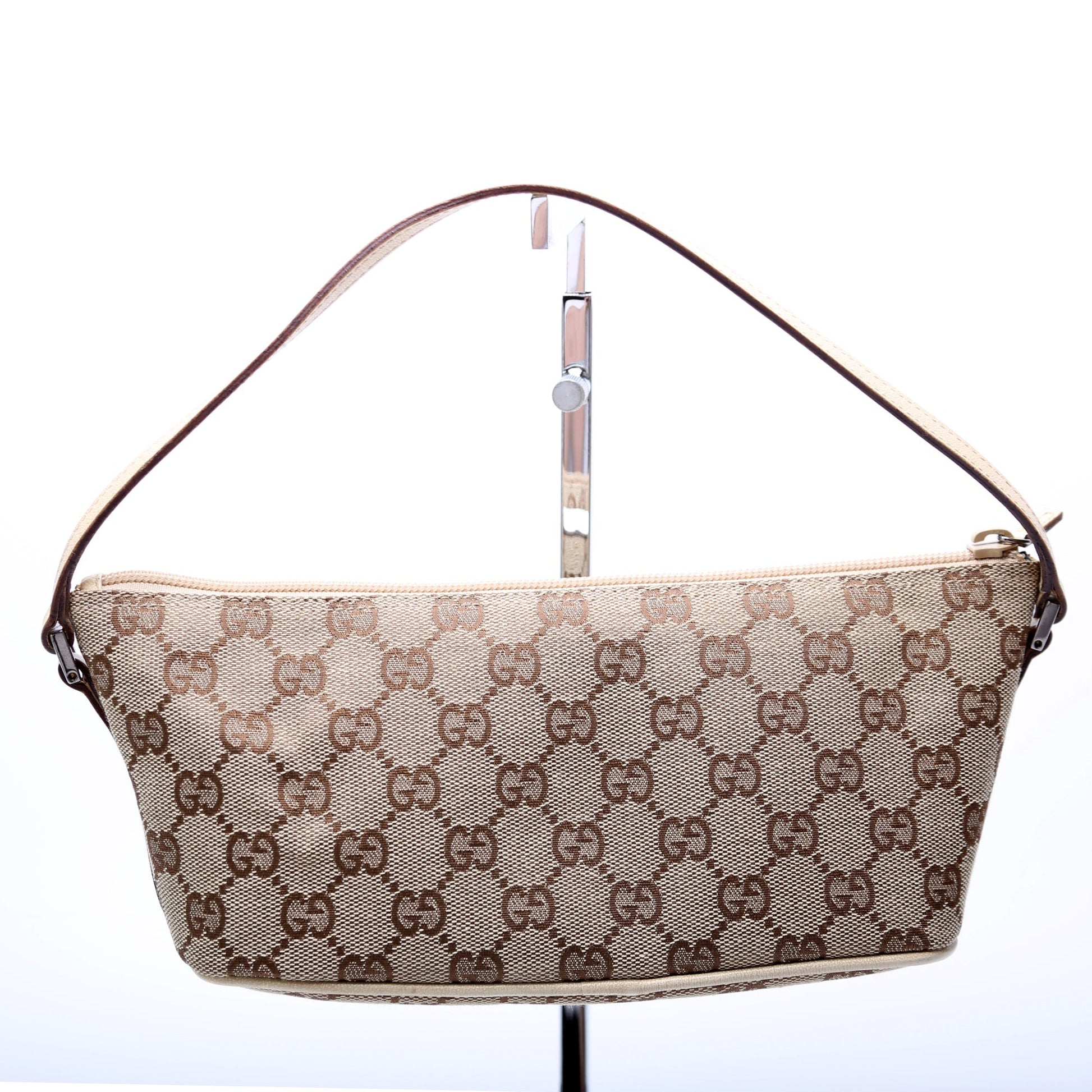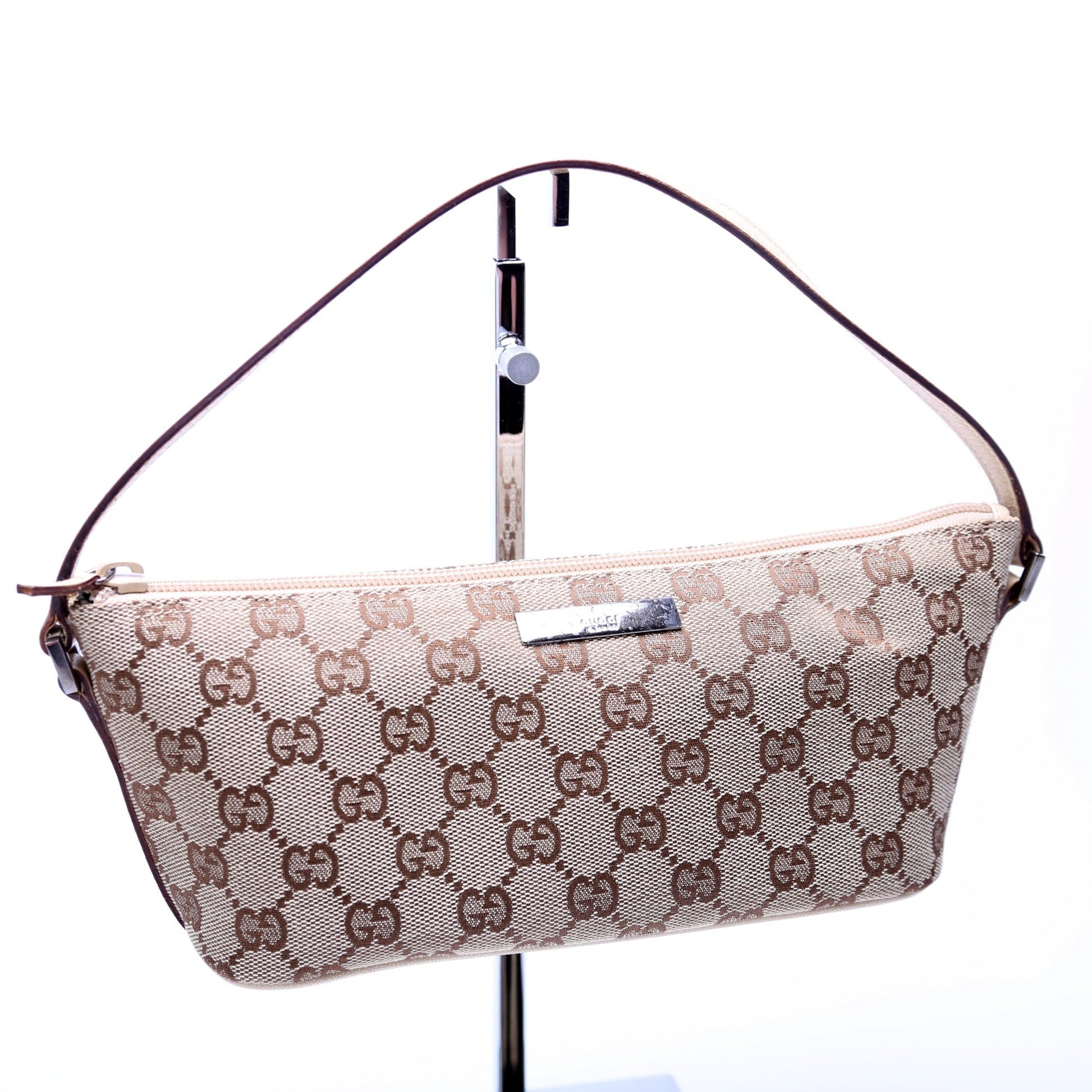 This Gucci Baguette Shoulder is d 100% . The exterior is in the classic Gucci GG canvas.