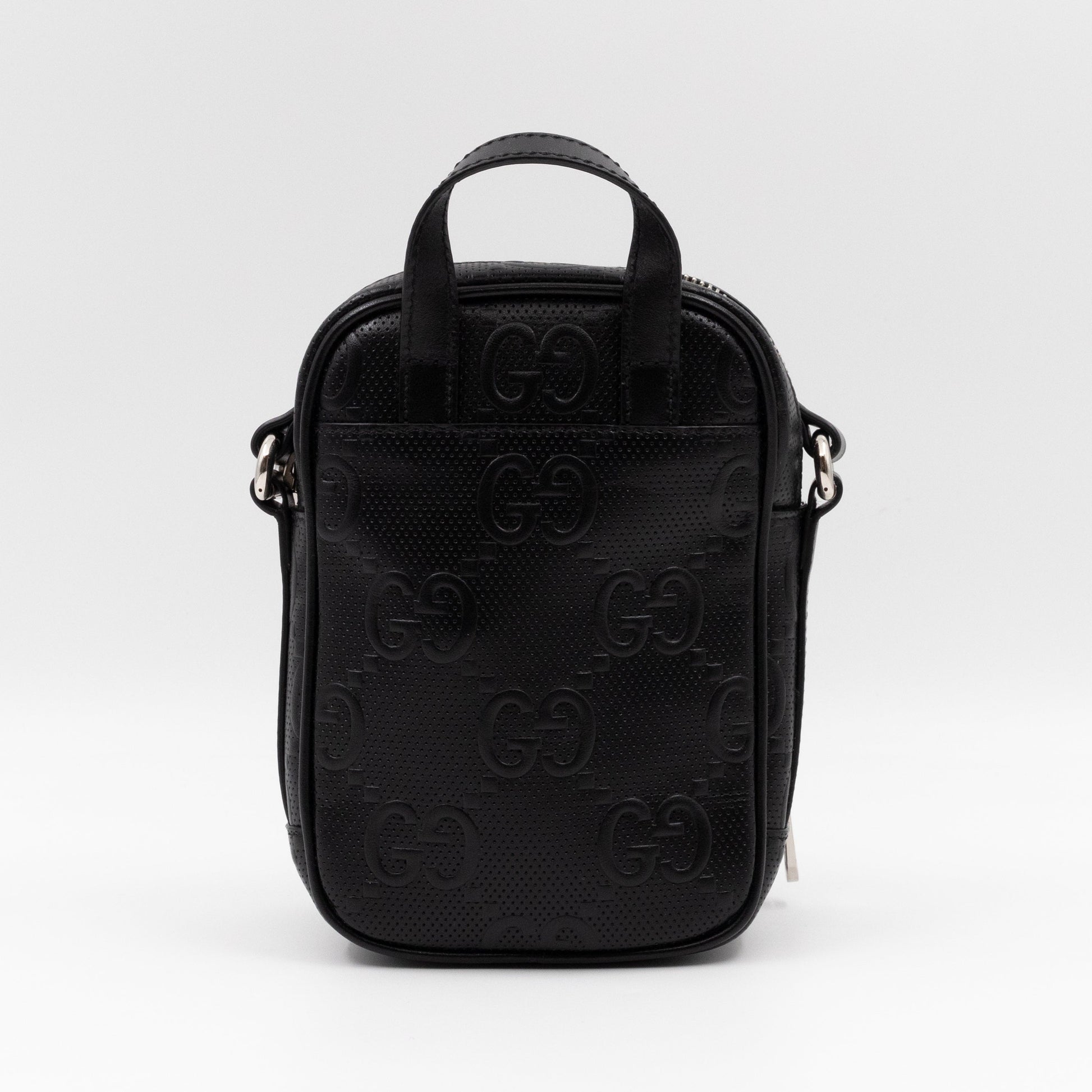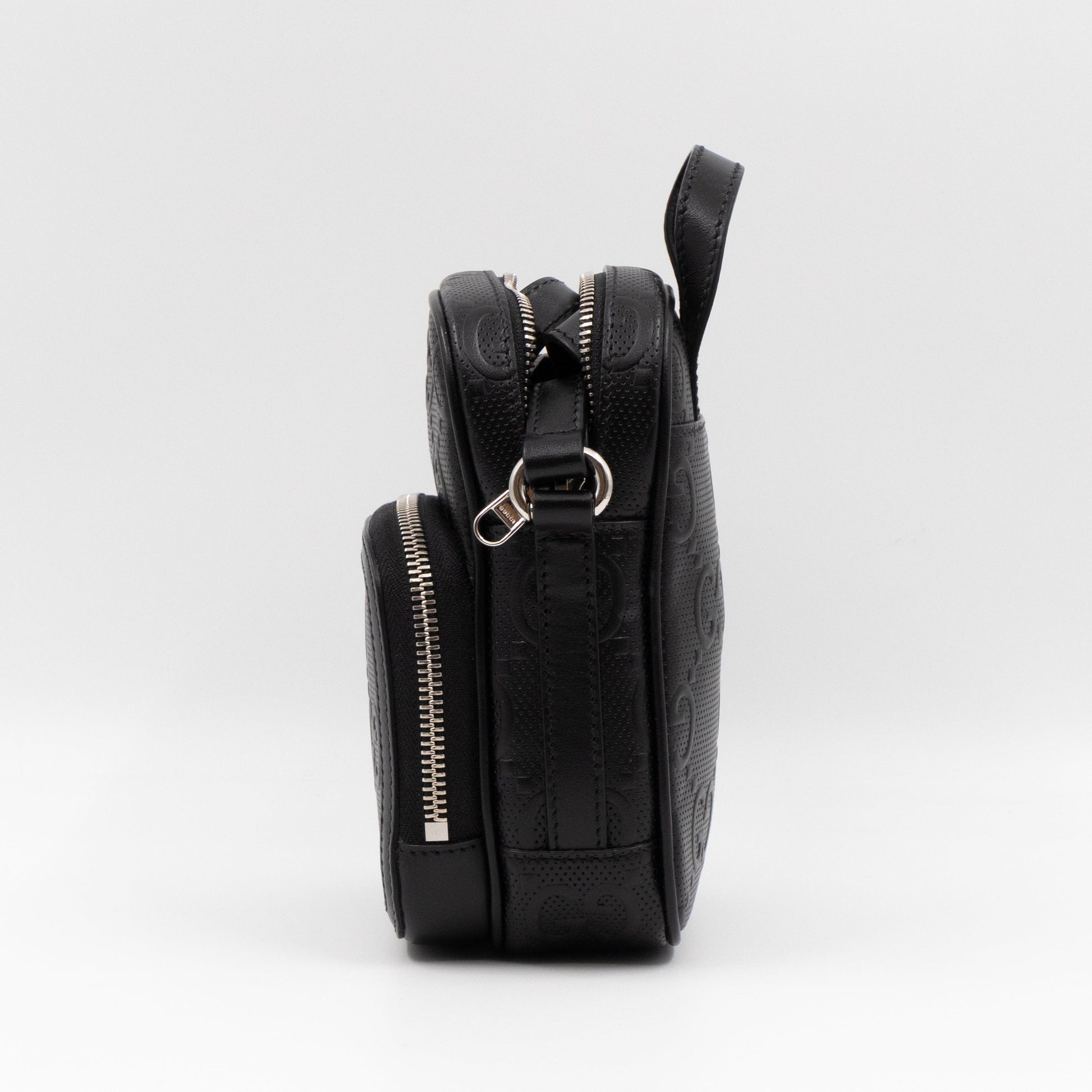 The Gucci Mini Crossbody Bag is introduced in a new interpretation of the GG motif presented within the Ouverture collection. Noted for its softness and slightly shiny finish, the GG leather plays on texture, embossing the House emblem onto a black perforated leather base. Made with GG embossed black leather. Lightweight with a leather crossbody strap for comfortable carrying. It nicely fits your large phone (up to 17 cm length) and other essentials. Retail price €940.