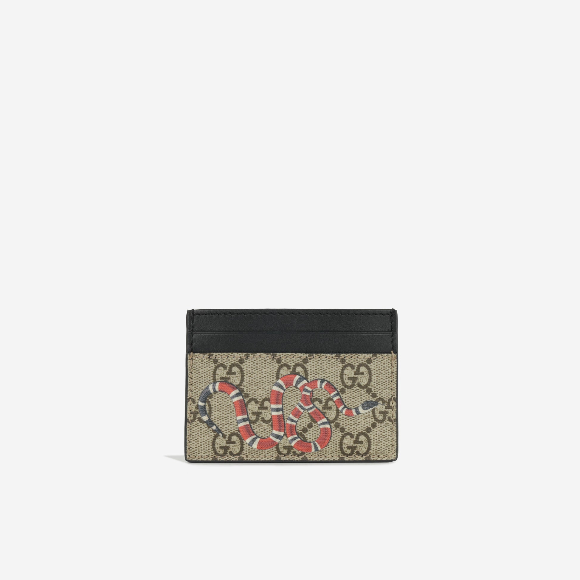 Make a bold statement with the Gucci Kingsnake-print leather card holder a perfect blend of functionality and iconic design. Features Gucci’s signature Kingsnake print, symbolising wisdom and power, set against a sleek leather backdrop for a striking visual impact. Compact yet practical, it includes multiple card slots to keep your essentials organised. Slim and lightweight, it fits easily into pockets or small bags, ensuring convenience without compromising style.
