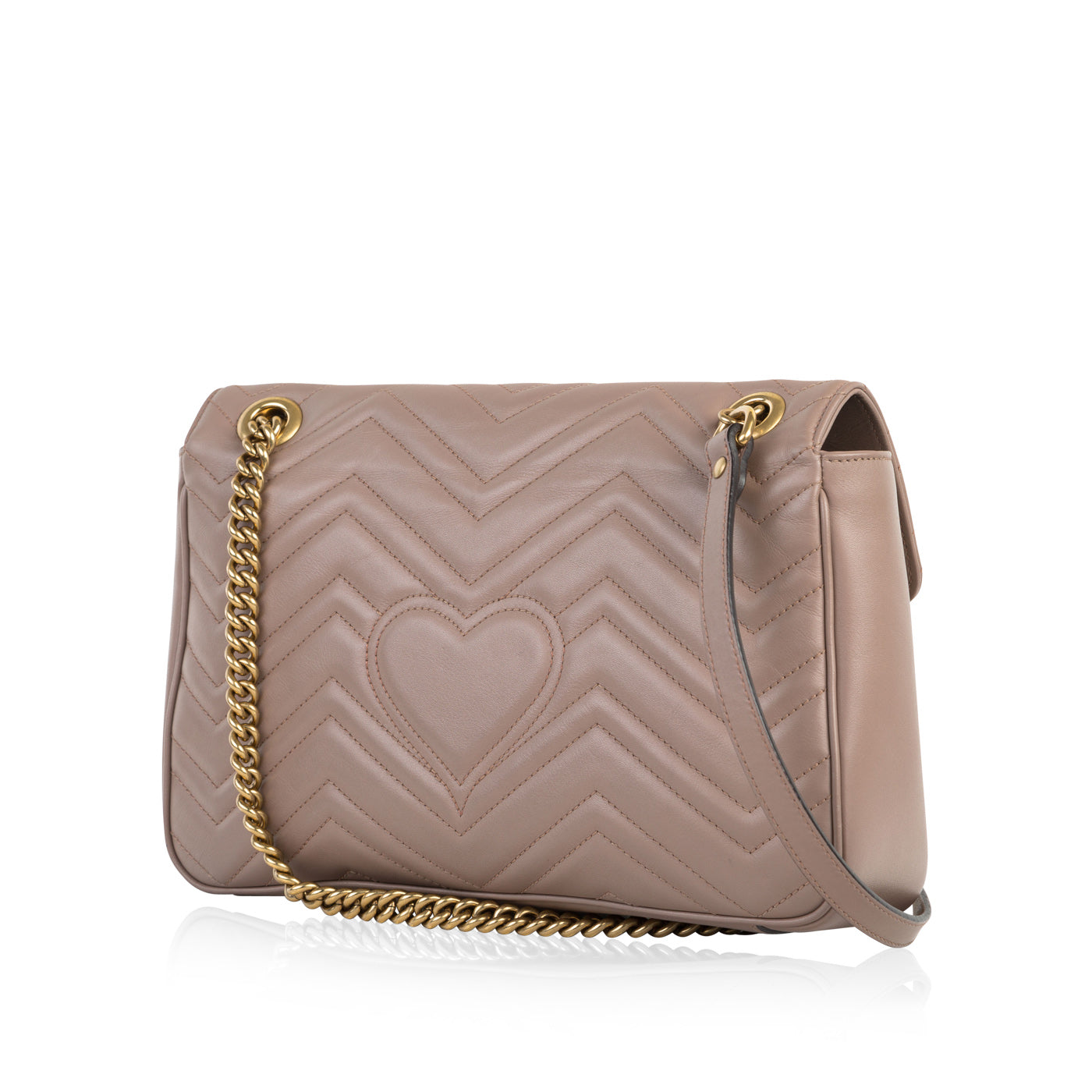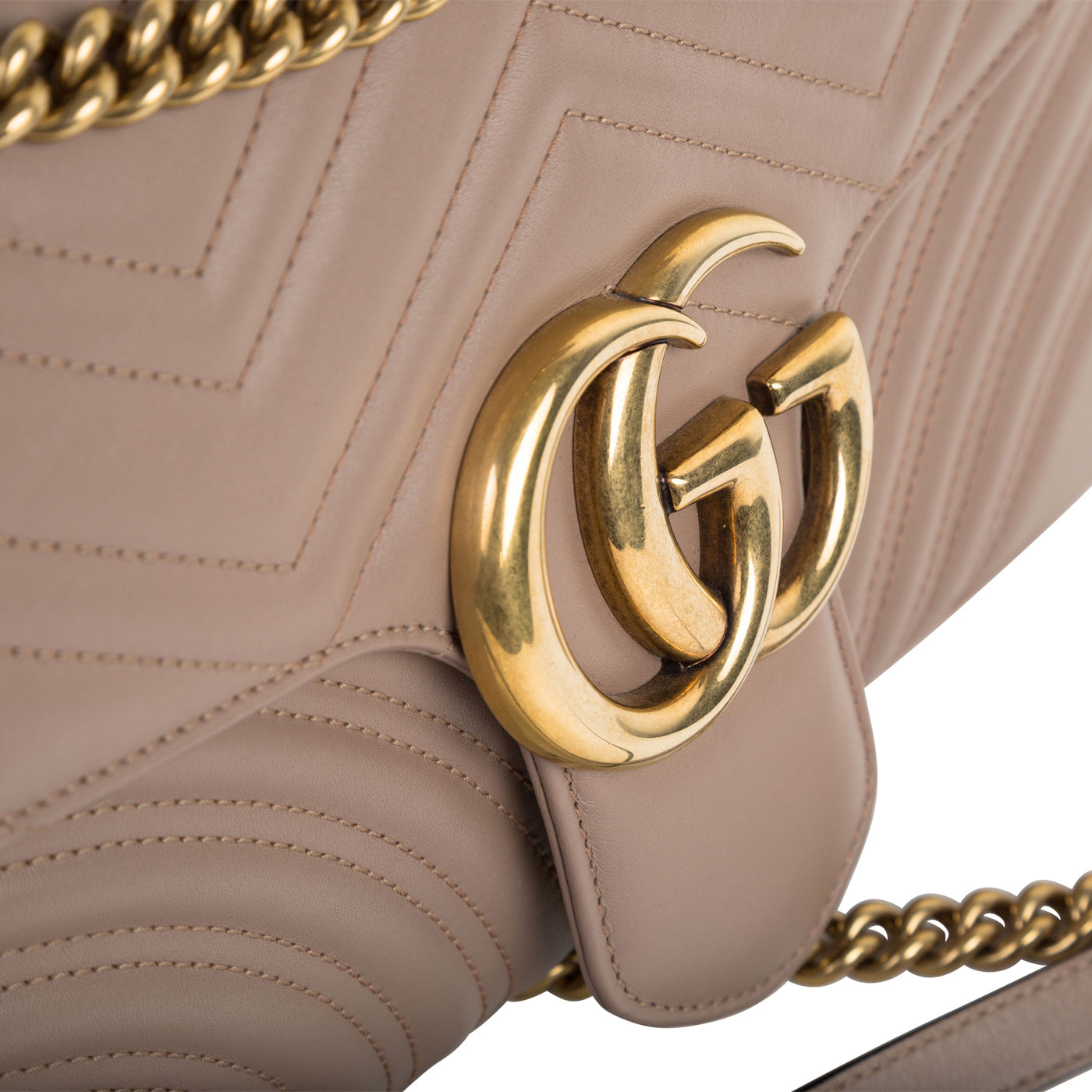 The softly structured and beautifully crafter medium marmont bag by Gucci is a firm favourite at Bagista for both it's iconic, striking details and it's everyday usability factor! The buttery soft matelassé leather has been quilted expertly in Gucci's signature chevron detailing and is finished in a perfectly neutral nude tone, making it the perfect addition to you AW18 wardrobe.