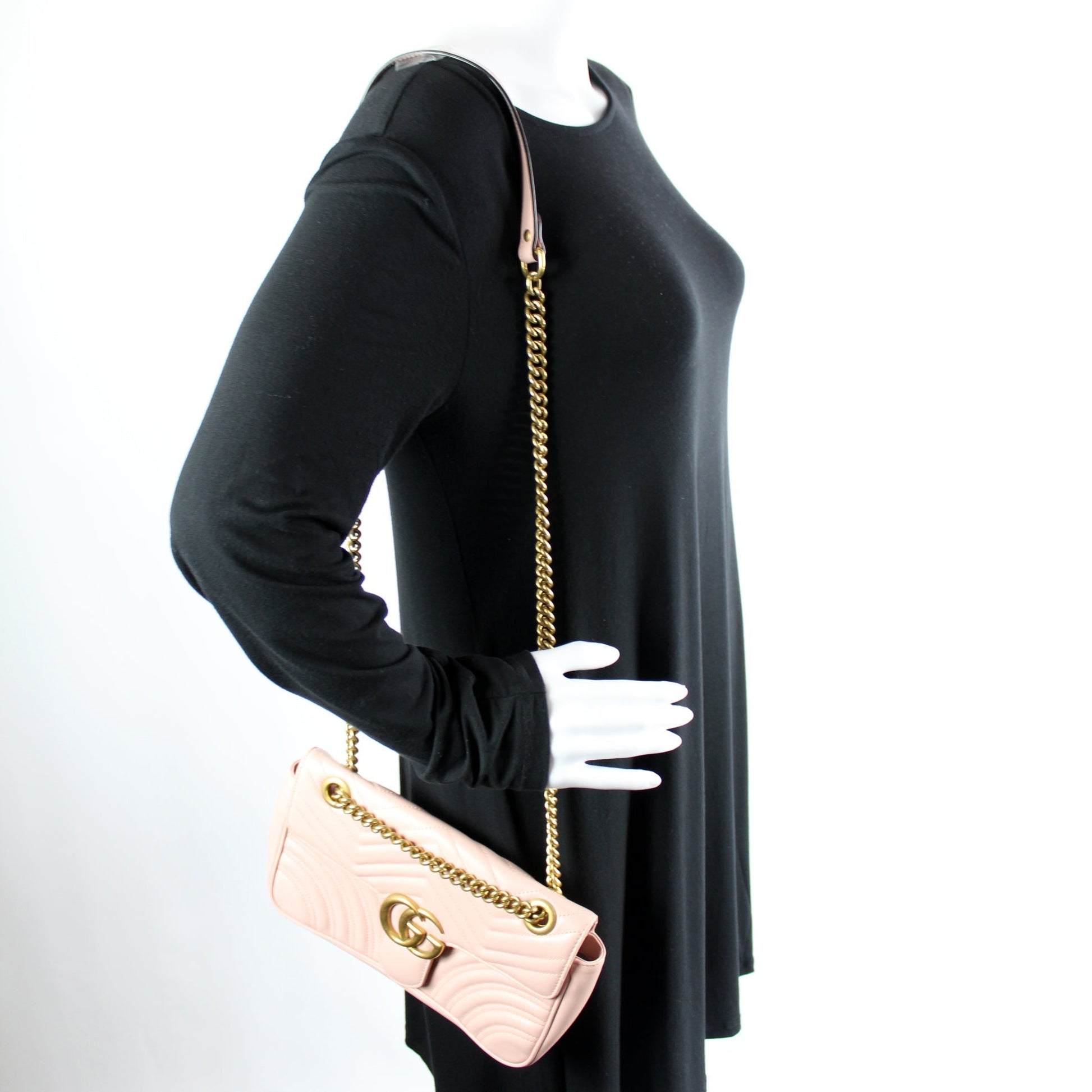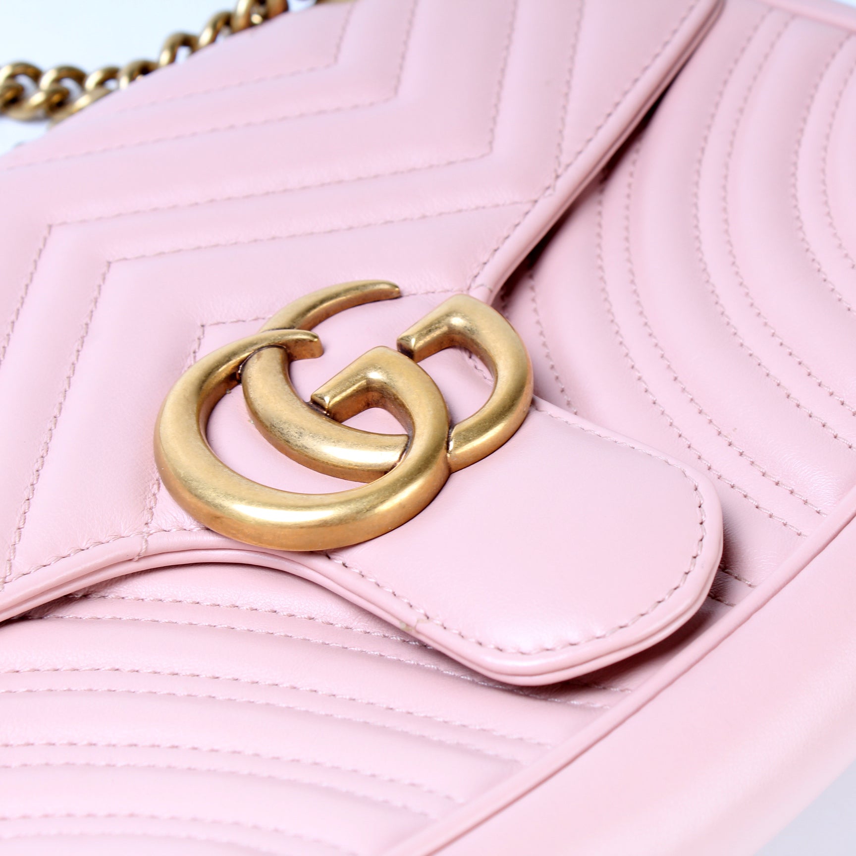 This Gucci GG Marmont Small Shoulder Flapis eye catching bag.