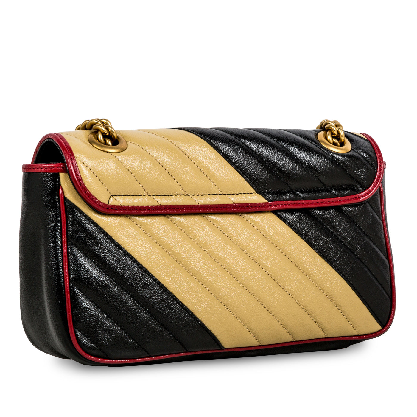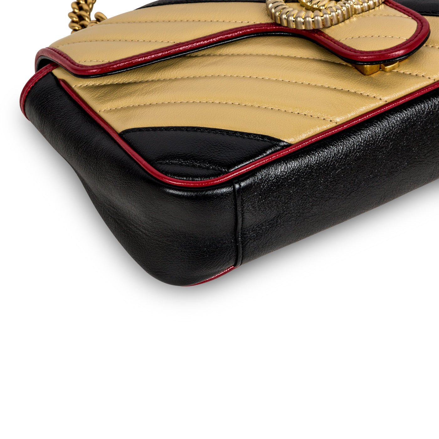 One of the most acclaimed and beloved handbags of the last five years, Gucci presents their Marmont bag with a twist. A classic design from the brand, the Marmont has been reimagined with differing leathers, colours and shapes – each style more beloved than the next. From brunch, to lunch, to dinner, to cocktails and wherever your night takes you after that, this effortlessly cool Gucci GG Marmont is the ideal companion to have by your side. Crafted in beige and black leather with red trimming and gold-tone hardware, this GG Marmont is definitely not your average. A timeless accessory that will compliment anything you have in your wardrobe, this stunning bag is a necessary addition to any luxury handbag collection.